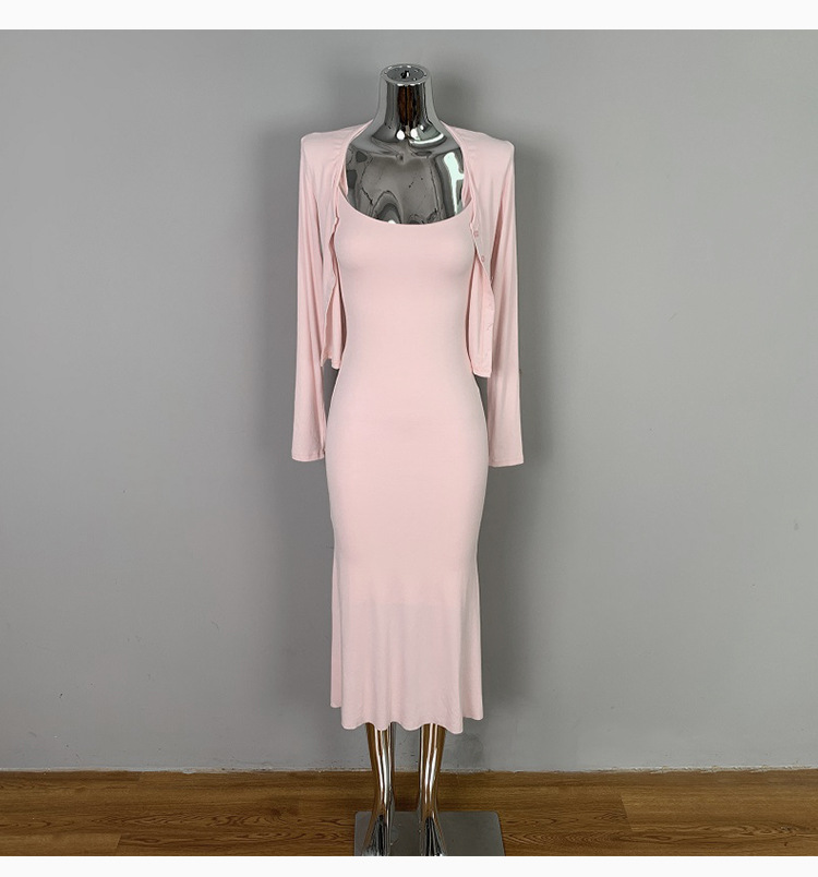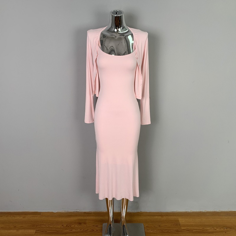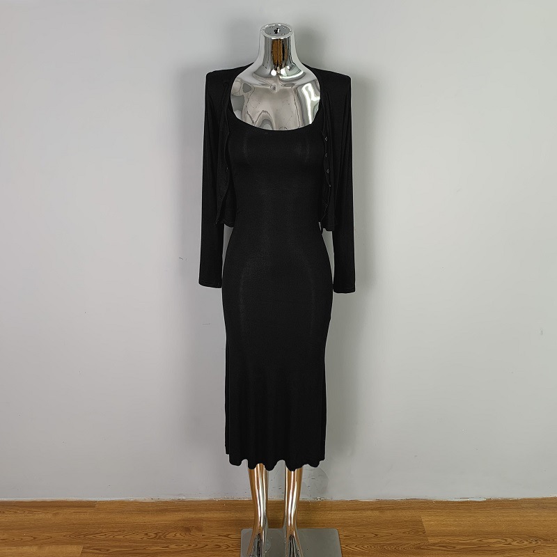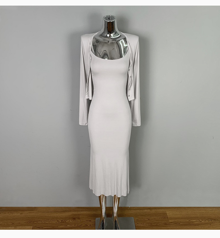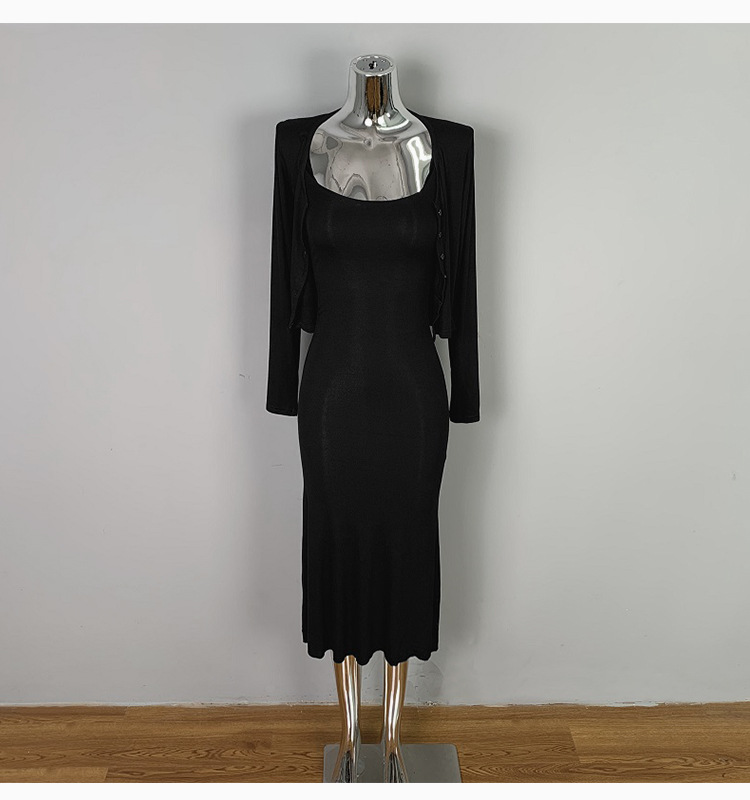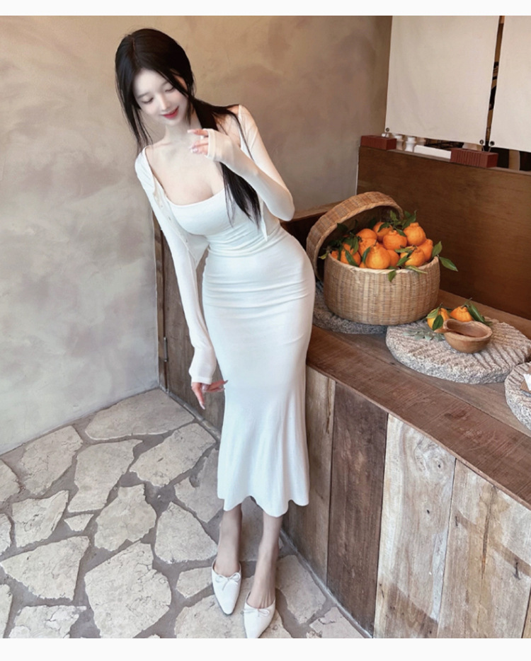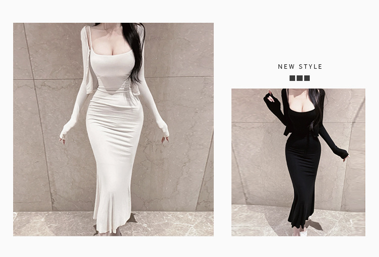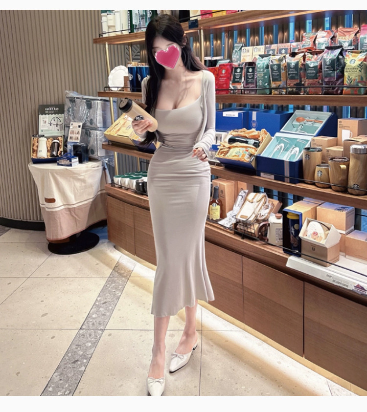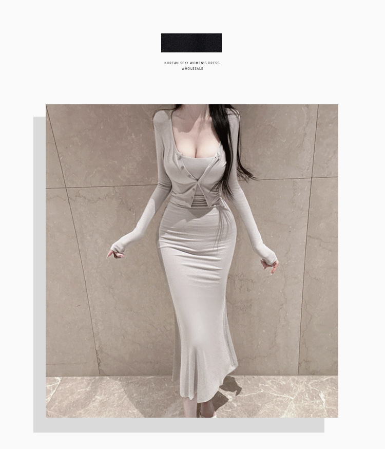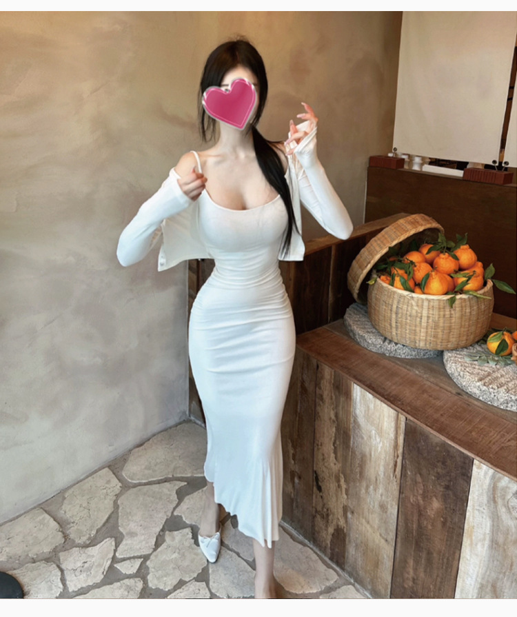 한국 동대문 패션 세트 섹시한 여성 슬링 원피스 긴 소매 작은 카디건 투피스 세트스토어 가기