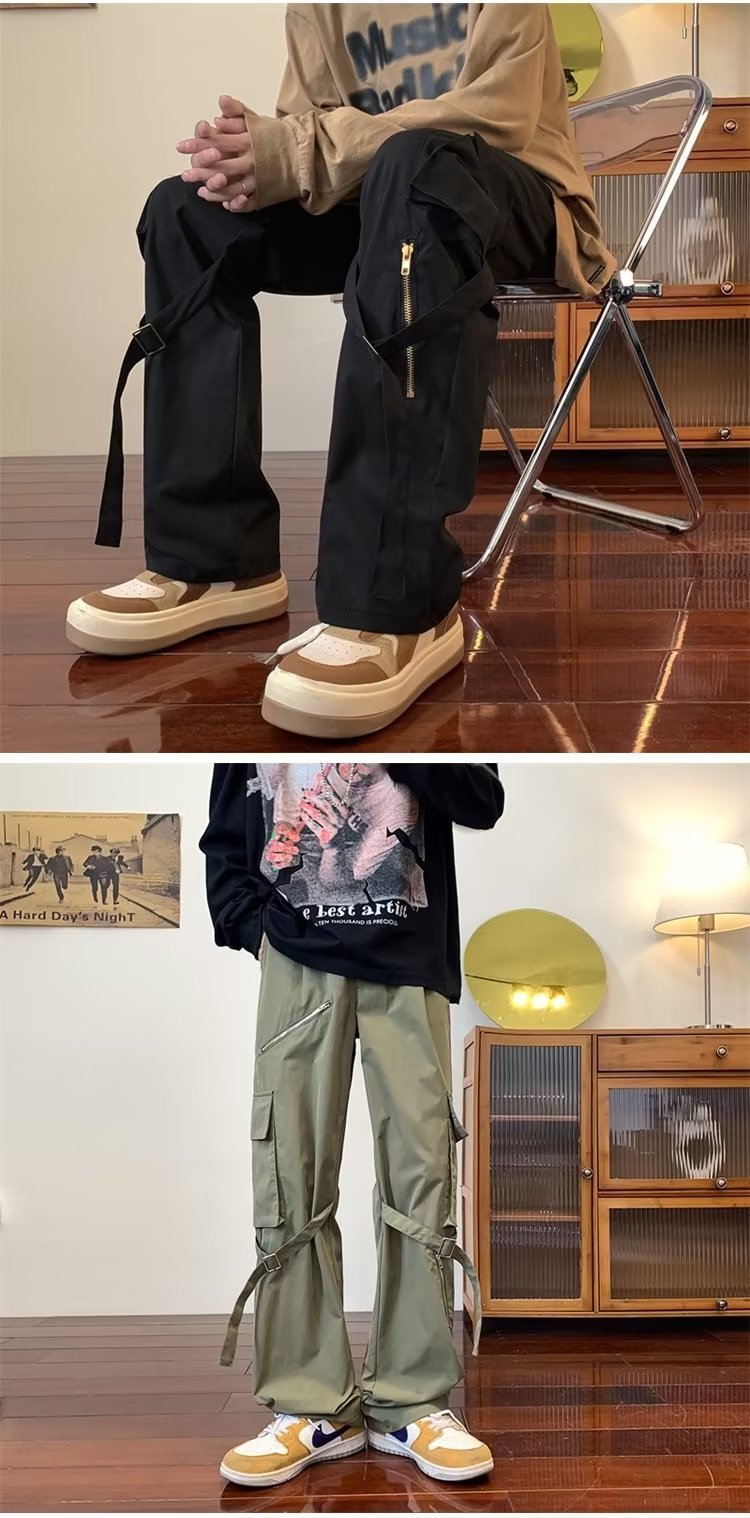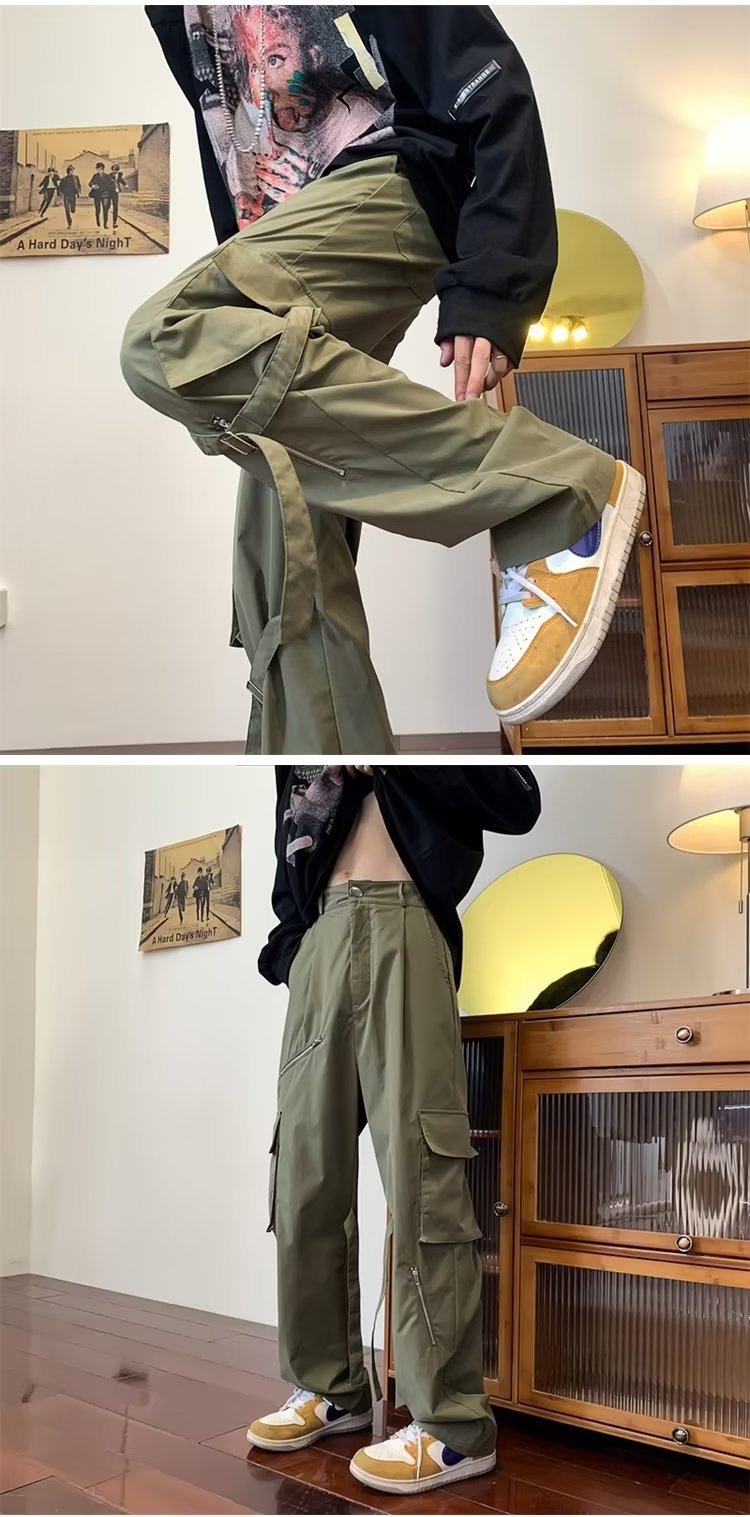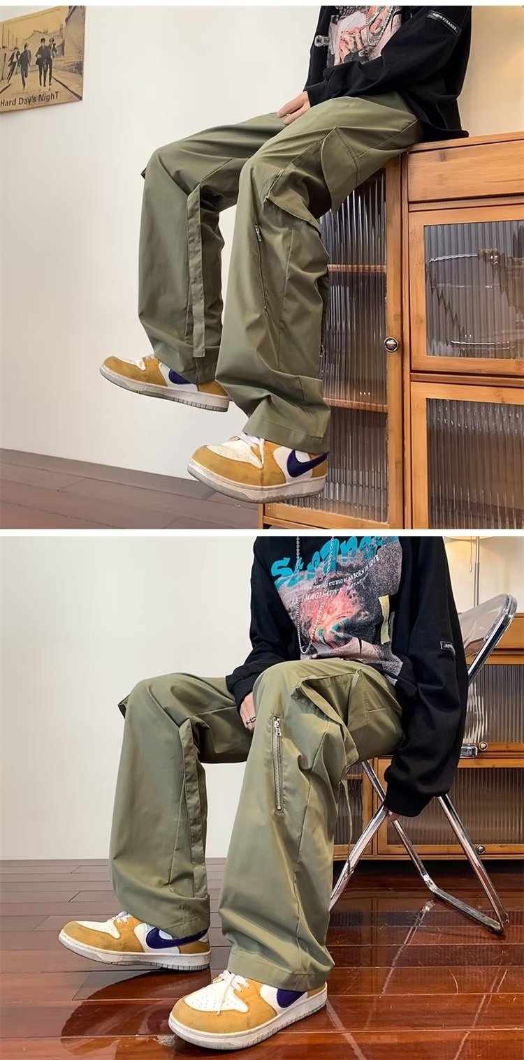 아메리칸 스타일 하이 스트리트 지퍼 디자인 센스 기능성 작업복 바지 남성 가을 패션 브랜드 소박한 바지 스트레이트 하이 스트리트 캐주얼 바지스토어 가기