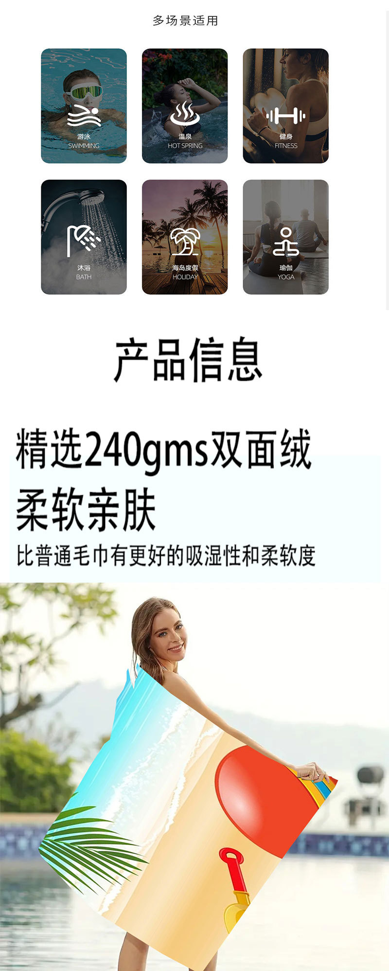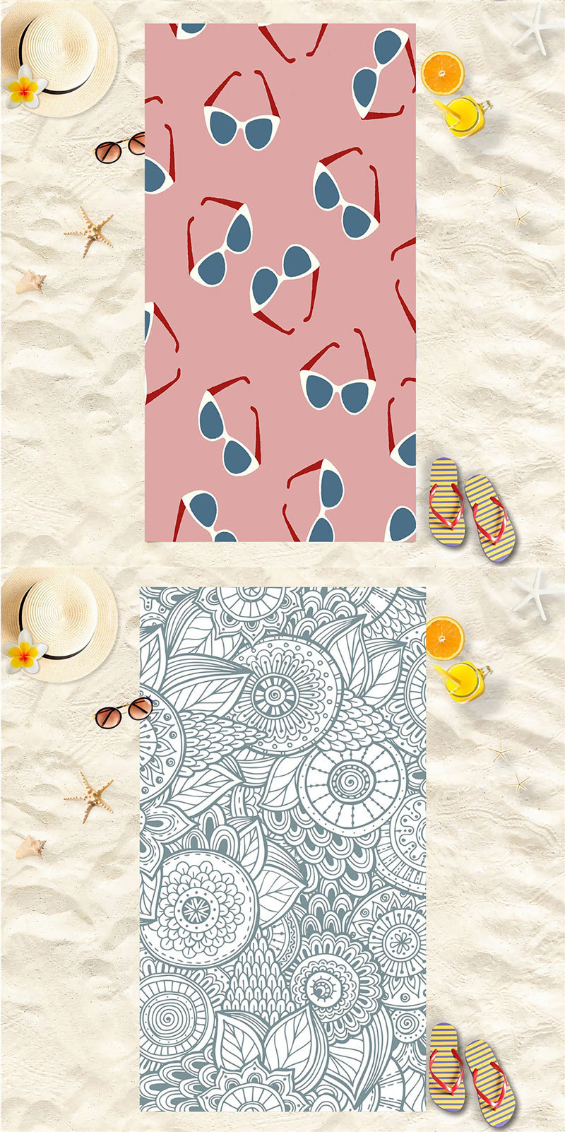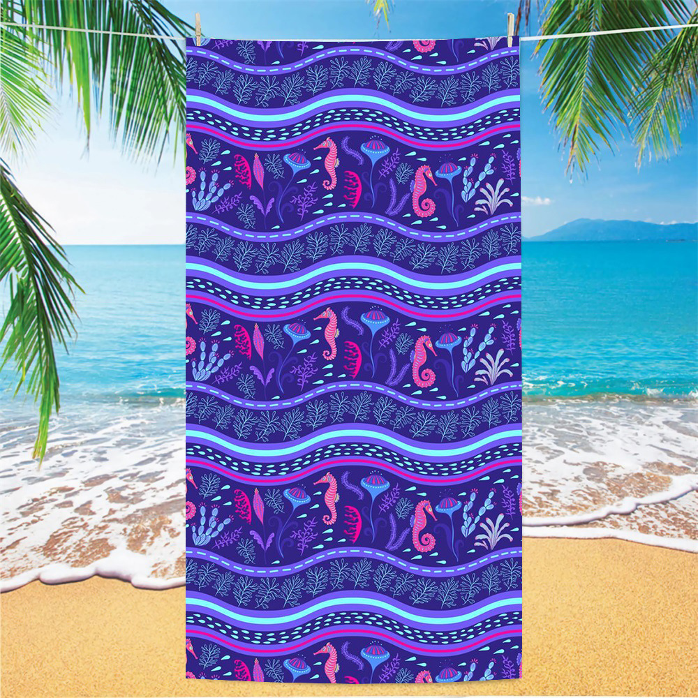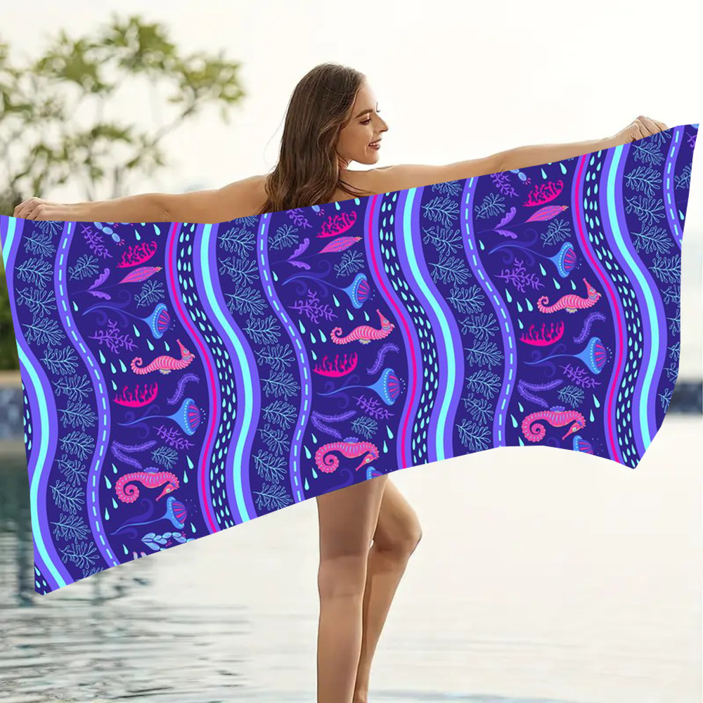 마이크로 파이버 양면 벨벳 흡수제 빠른 건조 목욕 타월 비치 수영 단면 인쇄 비치 타월 요가 스포츠 타월