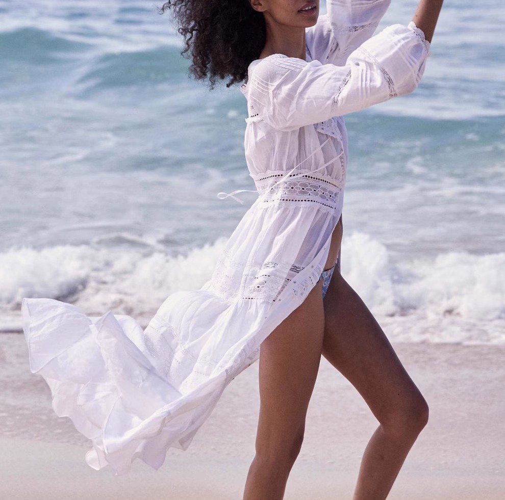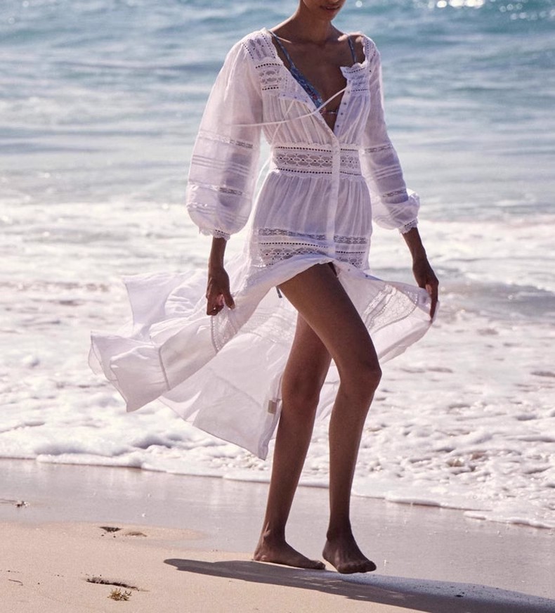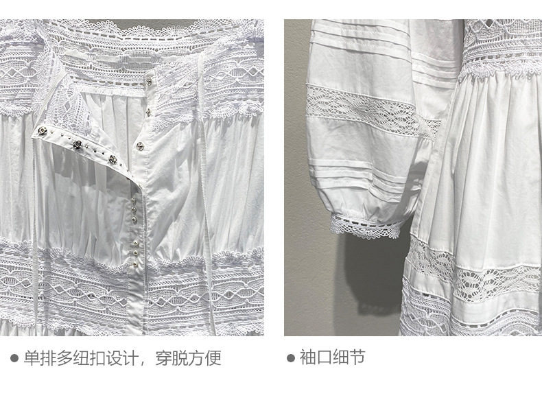 Xiaozhong 여름 새로운 할로우 크로 셰 뜨개질 캐주얼 휴일 전면 가슴 긴 소매 원피스 여성과 긴 원피스스토어 가기