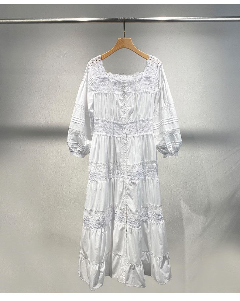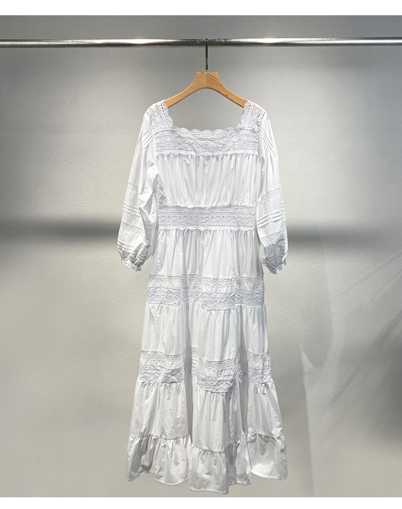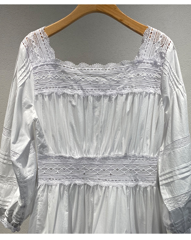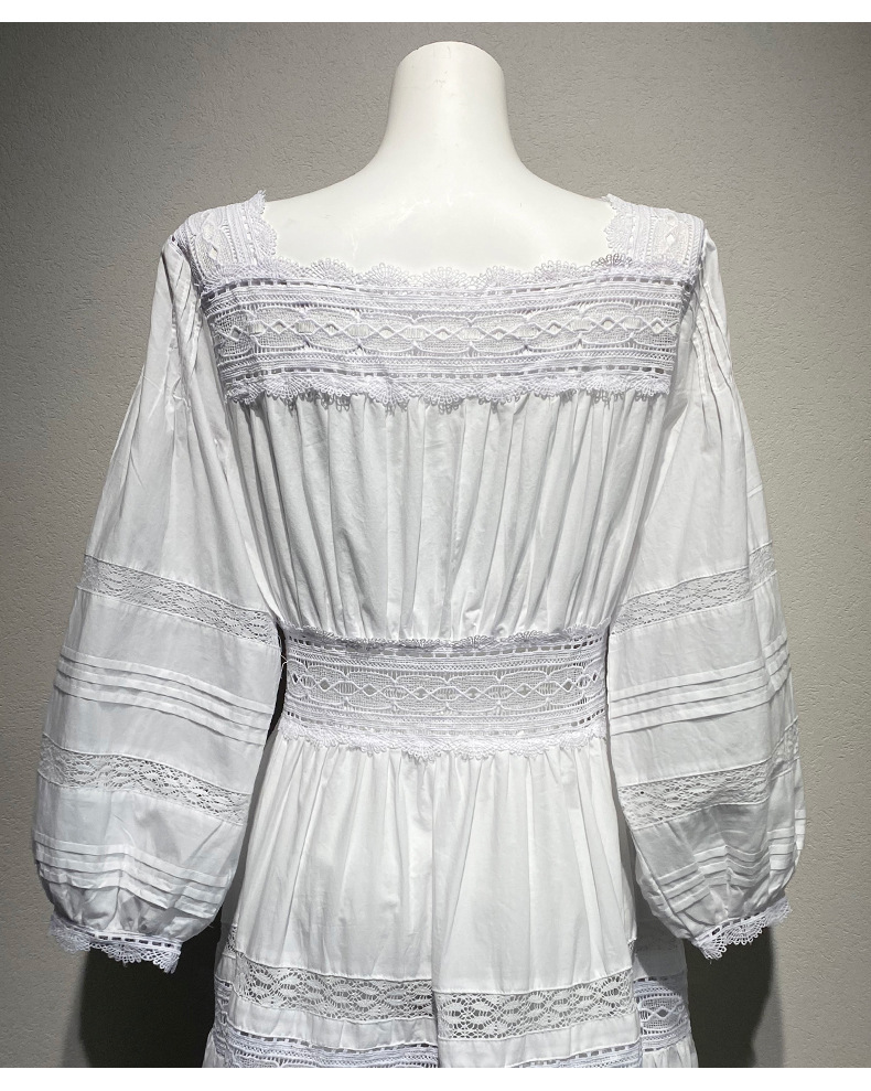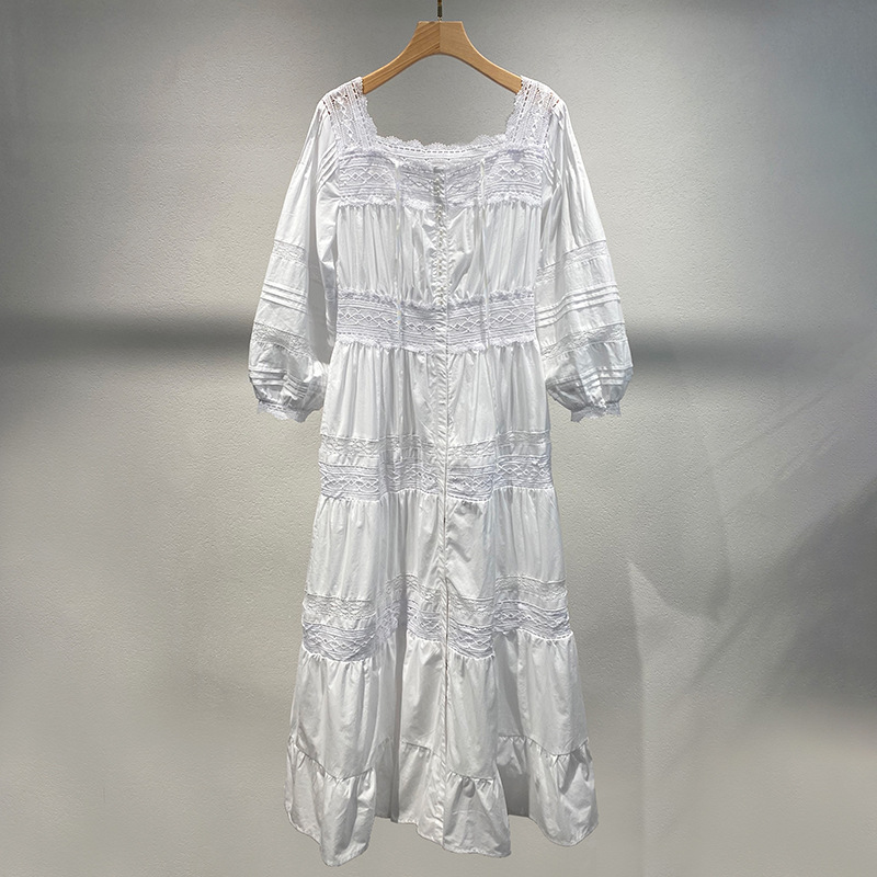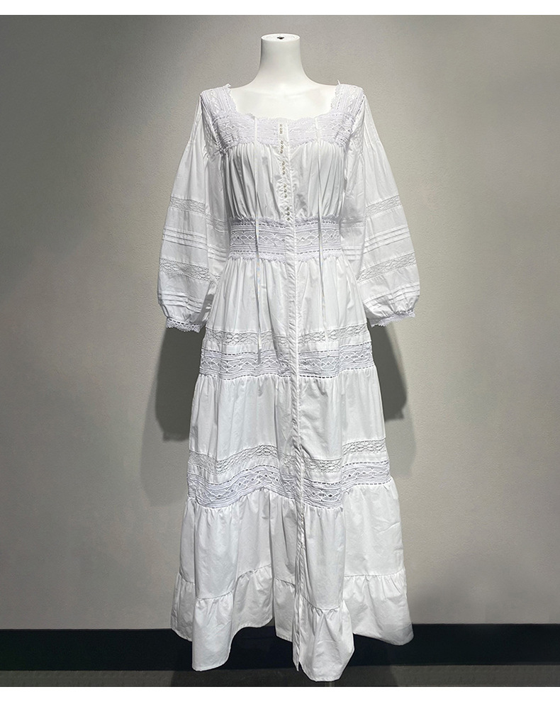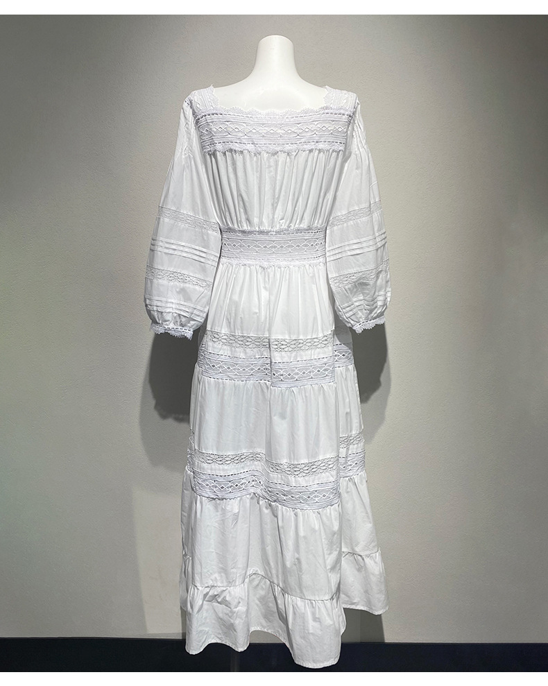 Xiaozhong 여름 새로운 할로우 크로 셰 뜨개질 캐주얼 휴일 전면 가슴 긴 소매 원피스 여성과 긴 원피스