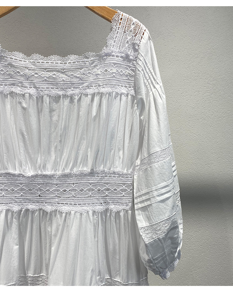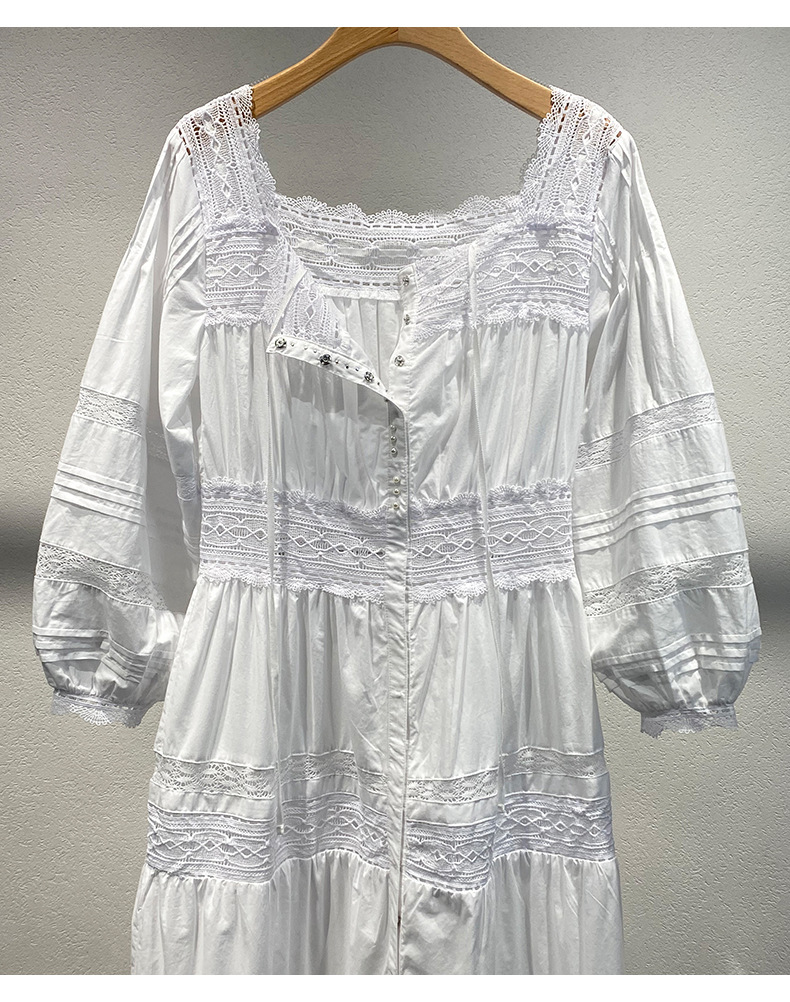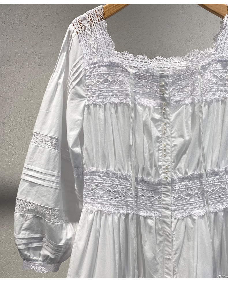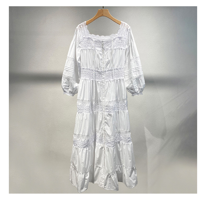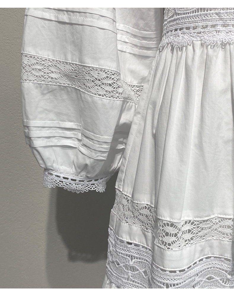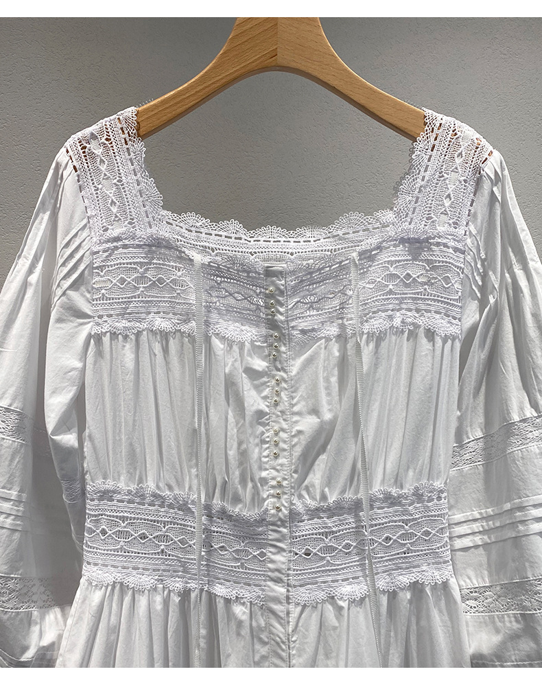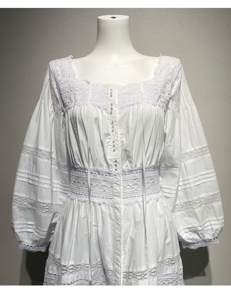 Xiaozhong 여름 새로운 할로우 크로 셰 뜨개질 캐주얼 휴일 전면 가슴 긴 소매 원피스 여성과 긴 원피스