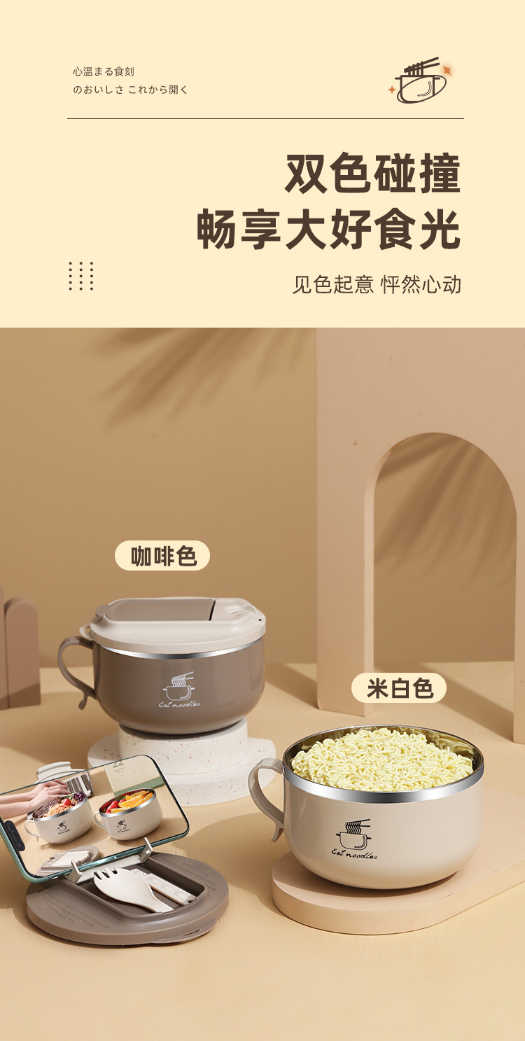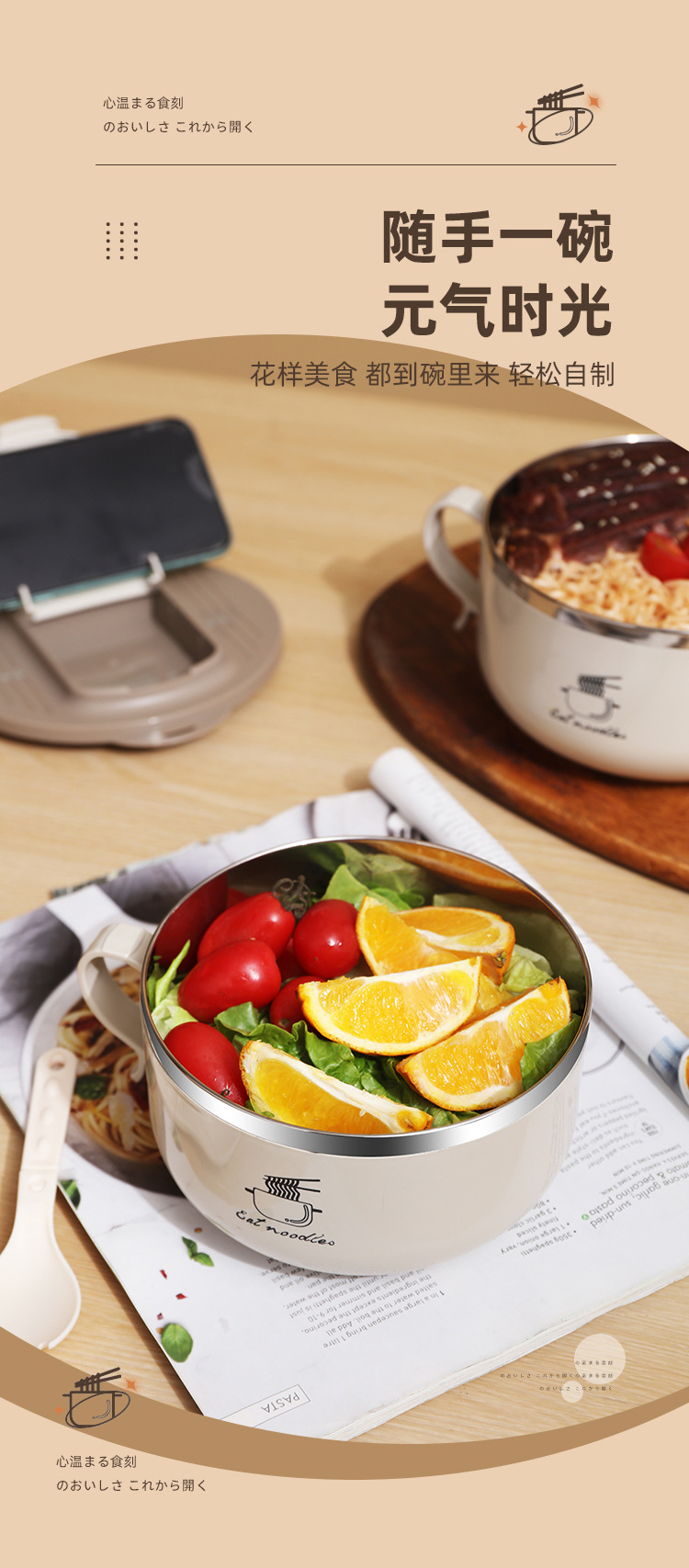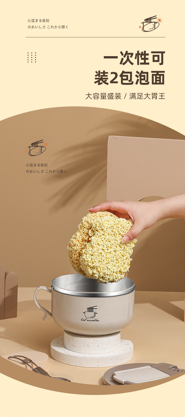 뚜껑이있는 304 스테인레스 스틸 인스턴트 국수 그릇은 집에서 귀엽고 신선한 스타일 학생 기숙사 선물 도매를 위해 배수 할 수 있습니다.스토어 가기