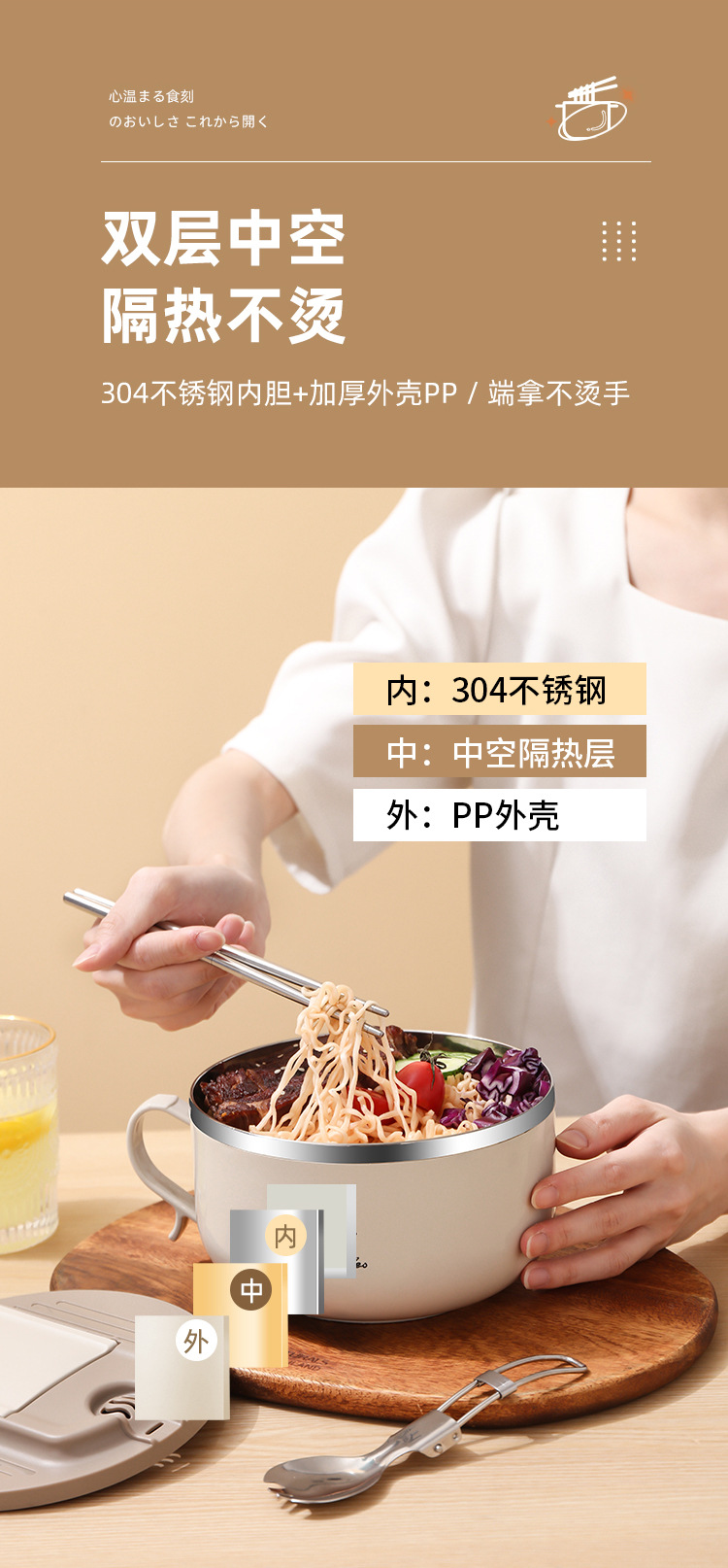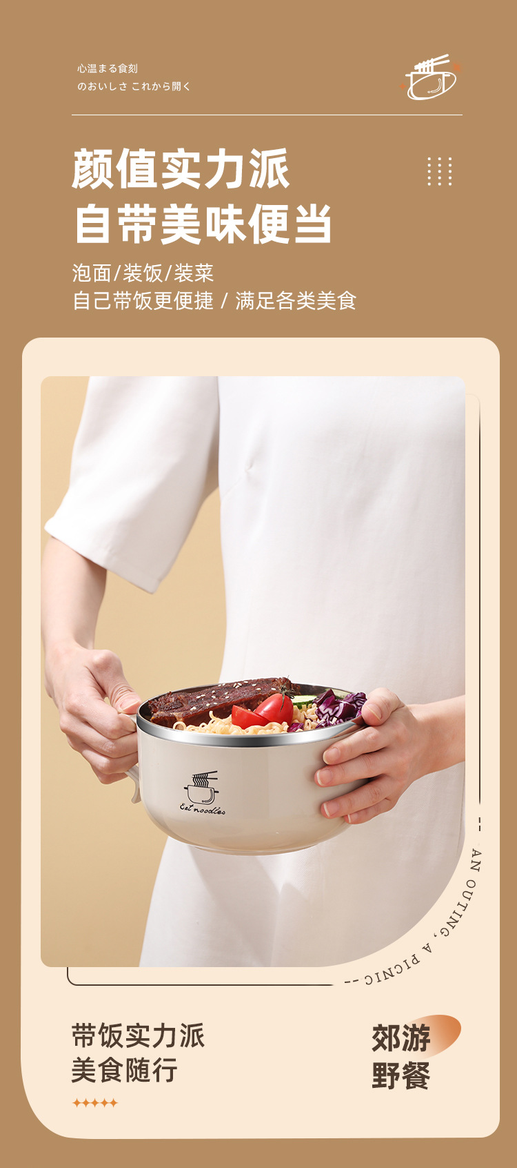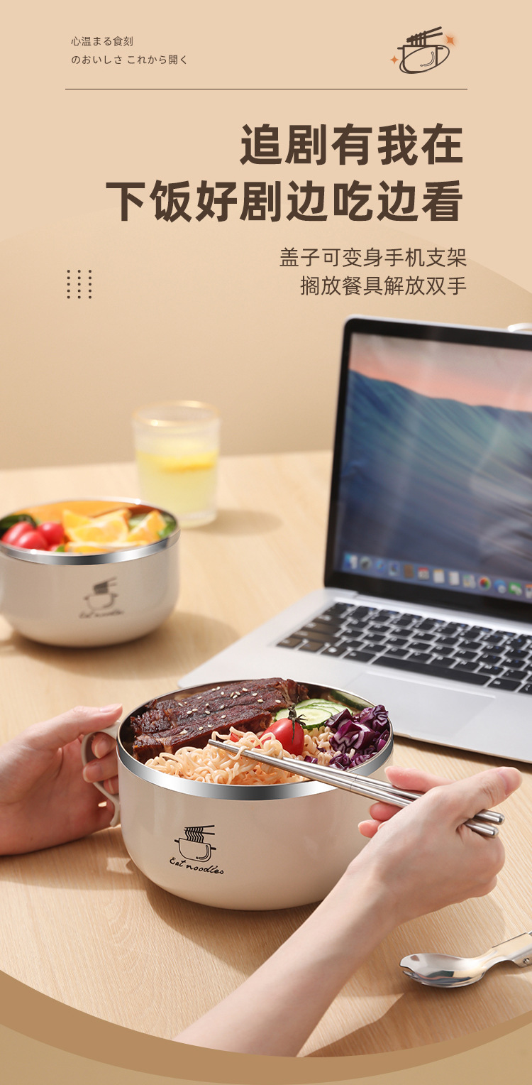 뚜껑이있는 304 스테인레스 스틸 인스턴트 국수 그릇은 집에서 귀엽고 신선한 스타일 학생 기숙사 선물 도매를 위해 배수 할 수 있습니다.스토어 가기