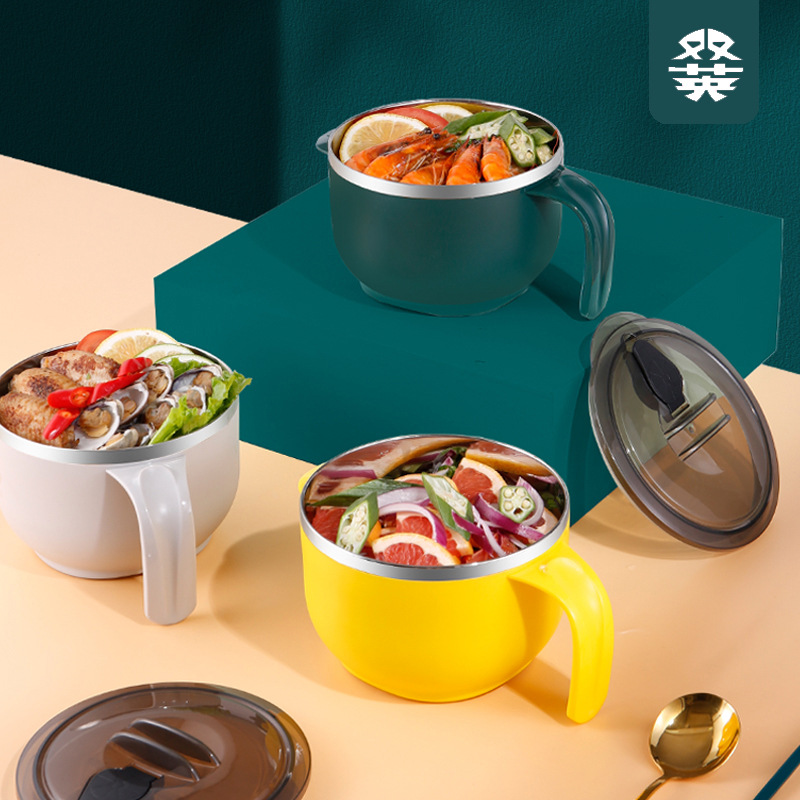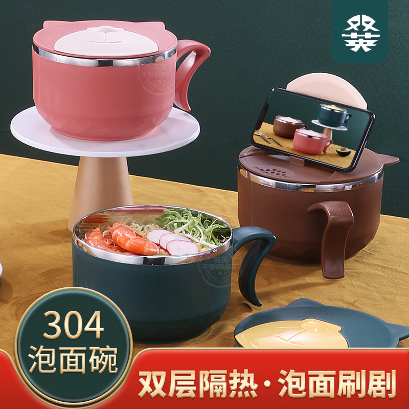 뚜껑이있는 304 스테인레스 스틸 인스턴트 국수 그릇은 집에서 귀엽고 신선한 스타일 학생 기숙사 선물 도매를 위해 배수 할 수 있습니다.