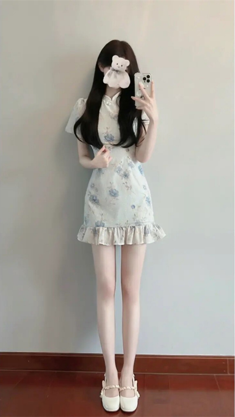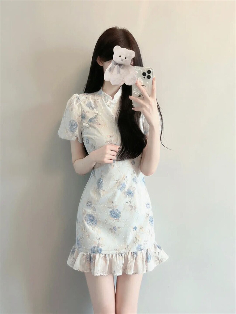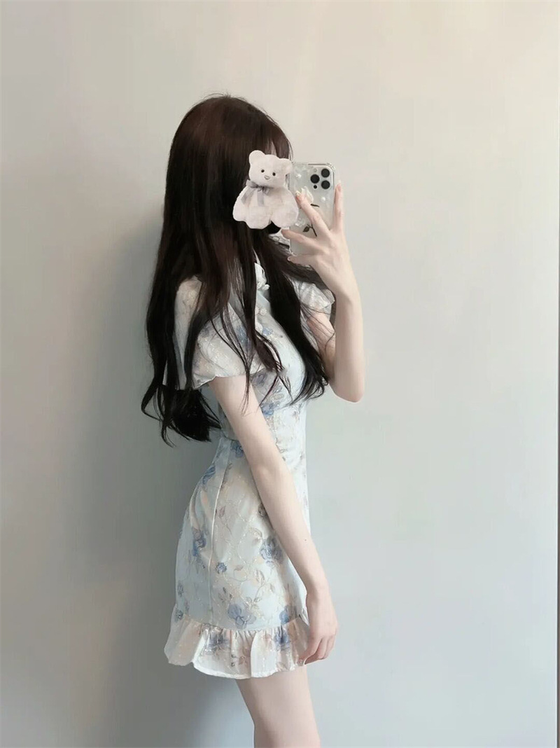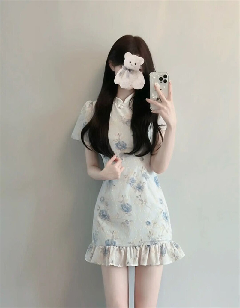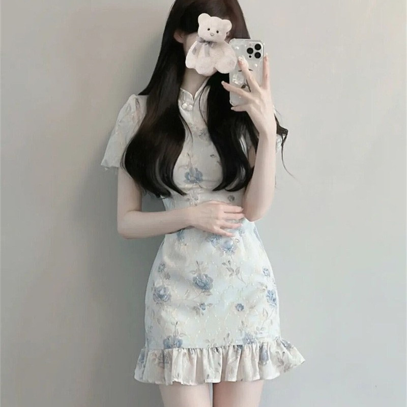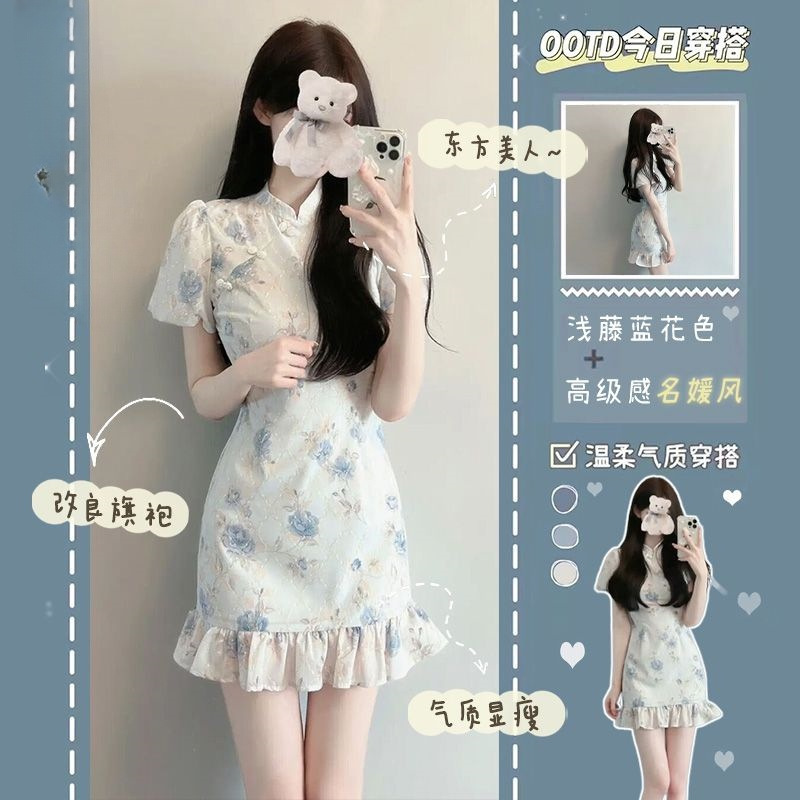 디자인 센스 틈새 개선 청삼 국가 스타일 꽃 원피스 여름 우아한 웨이스트 새로운 중국 스타일 부드러운 원피스스토어 가기