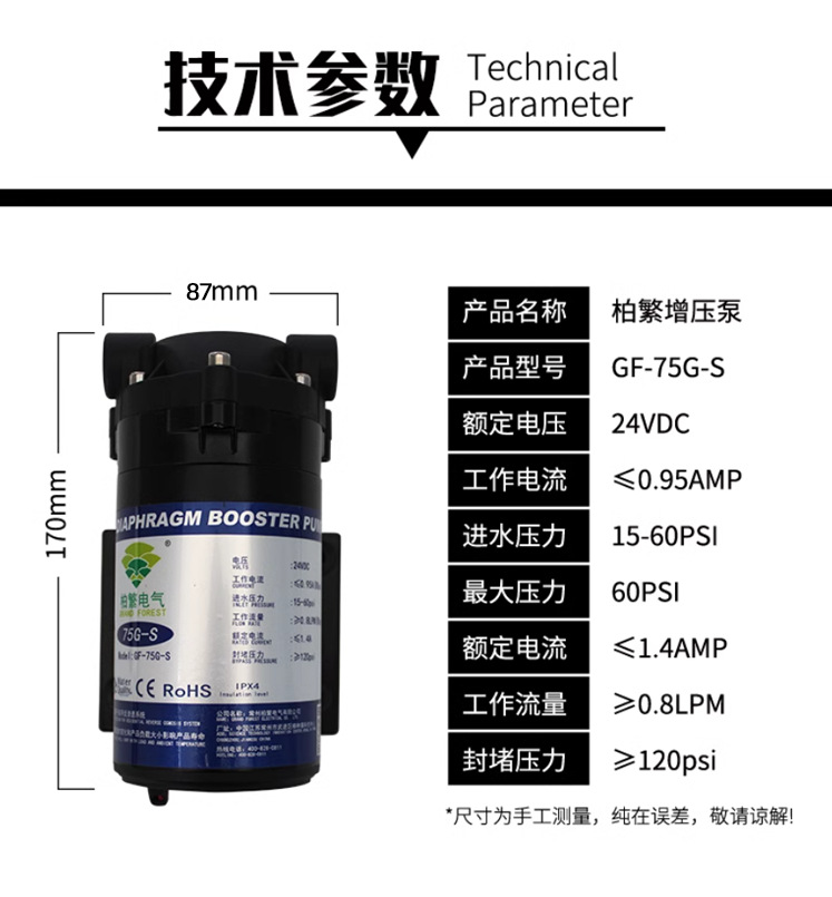 보판 부스터 펌프 75G 자체 프라이밍 펌프 50G 정수기 400G 대형 흐름 식품 등급 가정용 모터 흡입 펌프