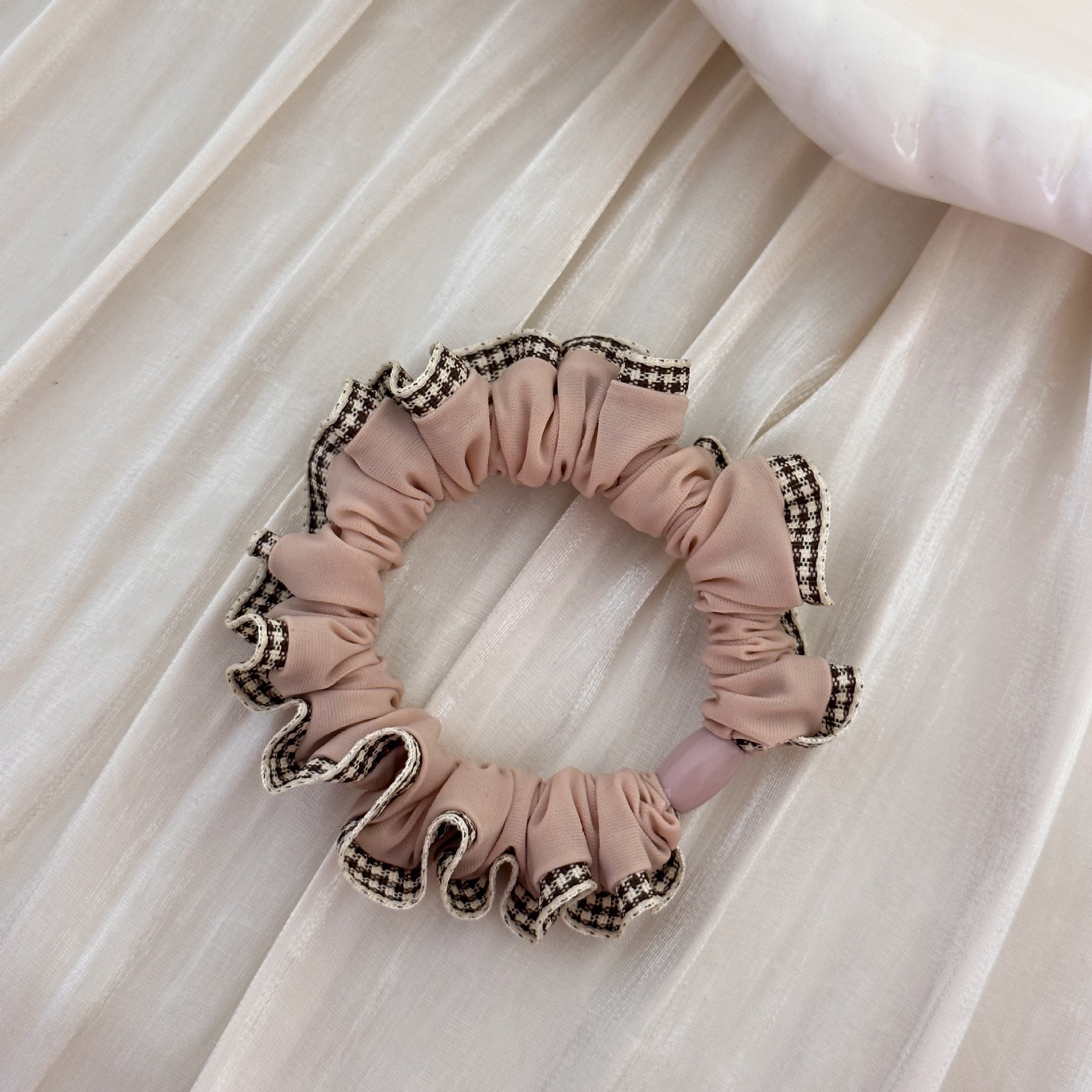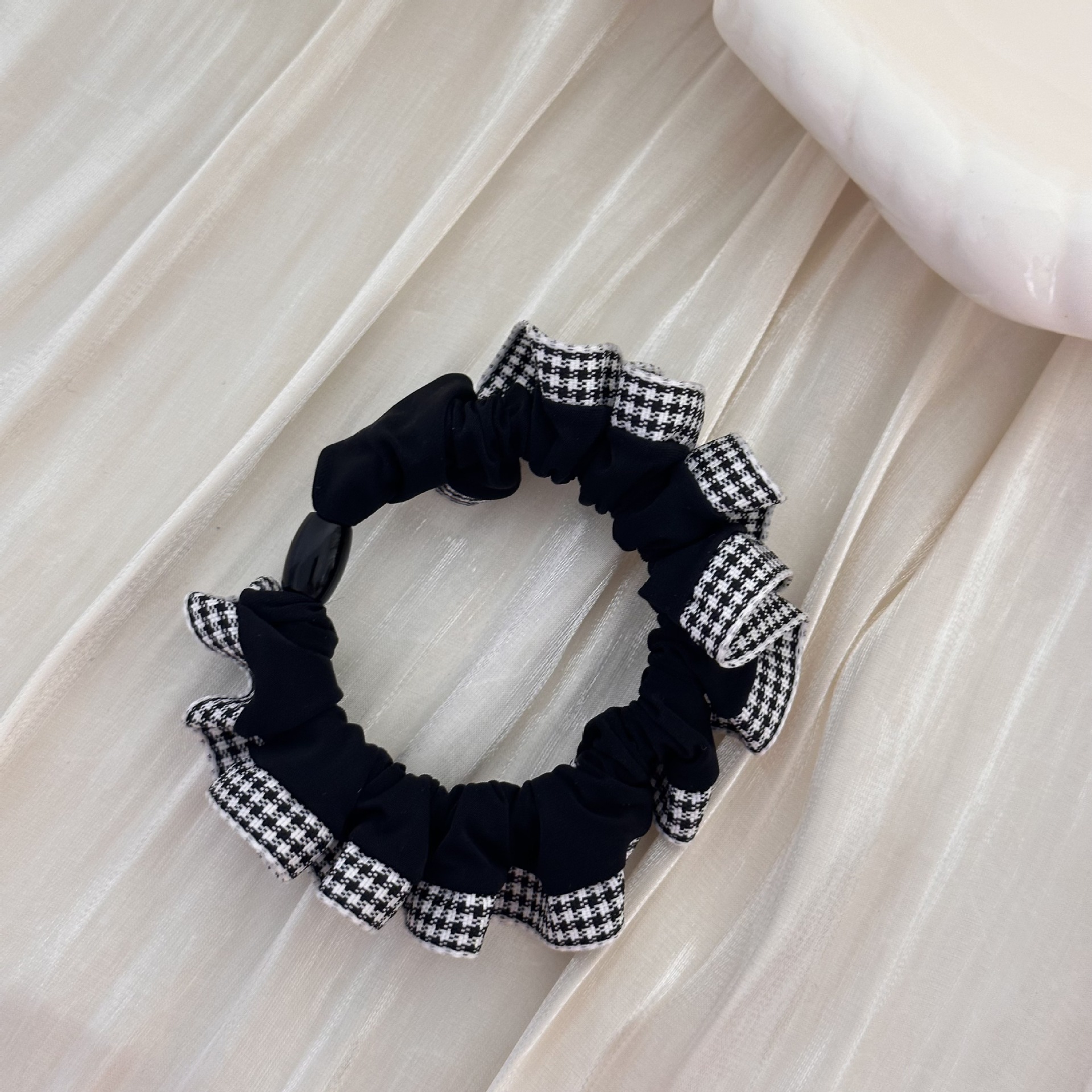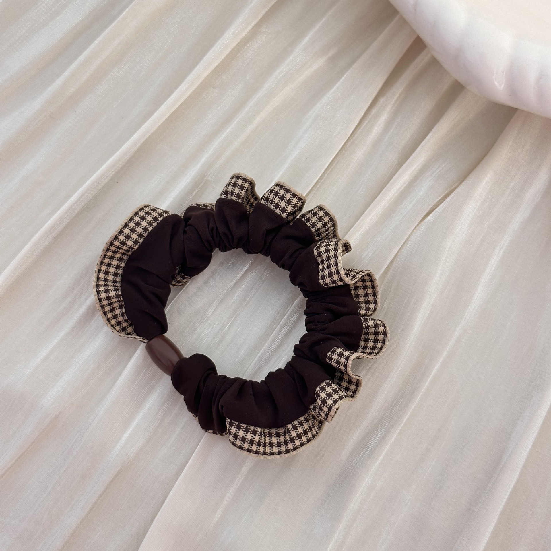 빈티지 체크 레이스 소장 머리 반지 인터넷 붉은 기질 말꼬리 머리 로프 공 머리 로프 고무 밴드는 머리카락을 다치게하지 않습니다스토어 가기