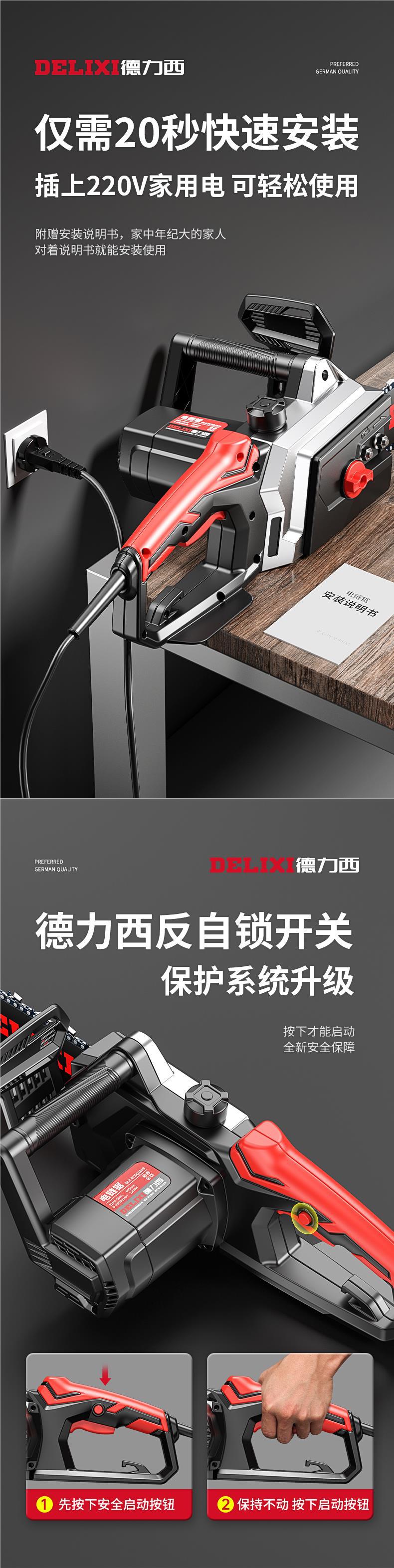 Delixi 전기 톱 220v 가정용 휴대용 전기 로깅 작은 야외 톱 나무 절단 전기 체인 톱 체인 톱 체인 톱스토어 가기