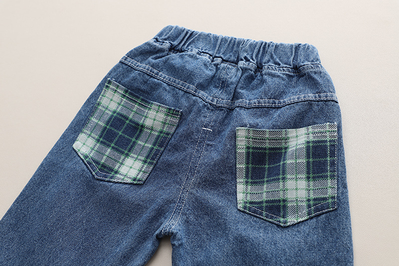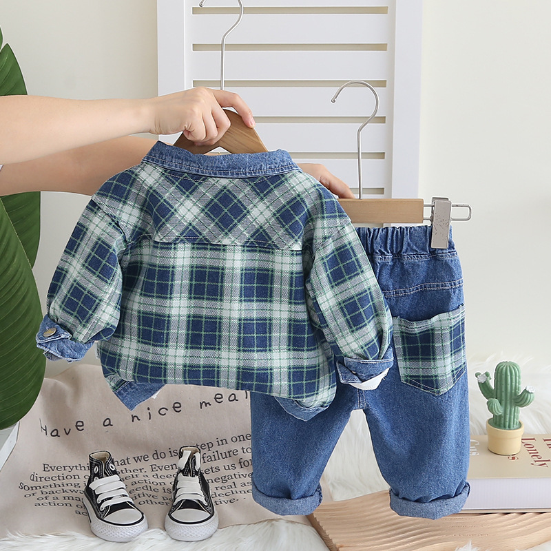 봄과 가을 세트 가을 새로운 서양식 운동복 중소 어린이 소년 아기의 도로 마크 체크 무늬 긴 소매 3 피스 세트 트렌디스토어 가기