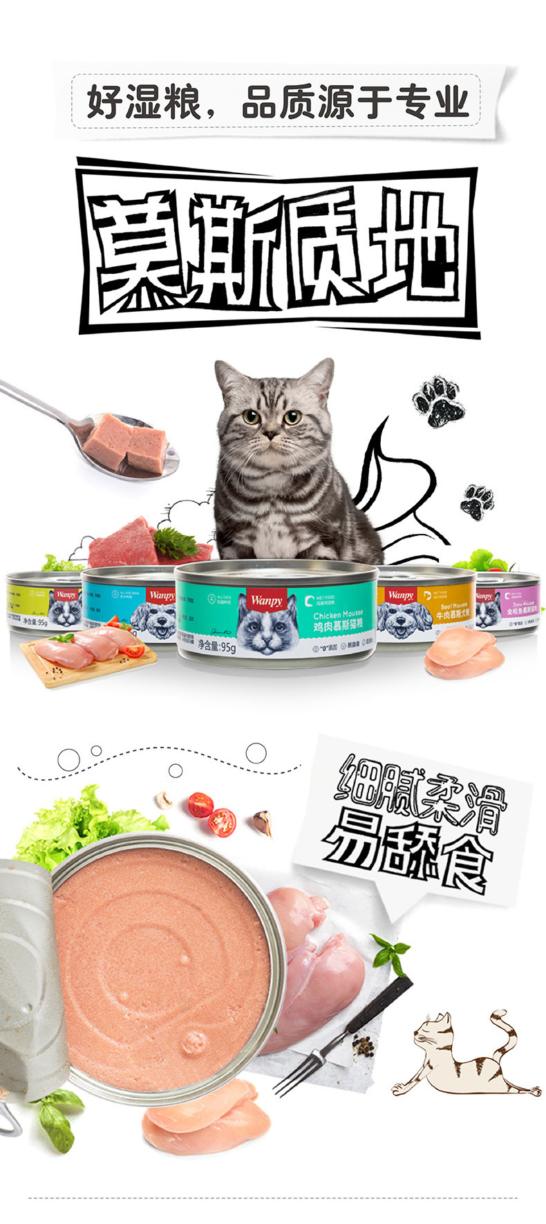Wanpy Naughty Cat 캔 무스 신선한 고기 개 캔 치킨 참치 수분 수프 캔 어린 성인 고양이 애완 동물 캔스토어 가기