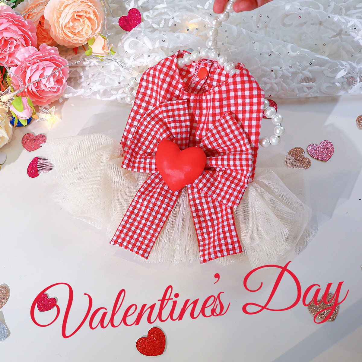 PETCIRCLE 애완동물 의류 강아지 고양이 옷 발렌타인 데이 하트 드레스 망사 스커트 스웨트셔츠 액세서리 컬렉션