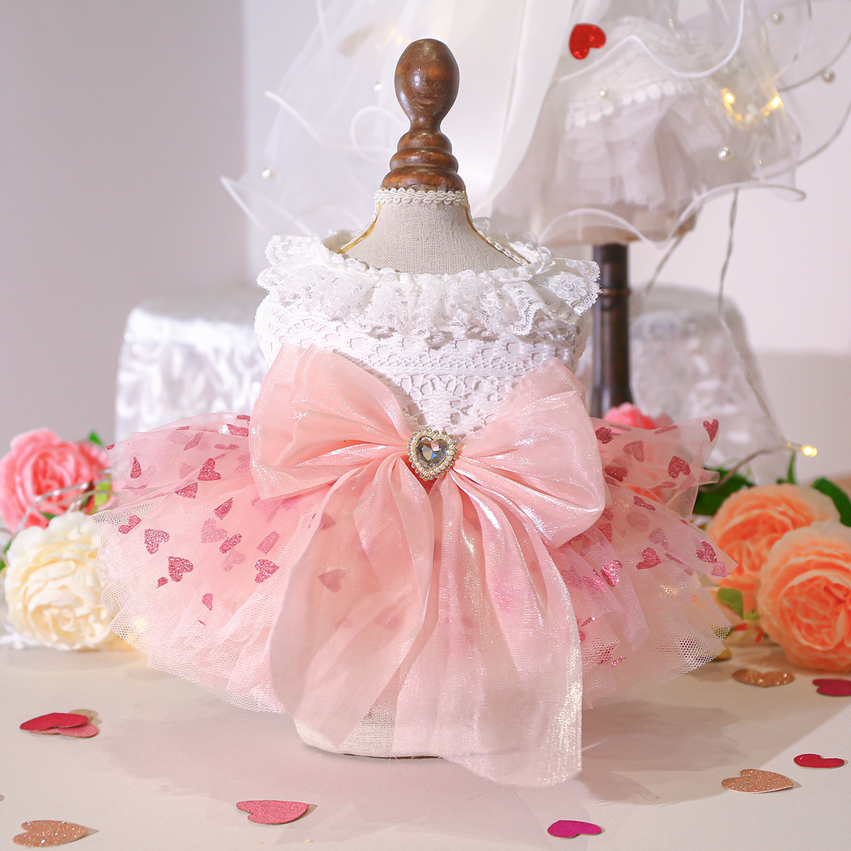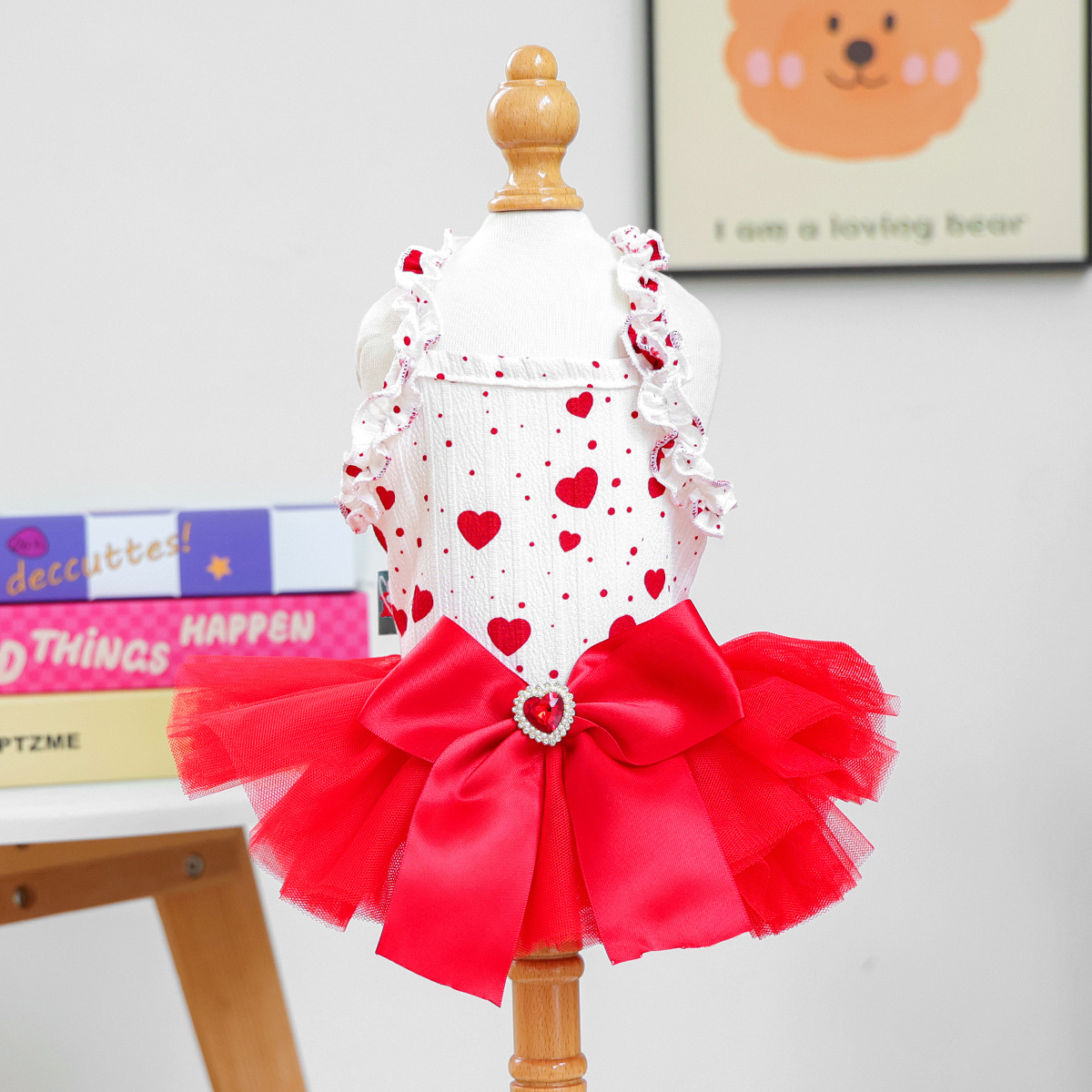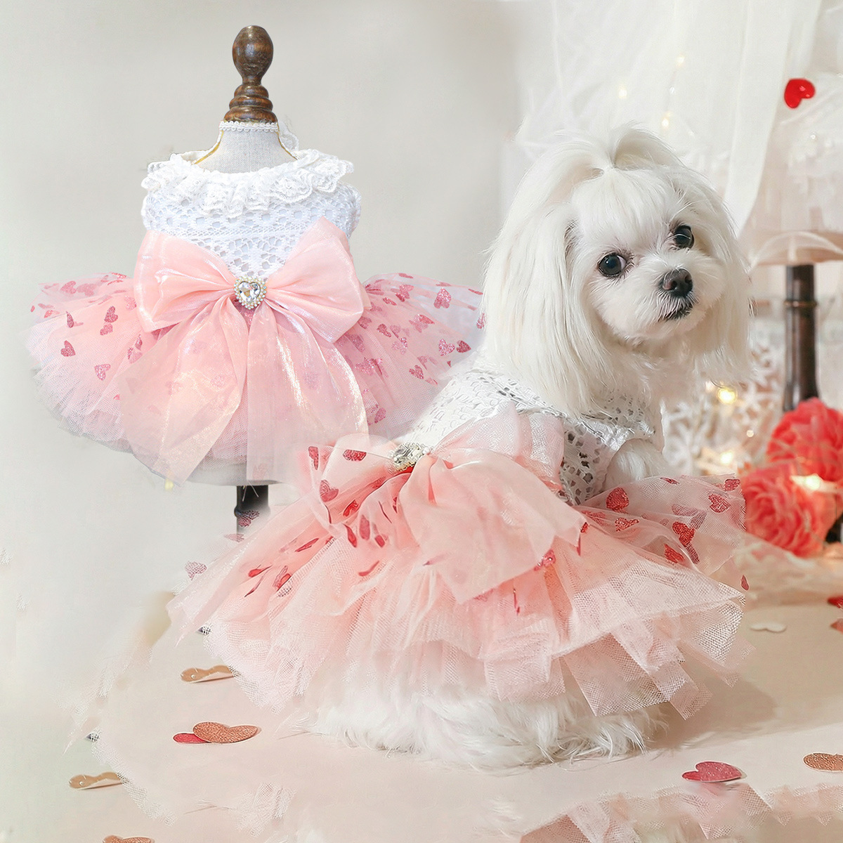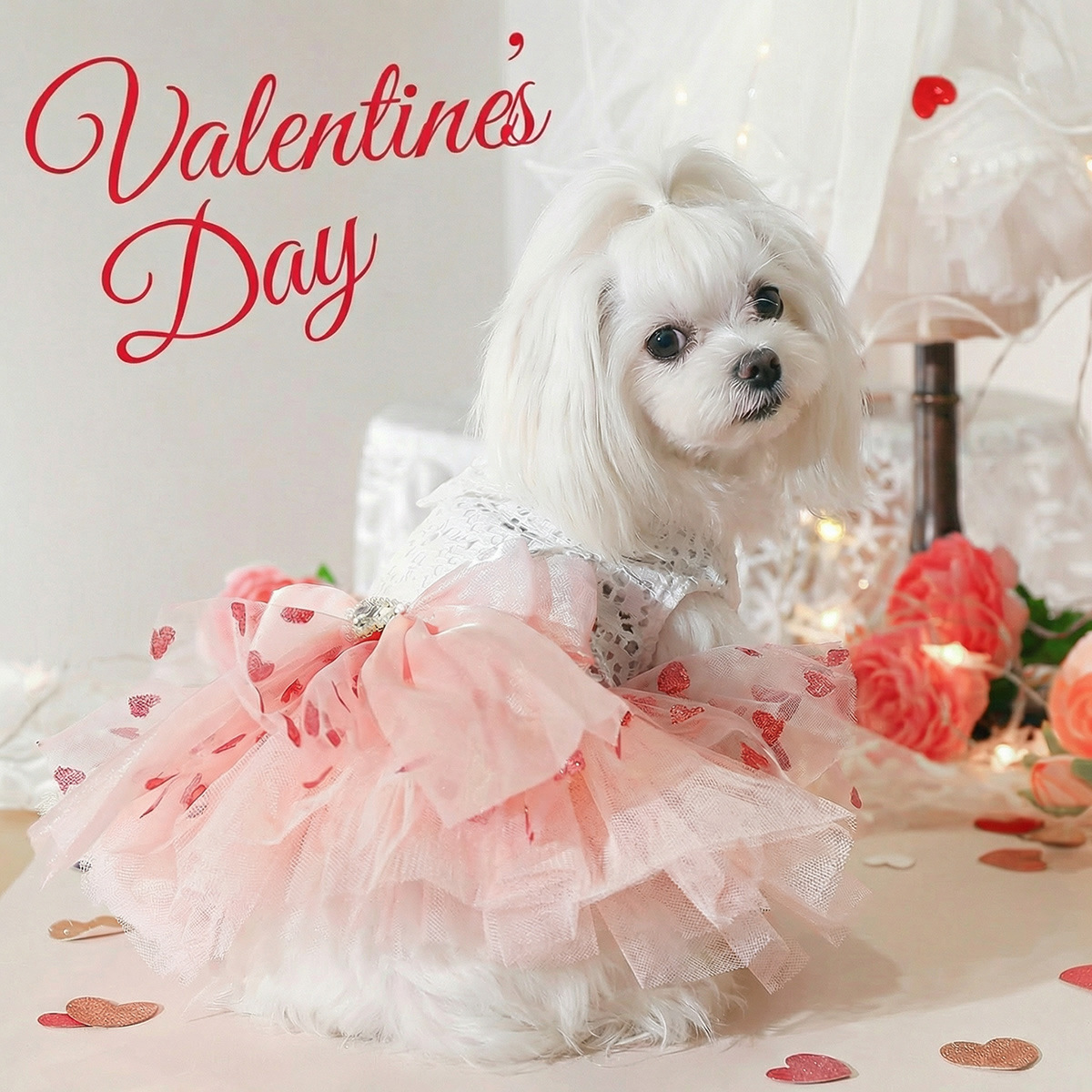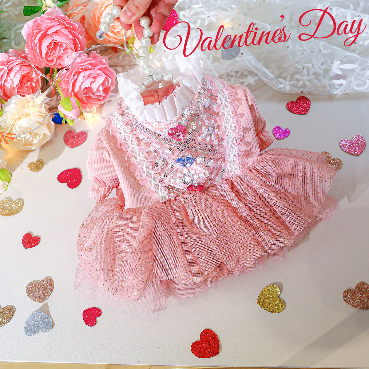 PETCIRCLE 애완동물 의류 강아지 고양이 옷 발렌타인 데이 하트 드레스 망사 스커트 스웨트셔츠 액세서리 컬렉션스토어 가기