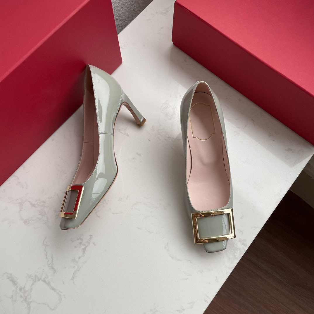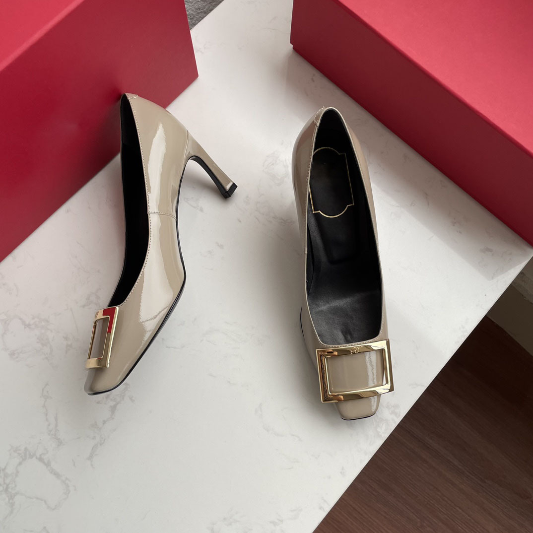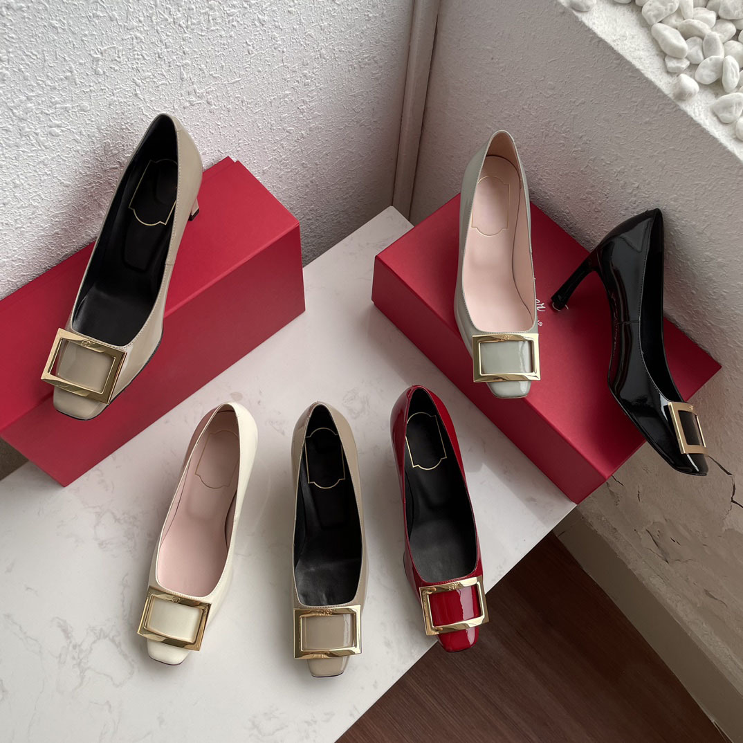 스퀘어 버클 하이힐이있는 스틸레토 힐 유행 간단한 대기 매일 우아한 입 스퀘어 헤드 레트로 스타일 올 매치 특허 가죽 높이 상승