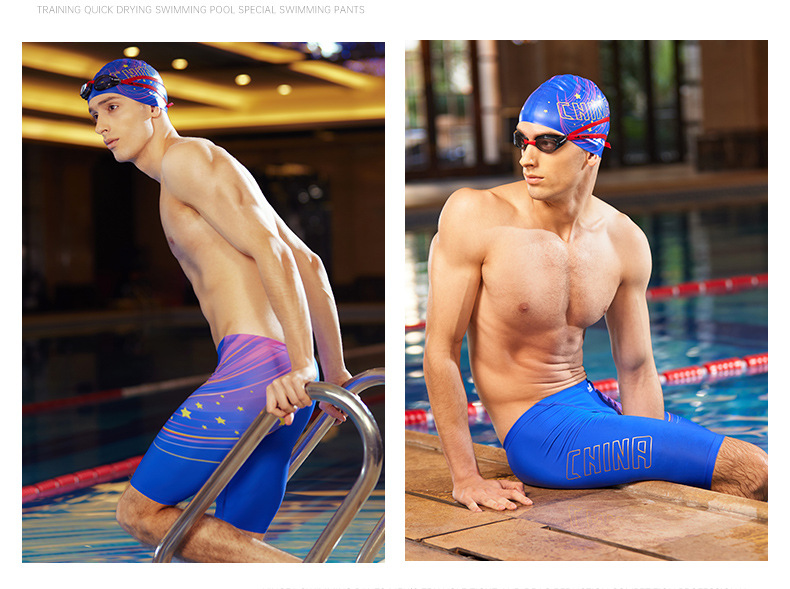 Yingfa 경쟁 수영 트렁크 남자 프로 레이싱 트레이닝 수영 트렁크 남자 10 대 5 점 무릎 긴 퀵 드라이 수영 트렁크