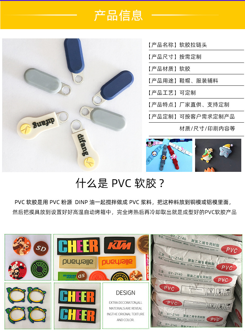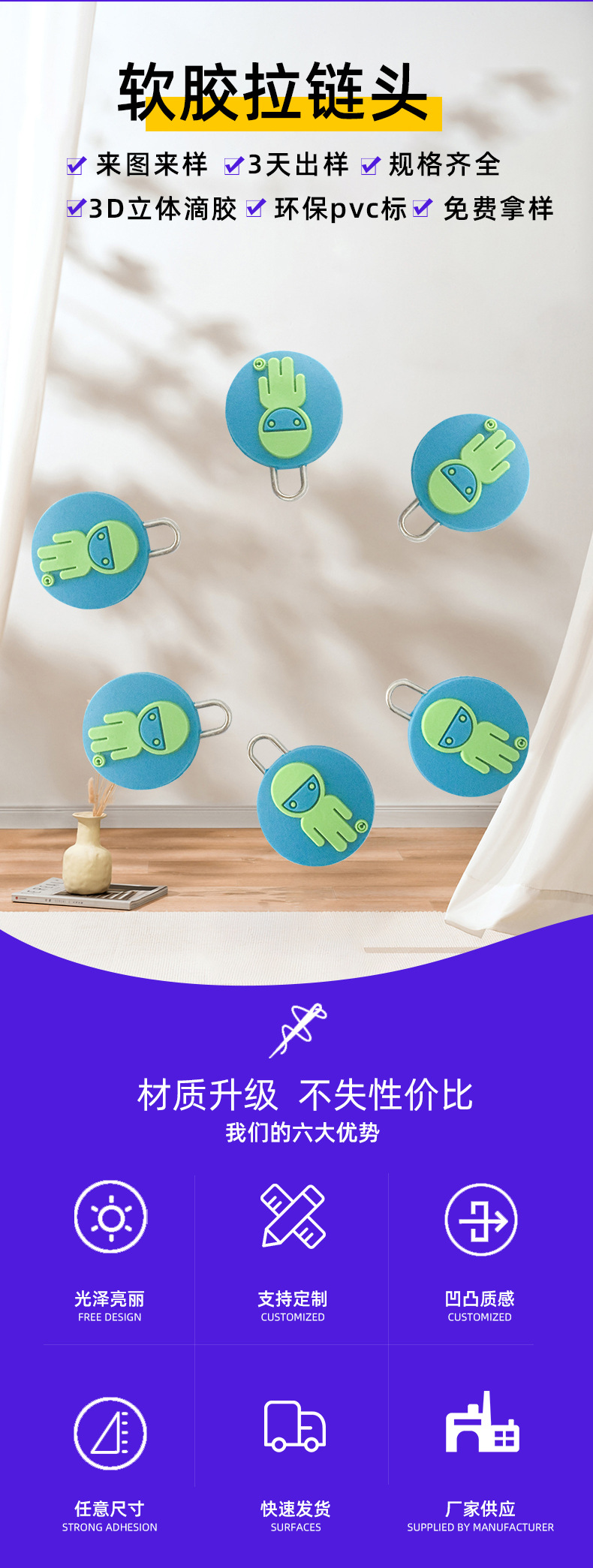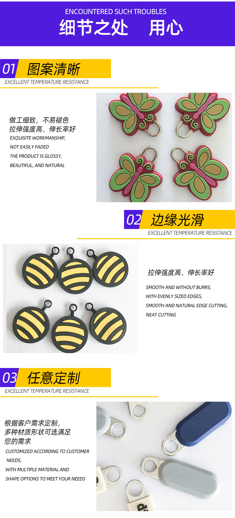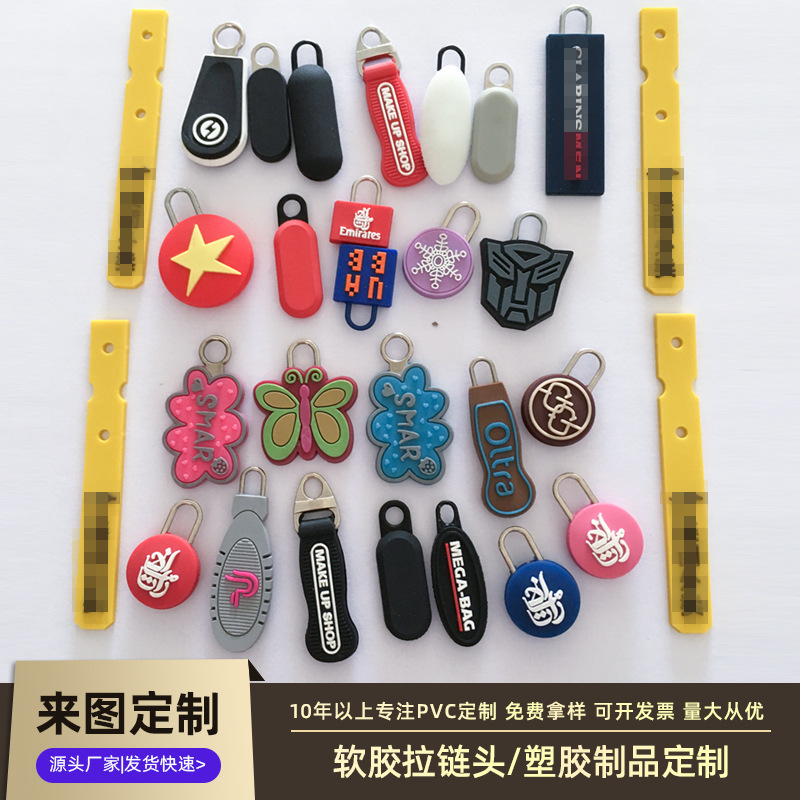 부드러운 고무 지퍼 머리 의류 액세서리 단면 PVC 부드러운 고무 풀 헤드 풀 조각 플라스틱 풀 카드 샘플 도매지도