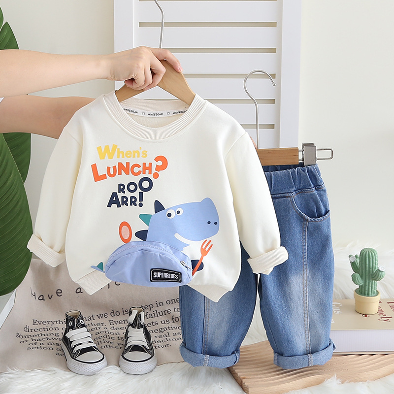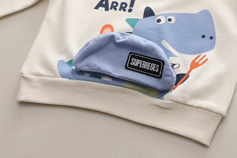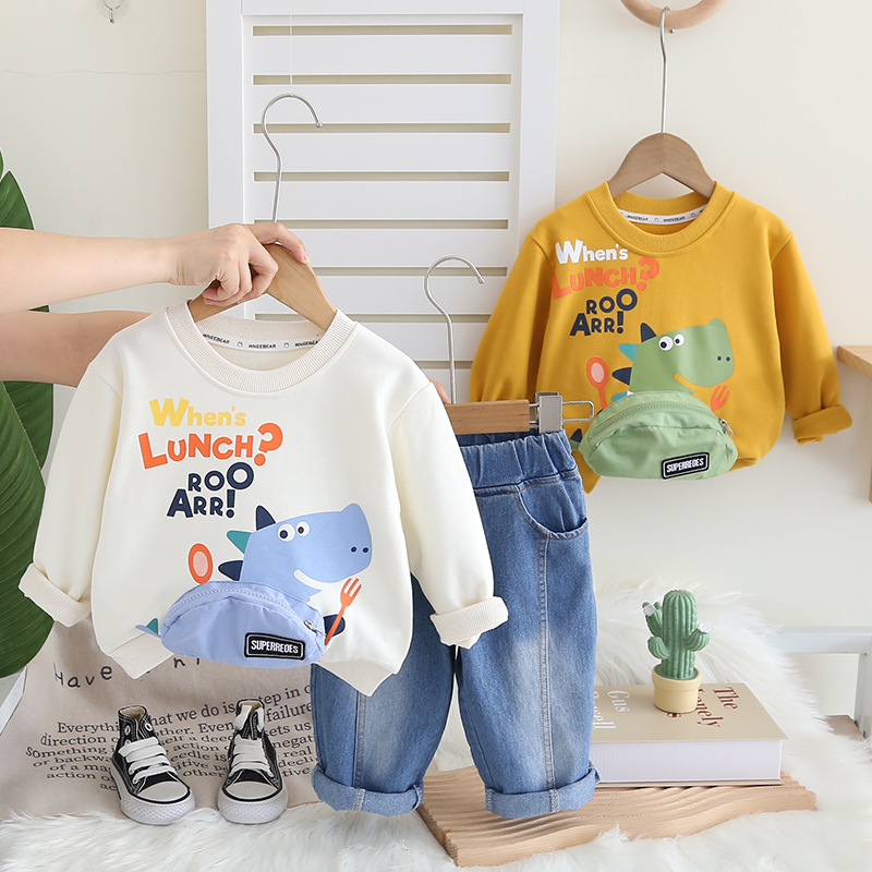봄과 가을 세트 가을 새로운 서양식 운동복 어린이 소년의 아기 공룡 가방 긴 소매 2 조각 유행 세트