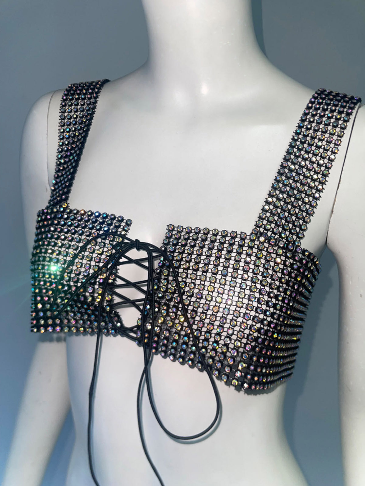국경 패션 여름 미국 쿨 탑 디자인 센스 컬러 다이아몬드 낚시 그물 작은 조끼 밤 스파이스 소녀 섹시한 인테리어