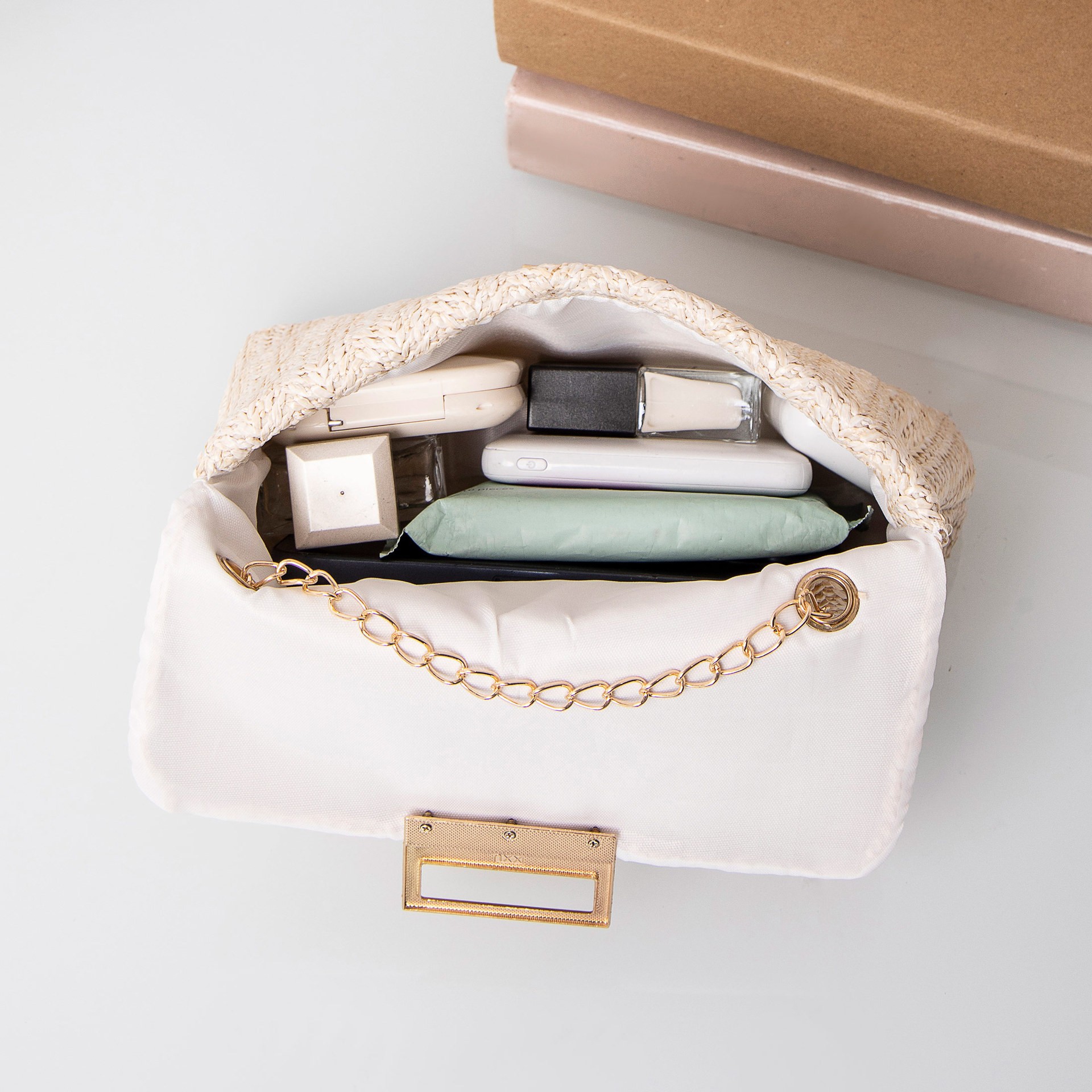 패션 밀짚 소재 더블 잠금 장치 숄더백 2025 신상 트렌디한 다용도 한국 스타일 심플 스몰 스퀘어백