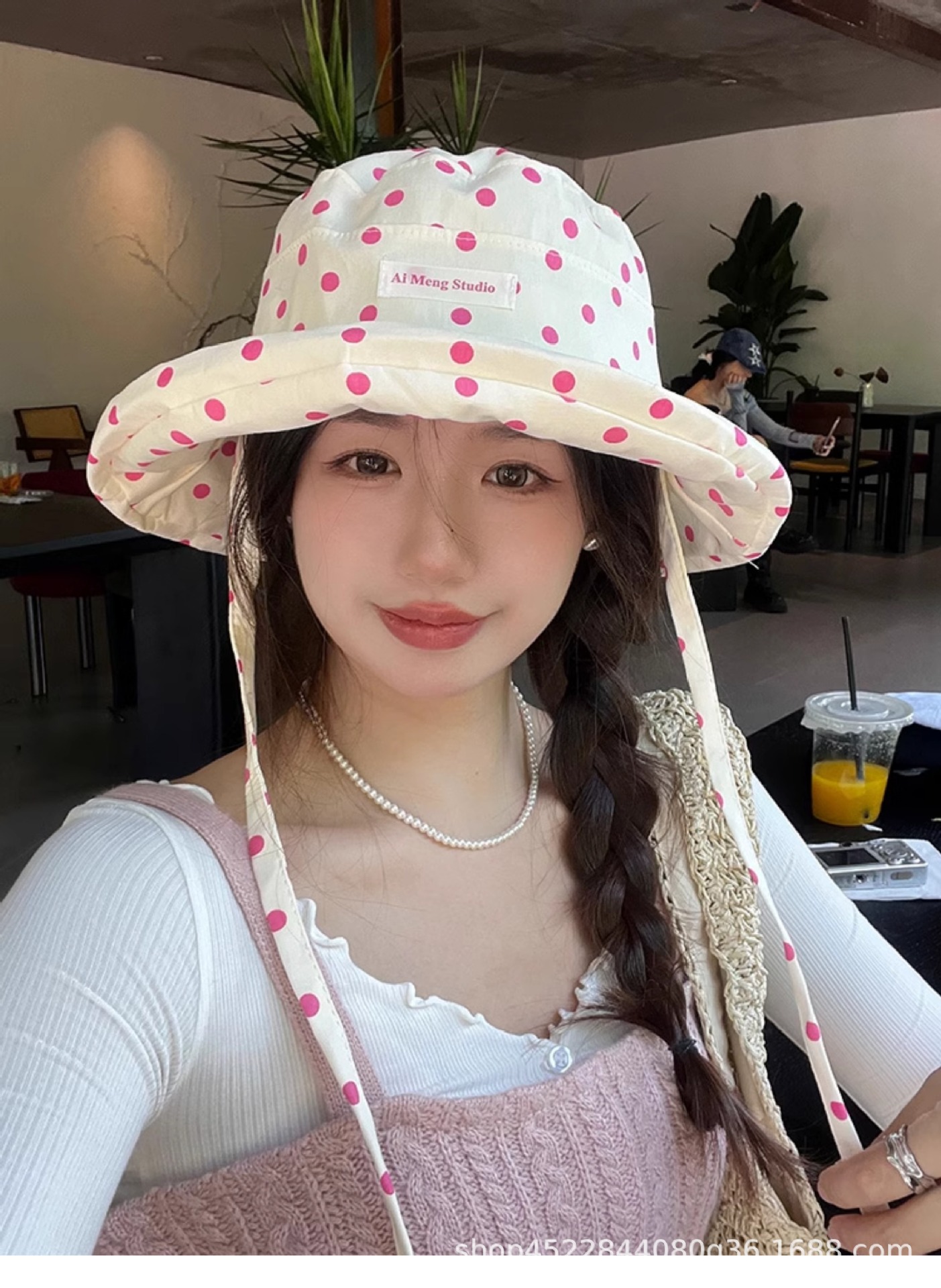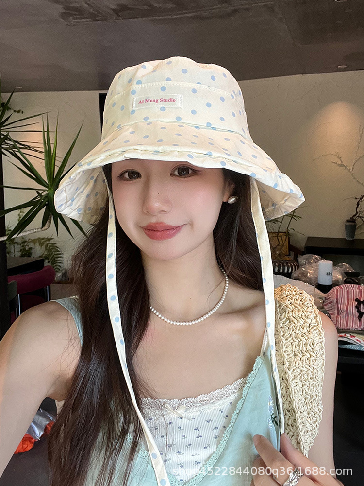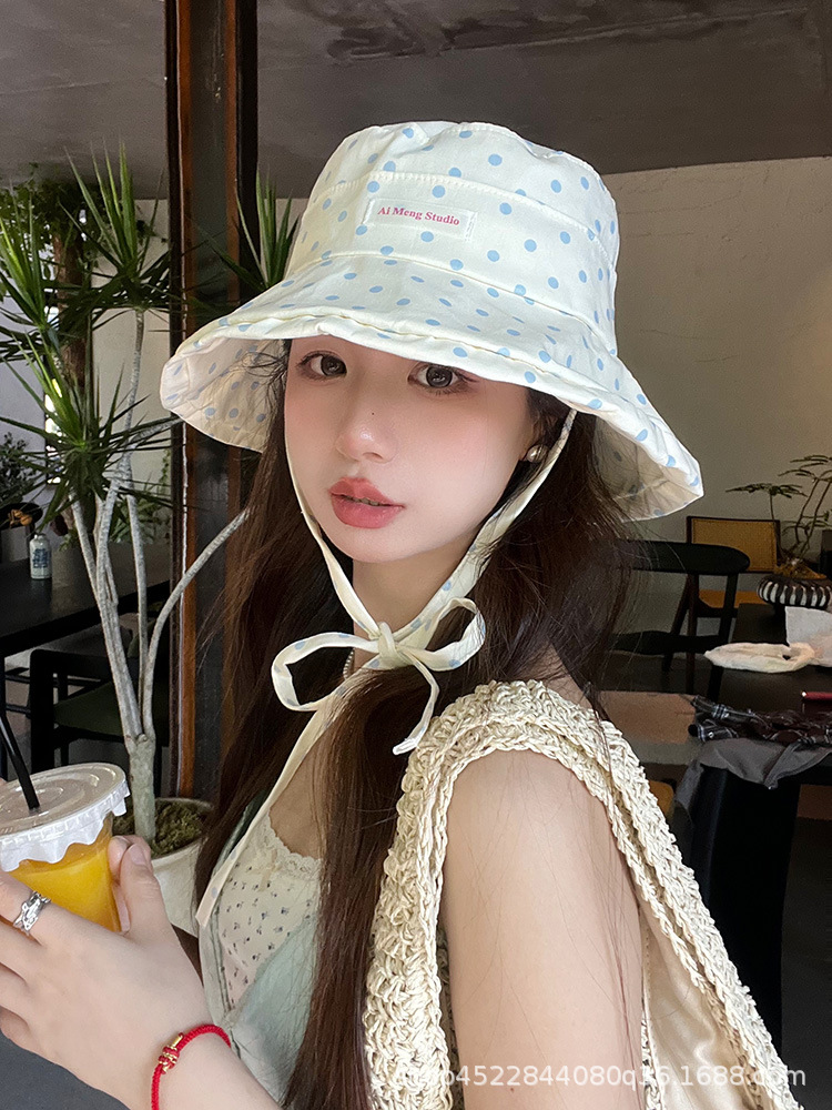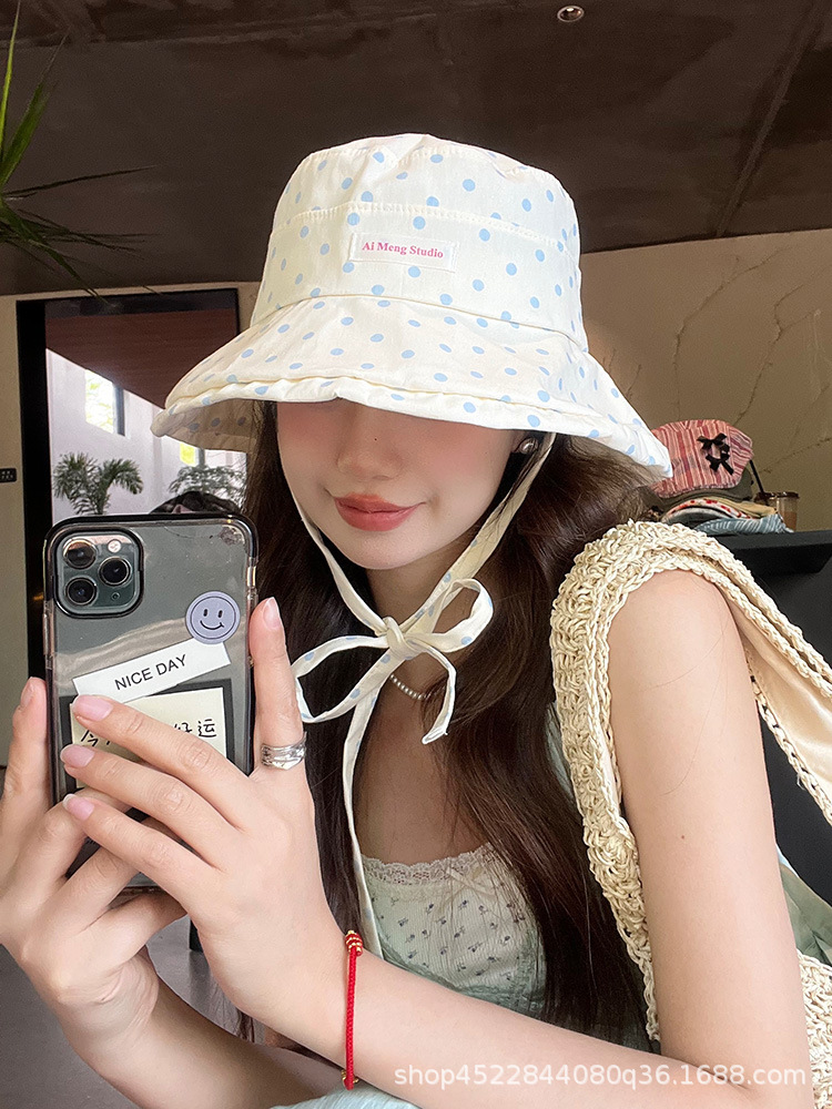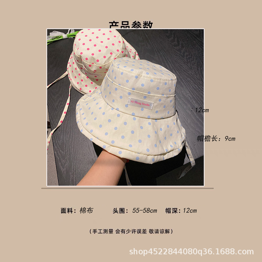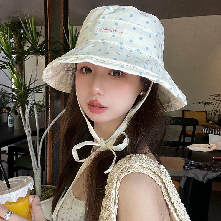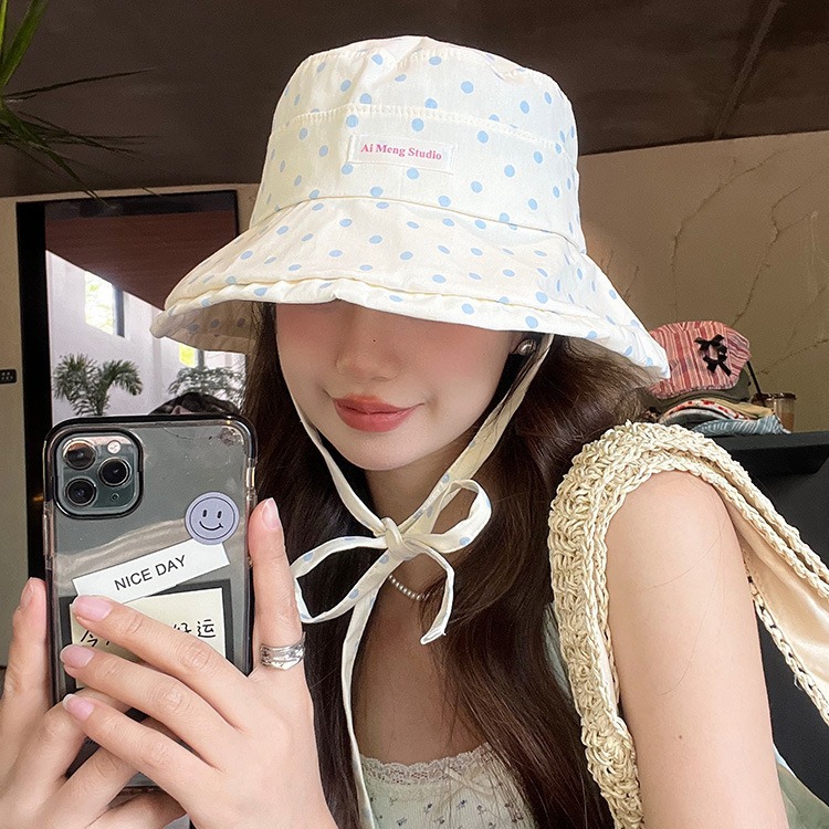 한국식 Ins 작은 신선한 웨이브 도트 레이스 업 어부 모자 학생 여름 여행 빅 햇 브림 선샤드 선크림 냄비 모자스토어 가기