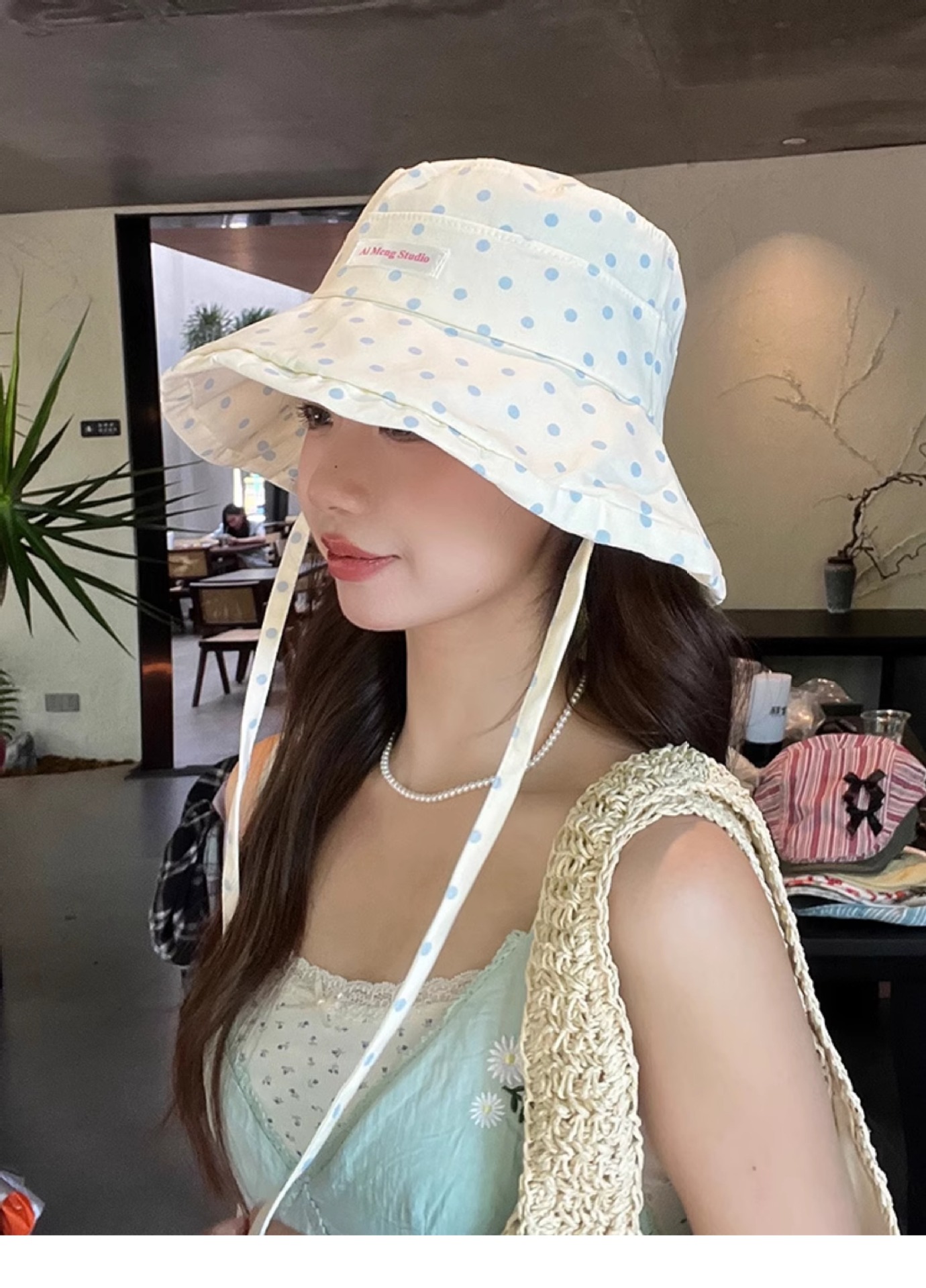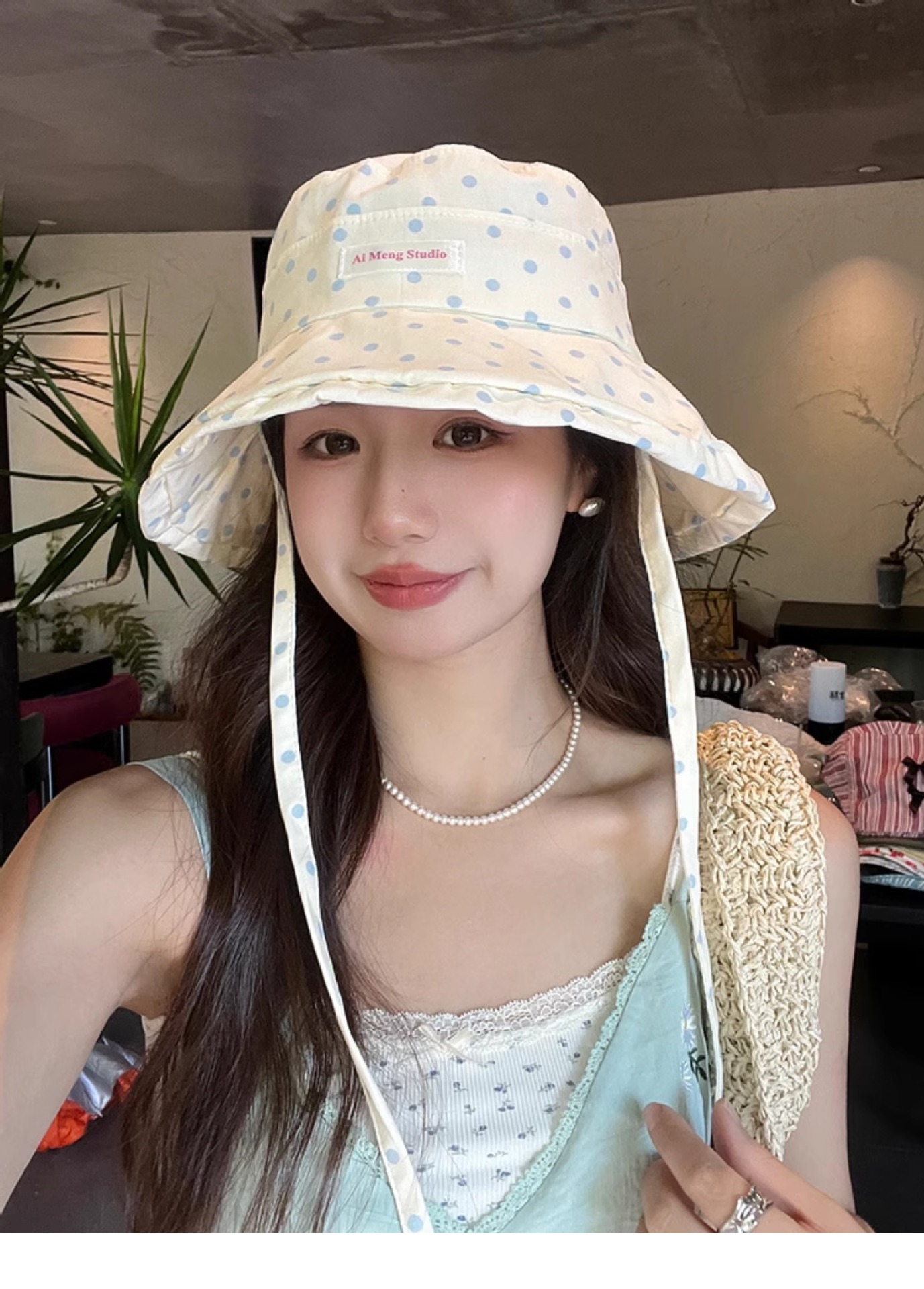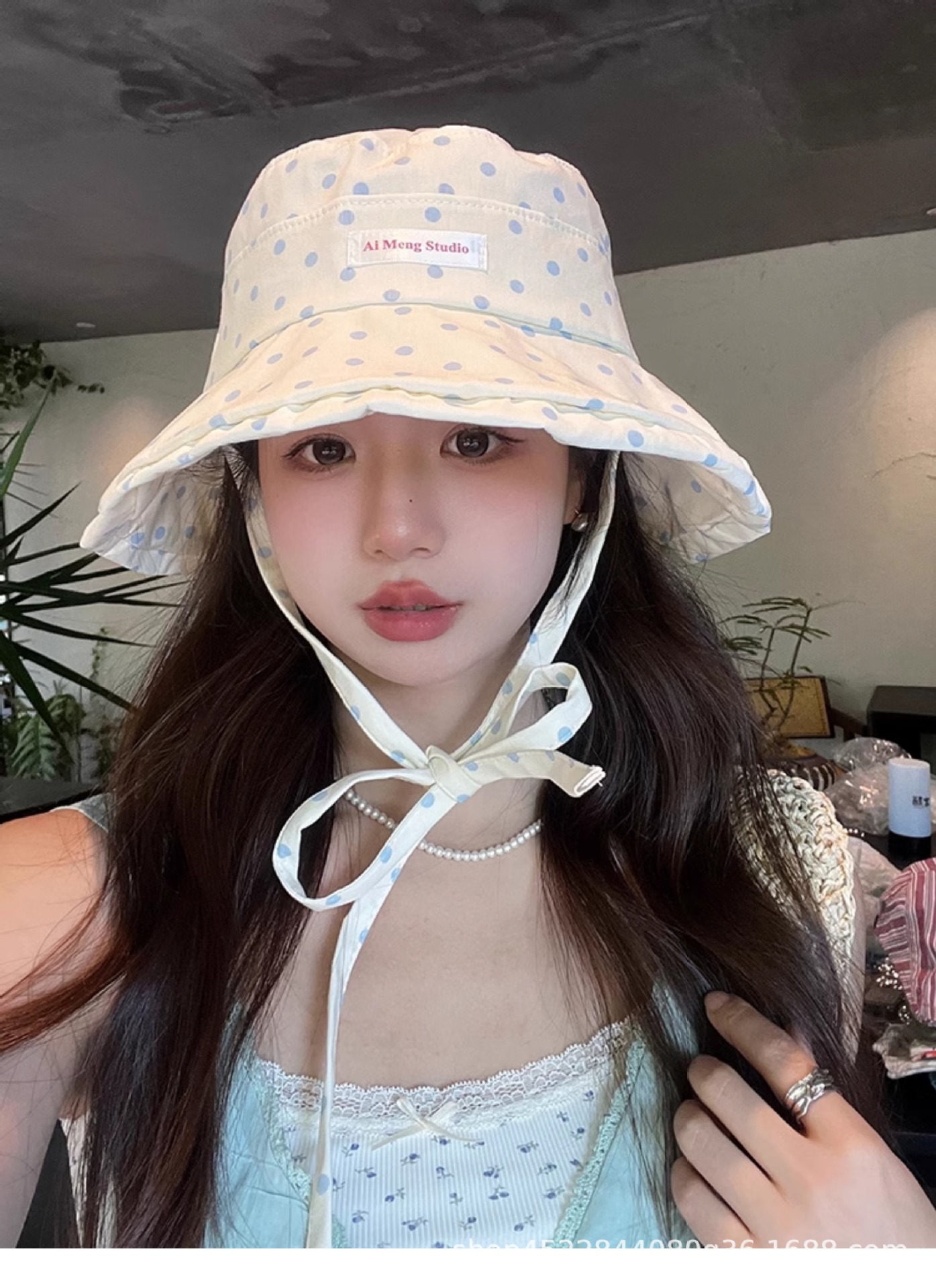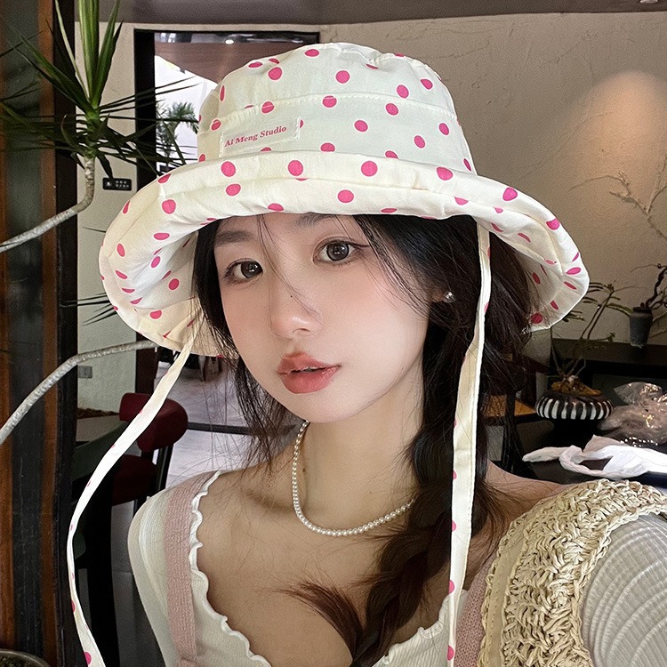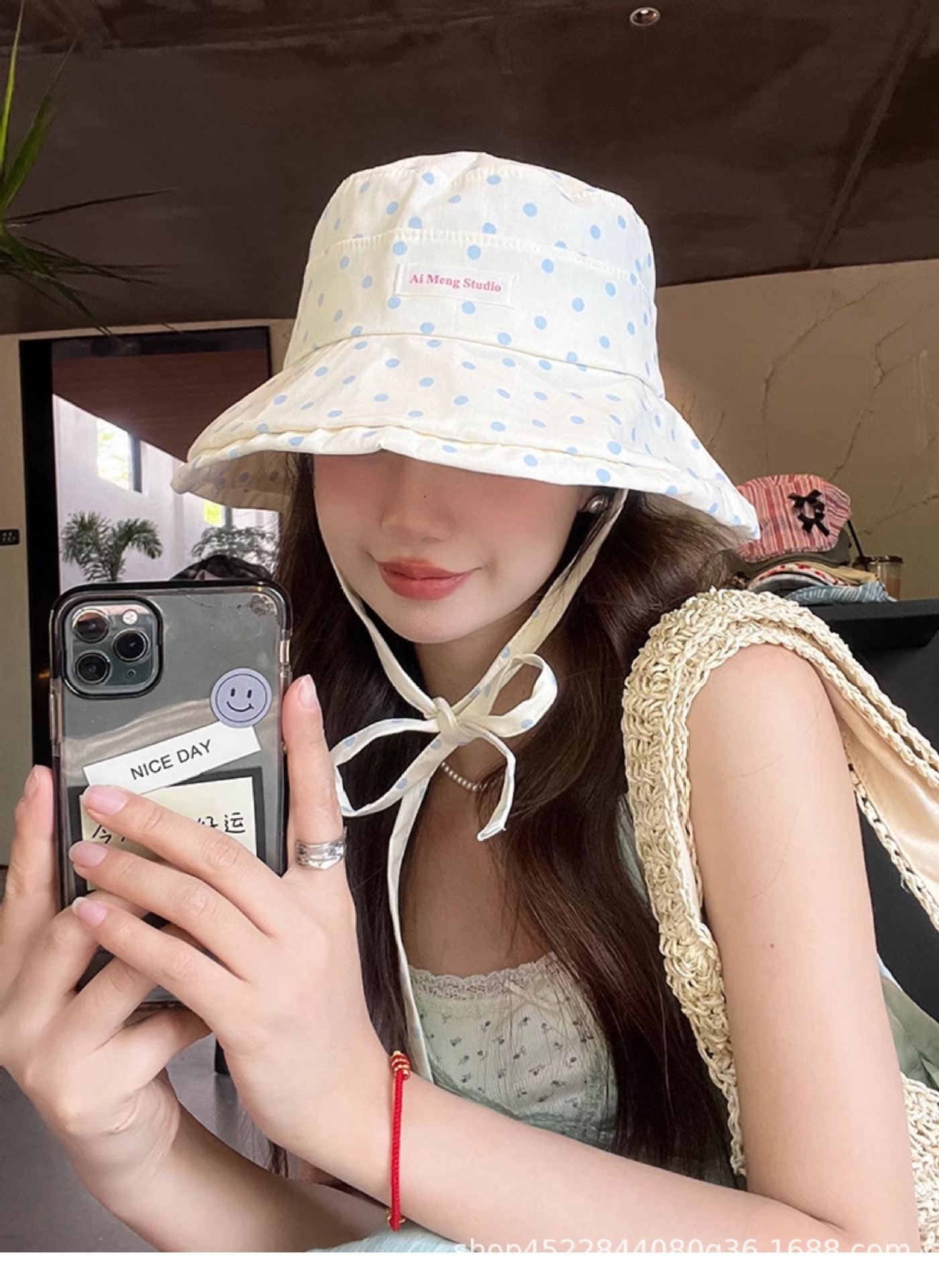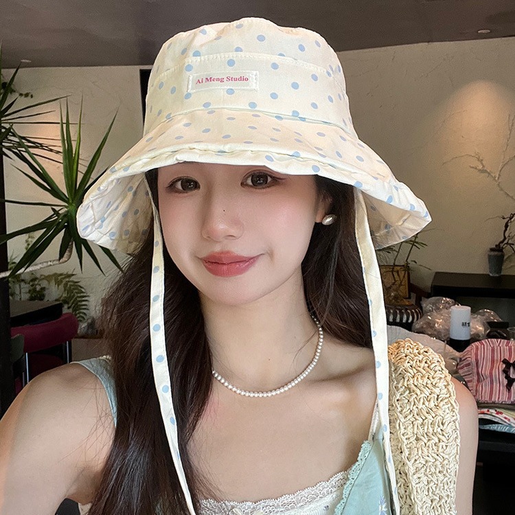 한국식 Ins 작은 신선한 웨이브 도트 레이스 업 어부 모자 학생 여름 여행 빅 햇 브림 선샤드 선크림 냄비 모자스토어 가기