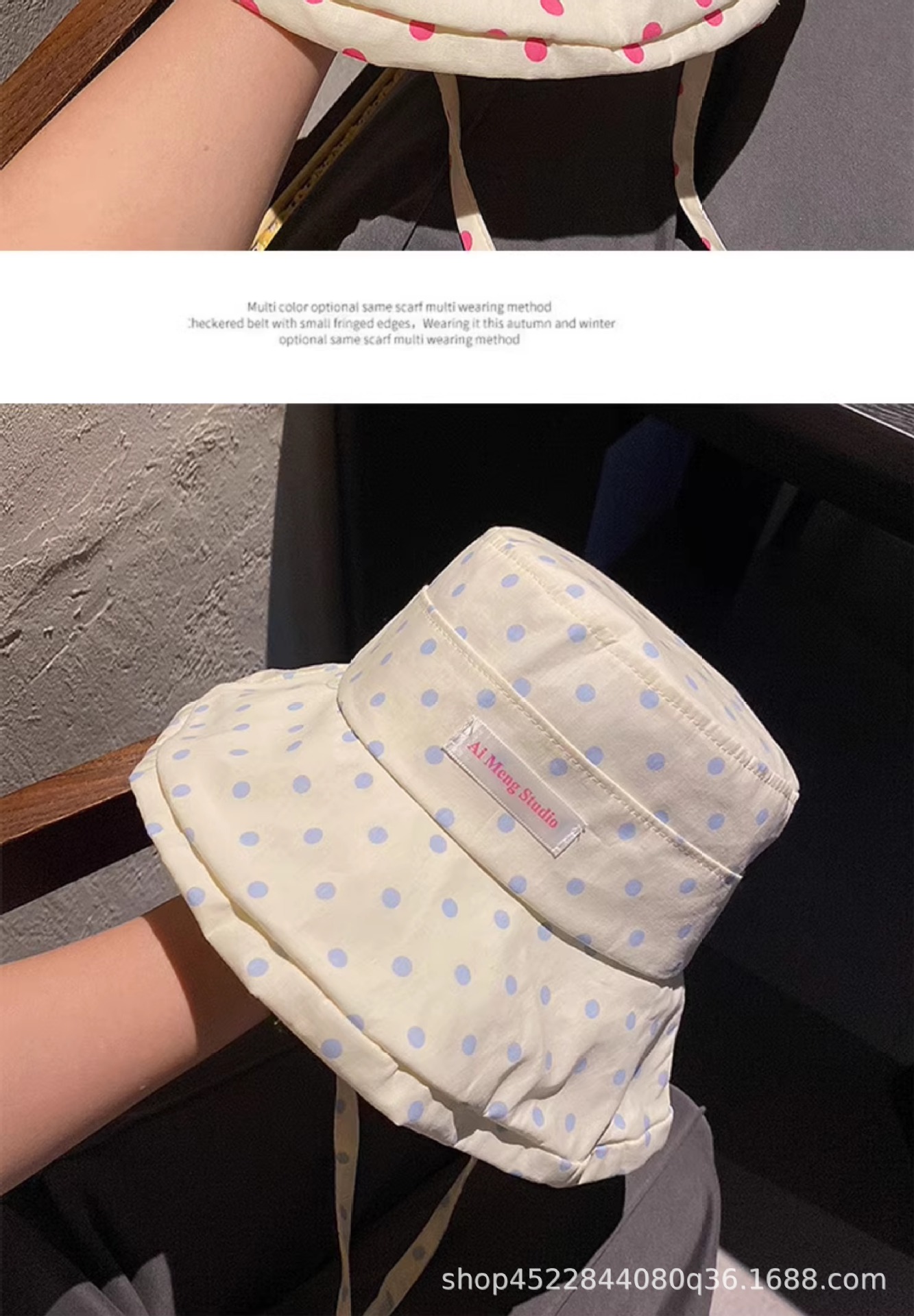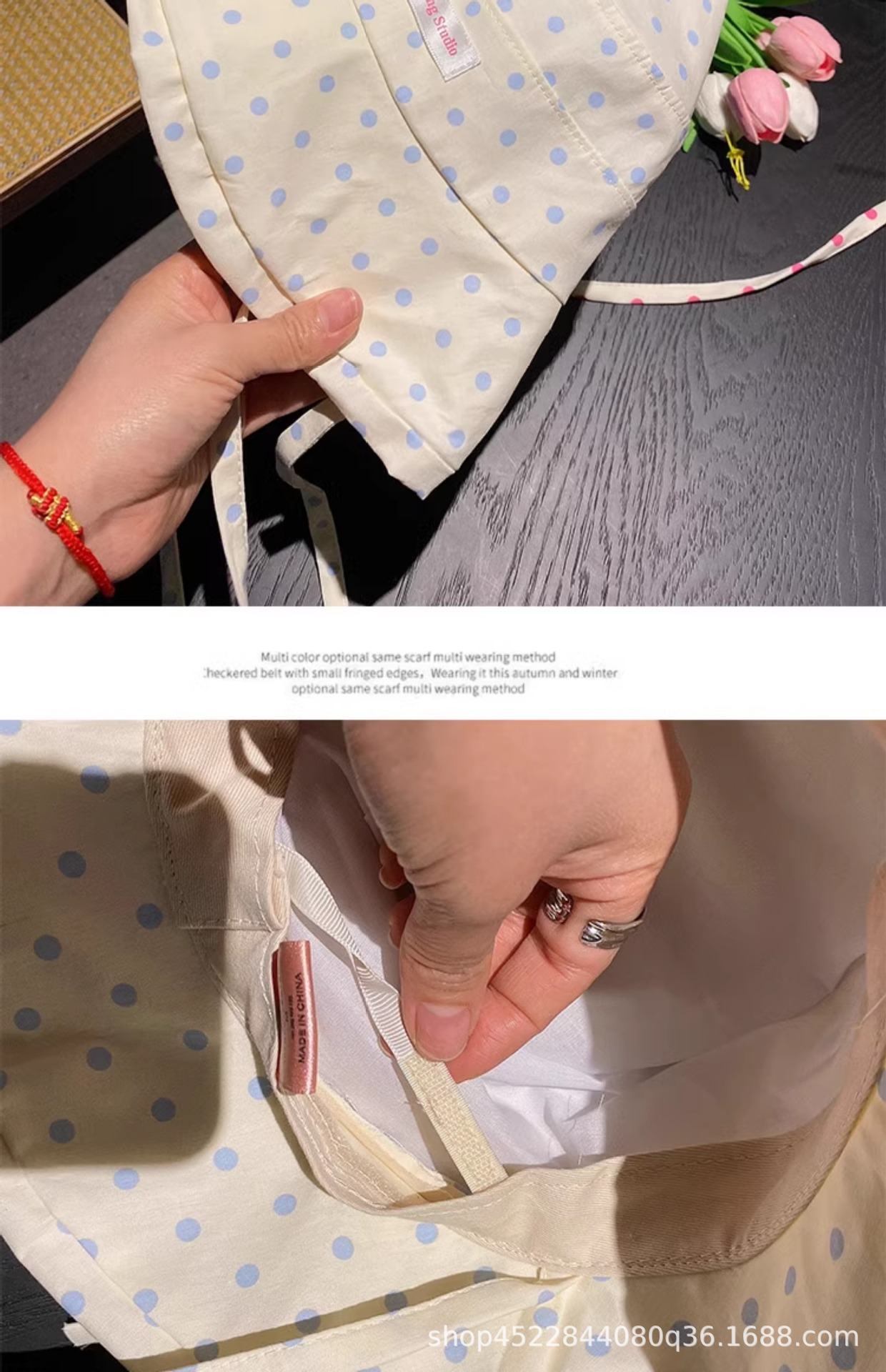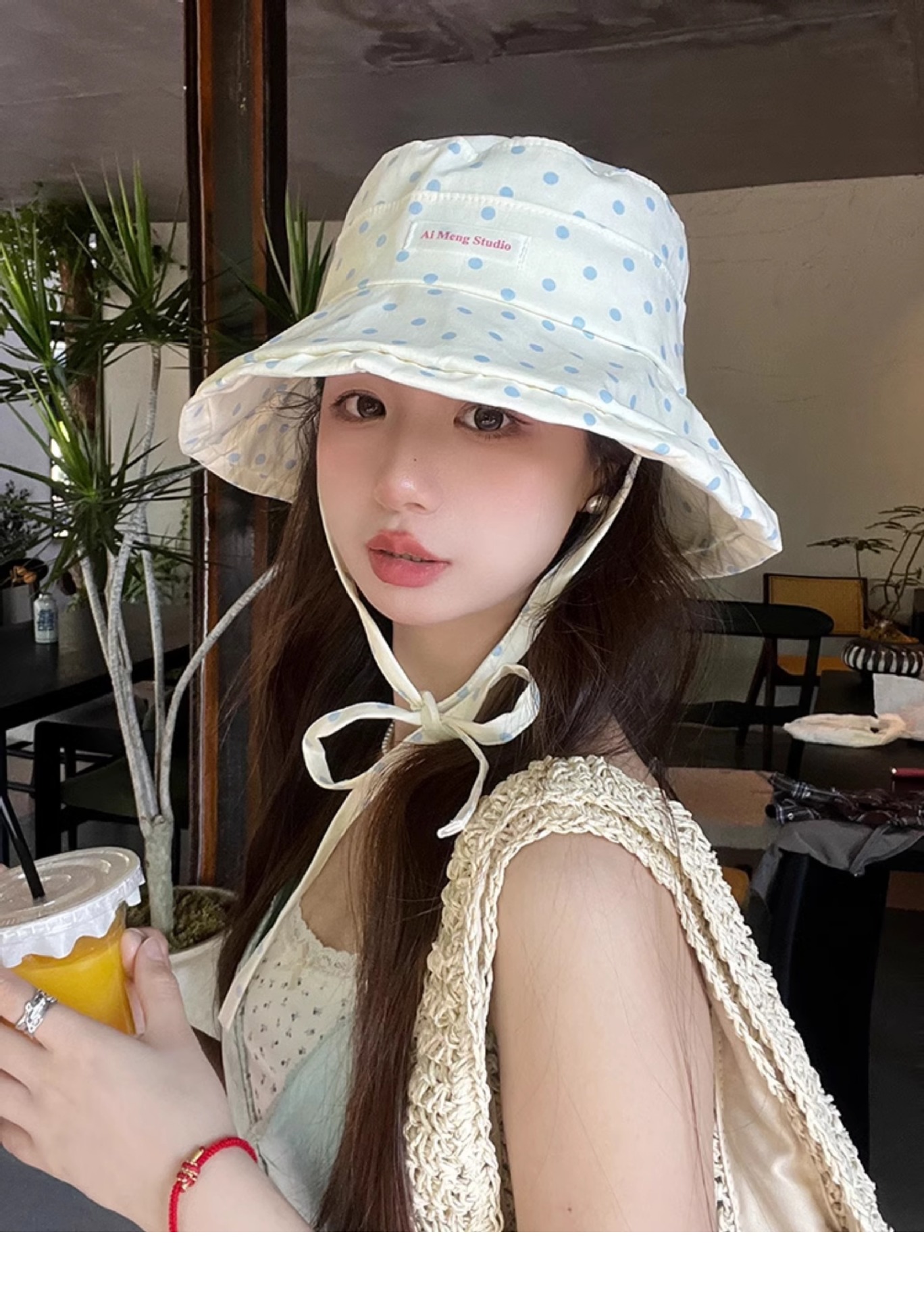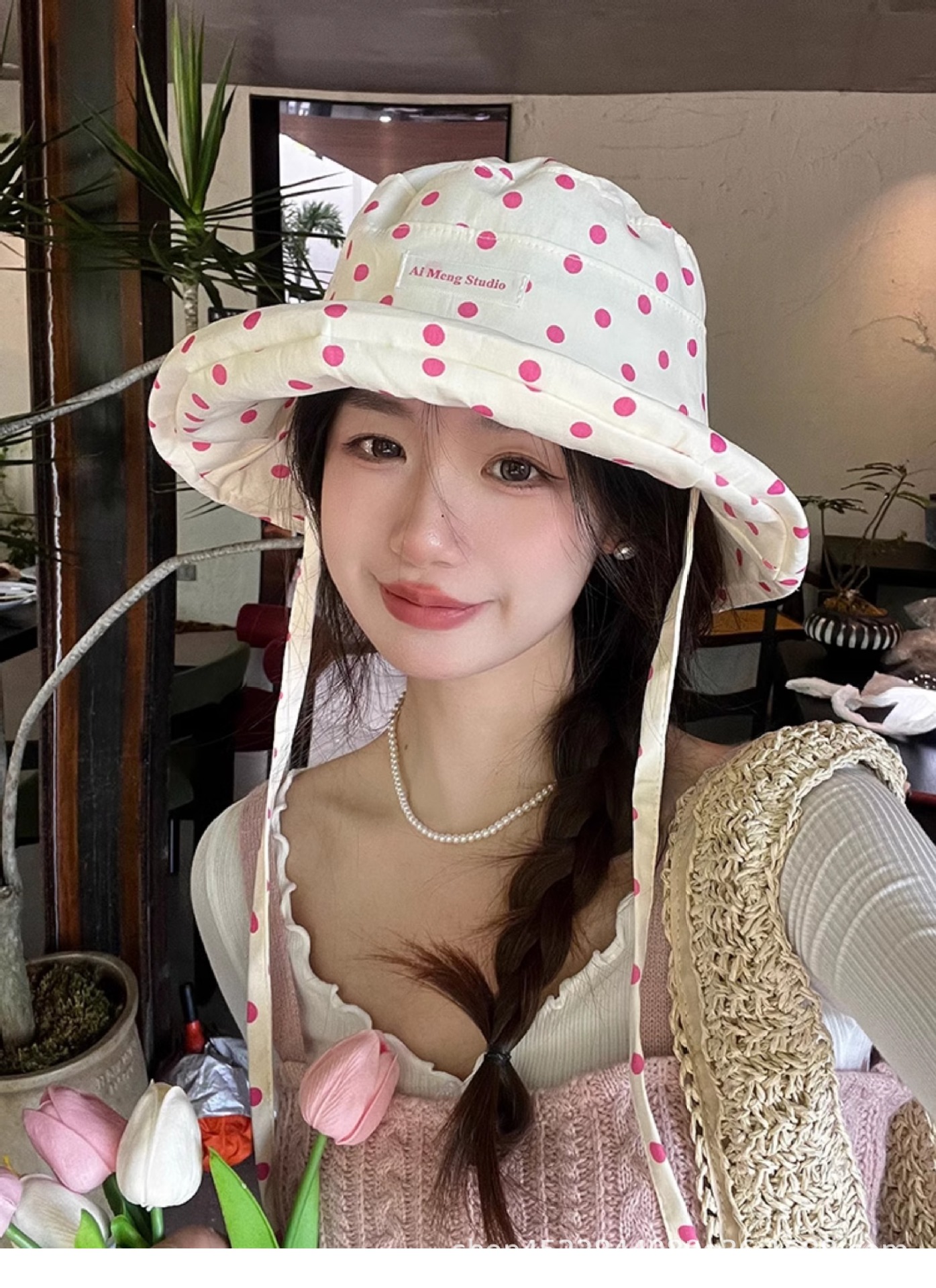 한국식 Ins 작은 신선한 웨이브 도트 레이스 업 어부 모자 학생 여름 여행 빅 햇 브림 선샤드 선크림 냄비 모자스토어 가기