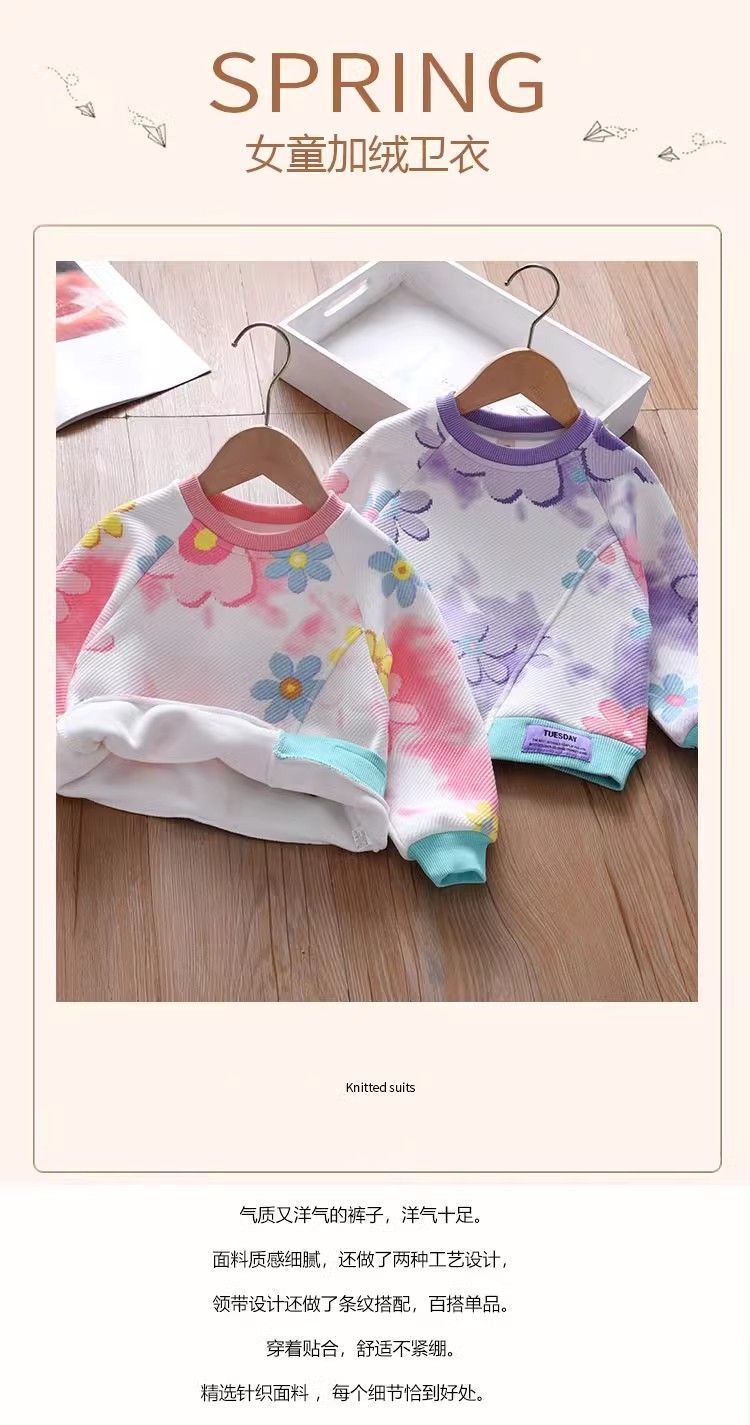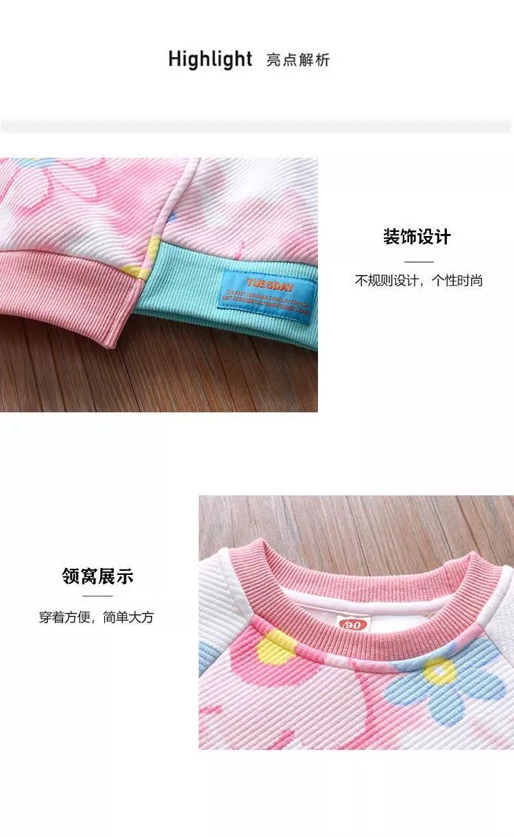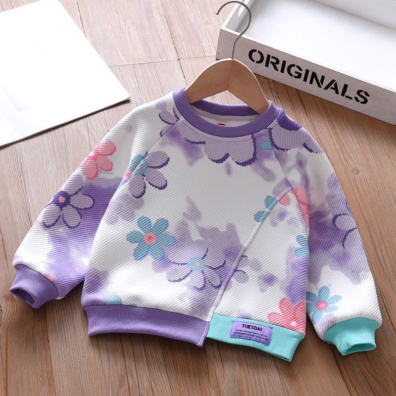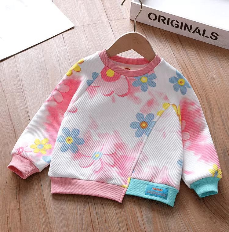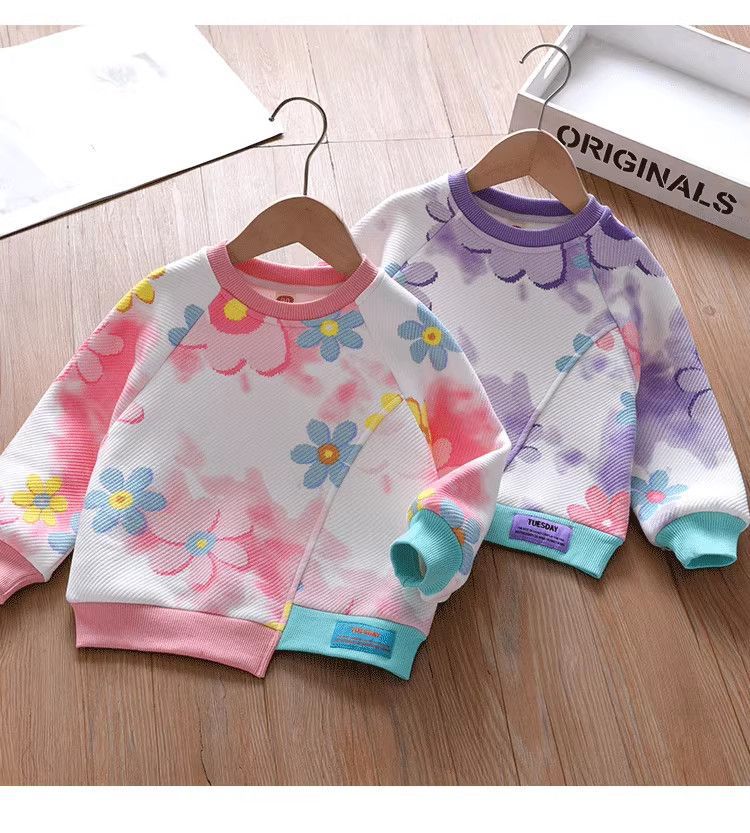 여자 긴팔 꽃 스웨트셔츠 2024 새로운 어린이 봄과 가을 그라디언트 소녀의 아기 한국식 탑 오픈 캐주얼스토어 가기