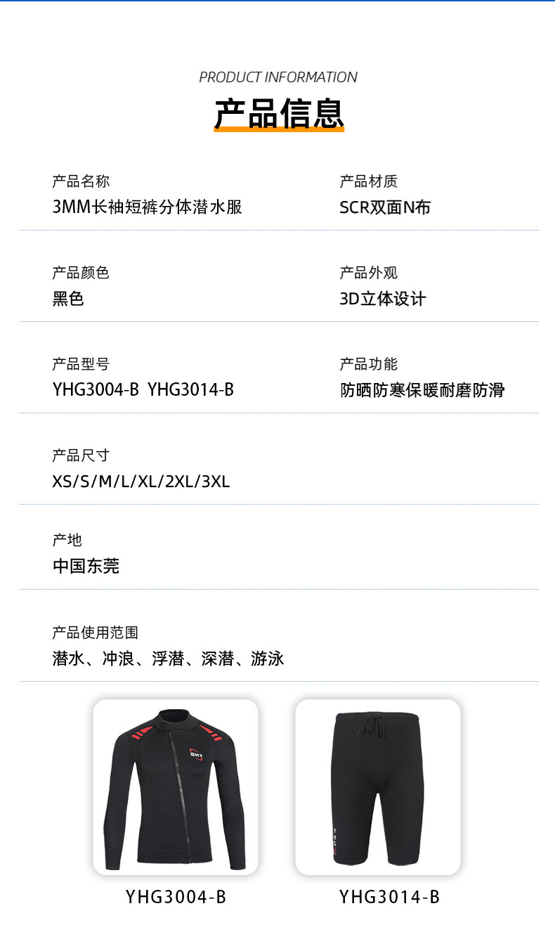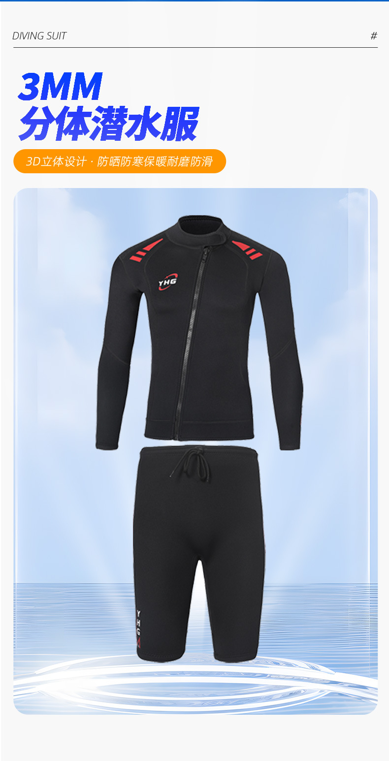 新款3mm分体潜水服男女款长袖短裤潜水衣防寒保暖浮潜冲浪游泳衣