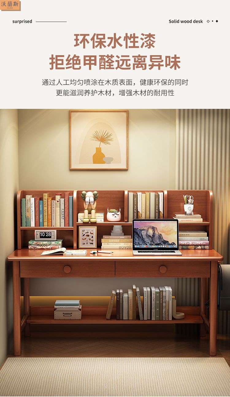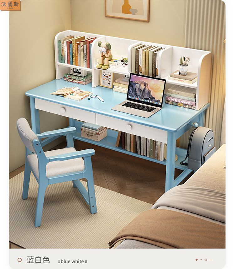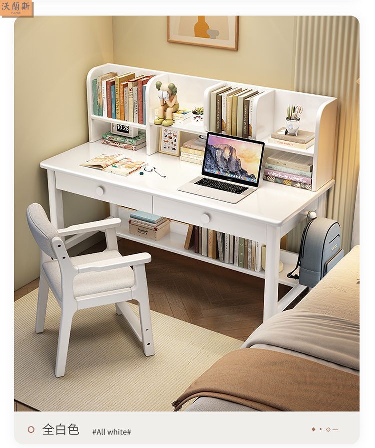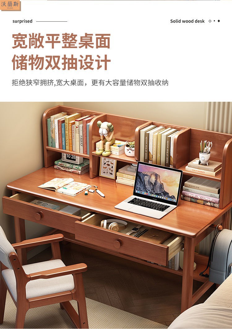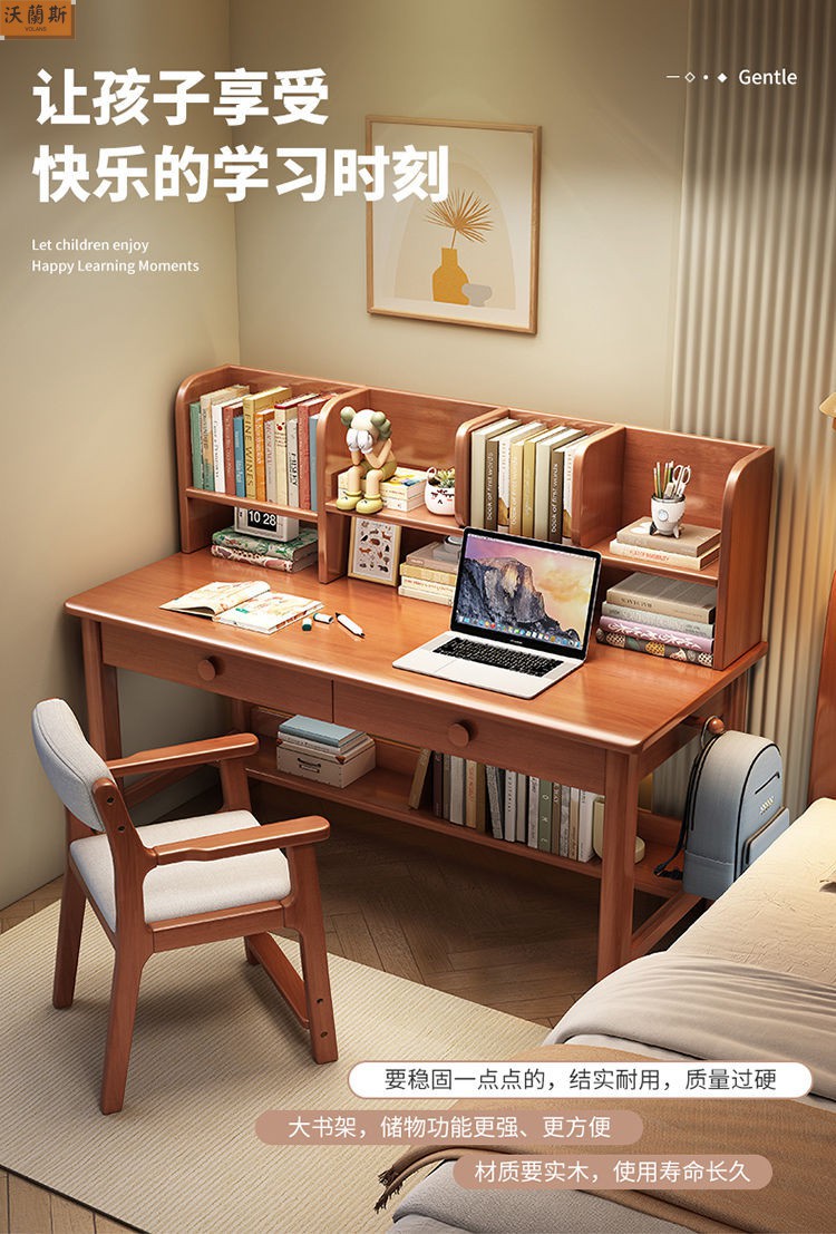 단단한 나무 책상 가득 차있는 단단한 나무 책꽂이 연구 테이블 홈 어린이 쓰기 책상 침실 간단한 직사각형 컴퓨터 테이블