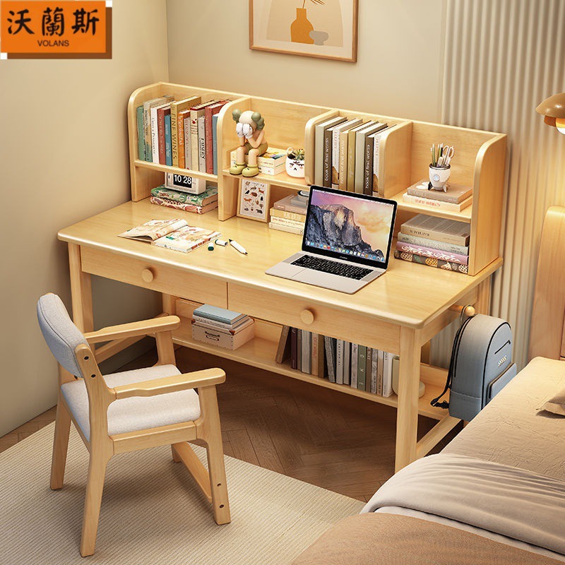 단단한 나무 책상 가득 차있는 단단한 나무 책꽂이 연구 테이블 홈 어린이 쓰기 책상 침실 간단한 직사각형 컴퓨터 테이블스토어 가기