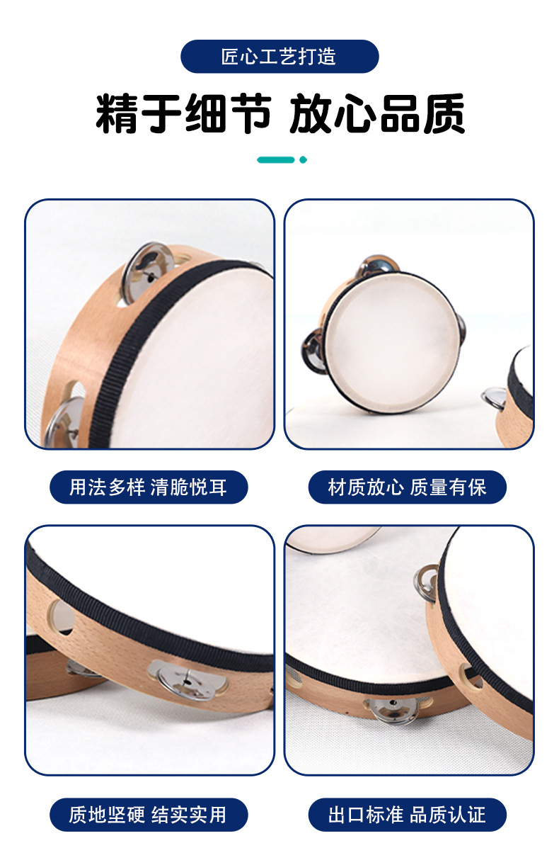 탬버린 오르프 퍼커션 너도밤 나무 리본 탬버린 유치원 교육 모방 양가죽 6/8 "탬버린