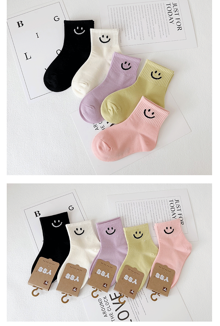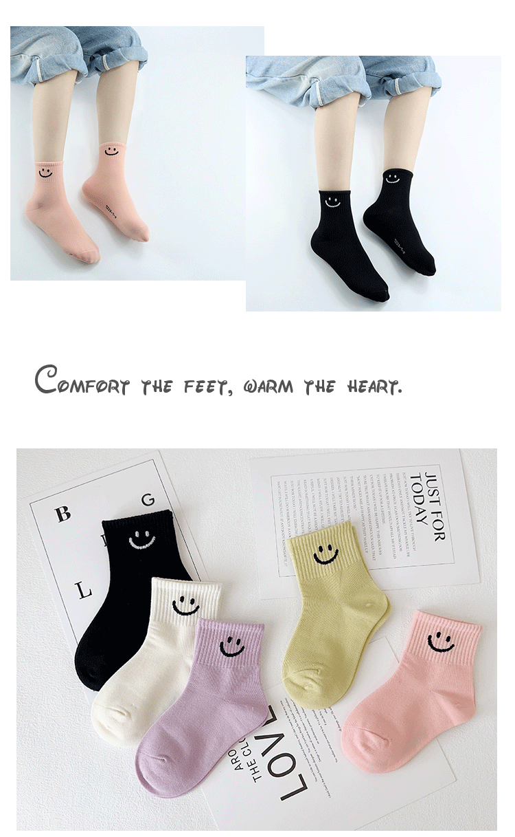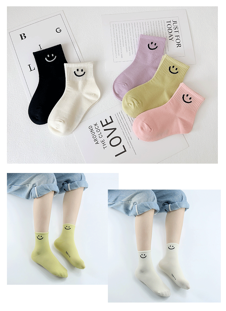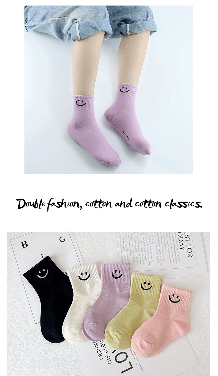 Yi Pair 어린이 양말 가을과 겨울 새 만화 스마일리 중견 양말은 코튼 걸스 스포츠 양말 뼈없는 어린이 양말스토어 가기