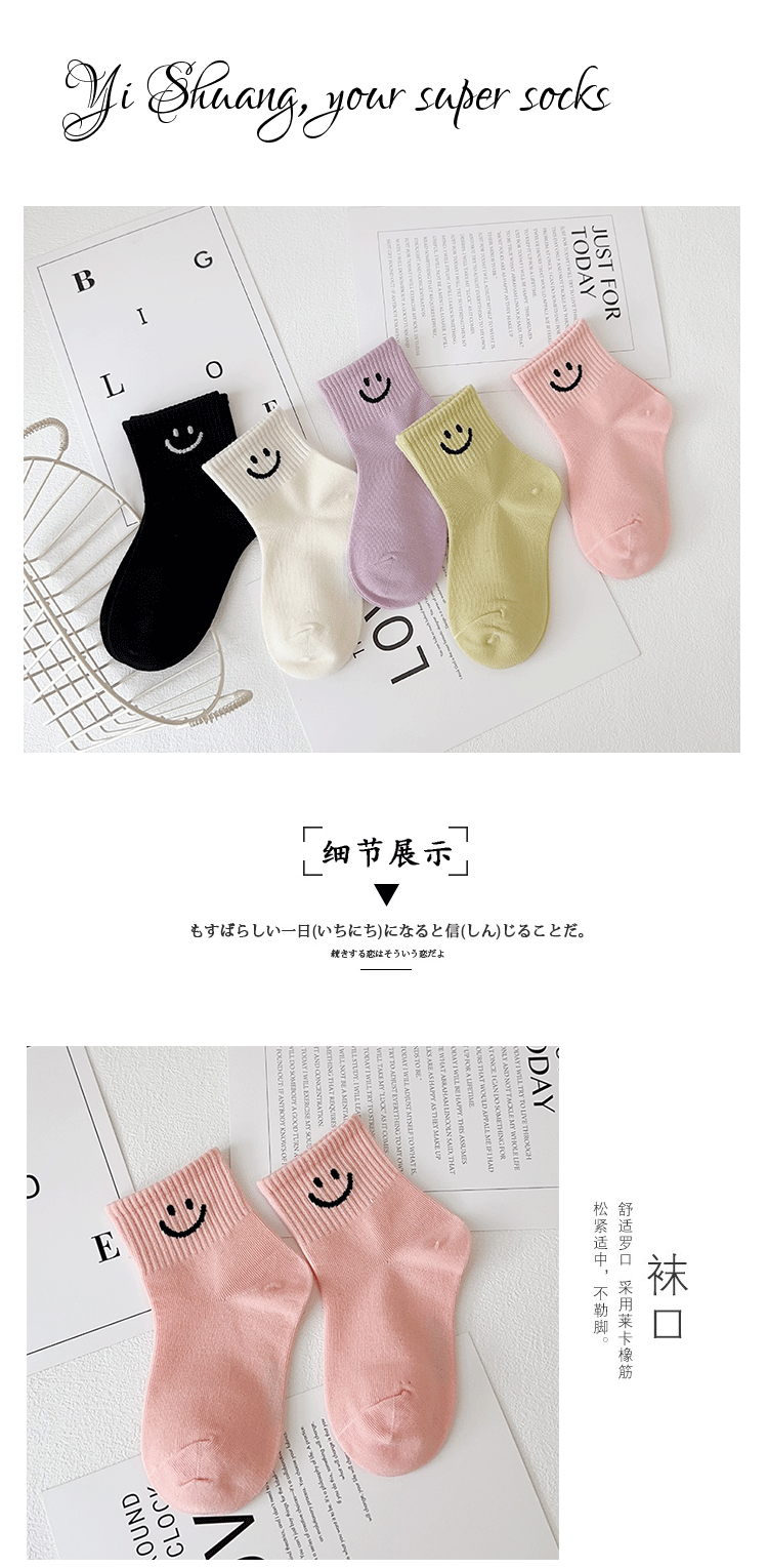 Yi Pair 어린이 양말 가을과 겨울 새 만화 스마일리 중견 양말은 코튼 걸스 스포츠 양말 뼈없는 어린이 양말