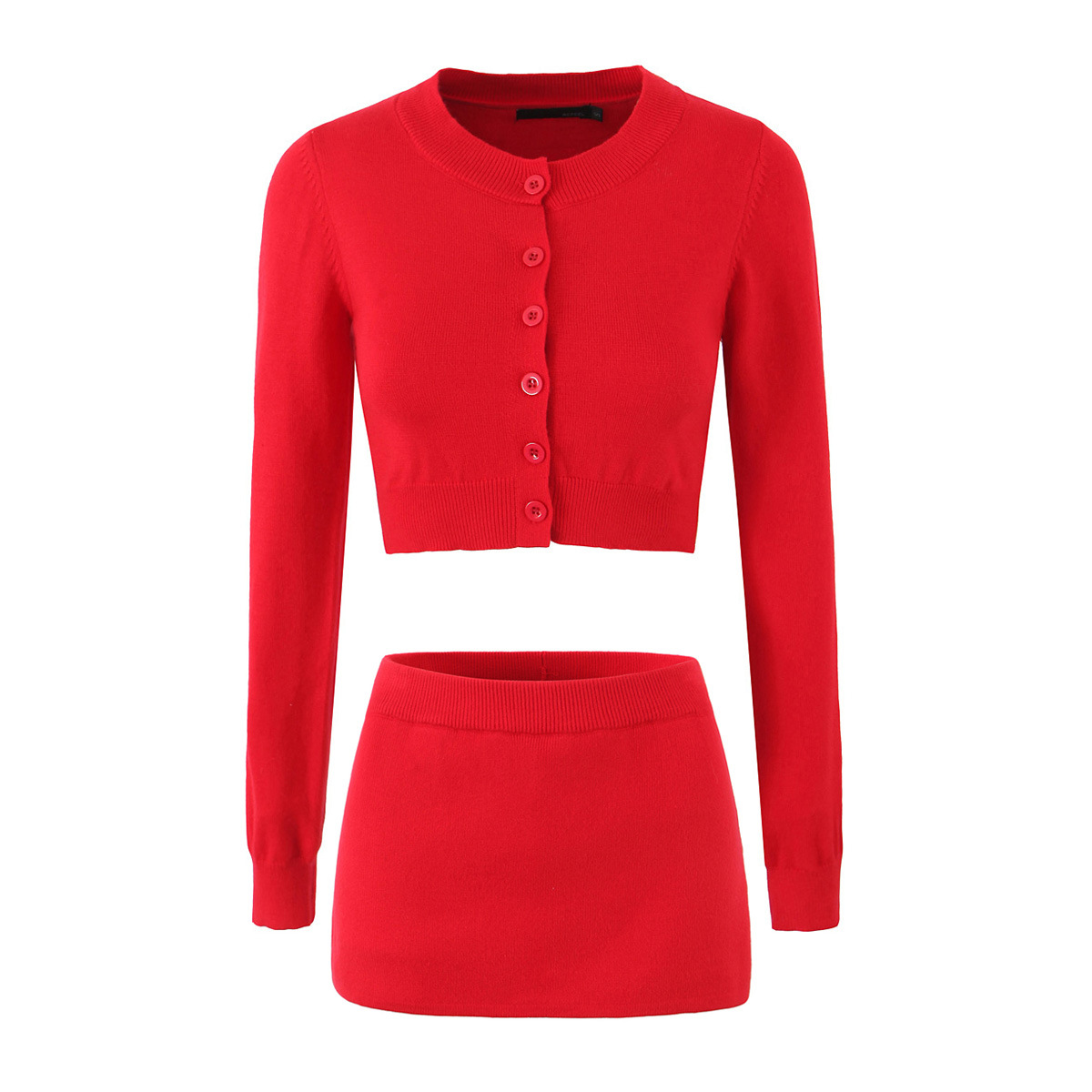 니트 투피스 여성용 가을 2024 아메리칸 스타일 핫 걸 싱글 가슴 짧은 긴팔 니트 셔츠 힙합 스커트