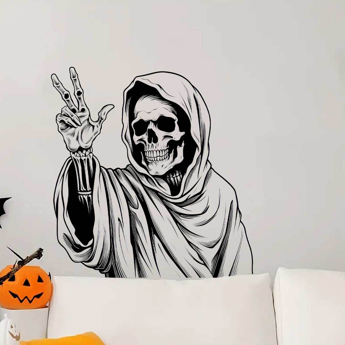 창조적 인 할로윈 후드 두개골 자체 접착 벽 스티커 축제 파티 룸 배경 벽 장식 스티커 BR0751C
