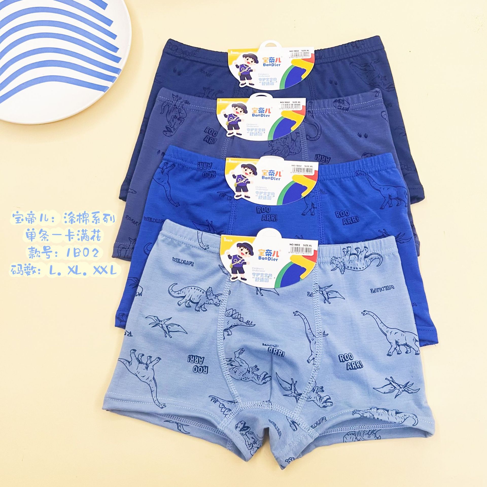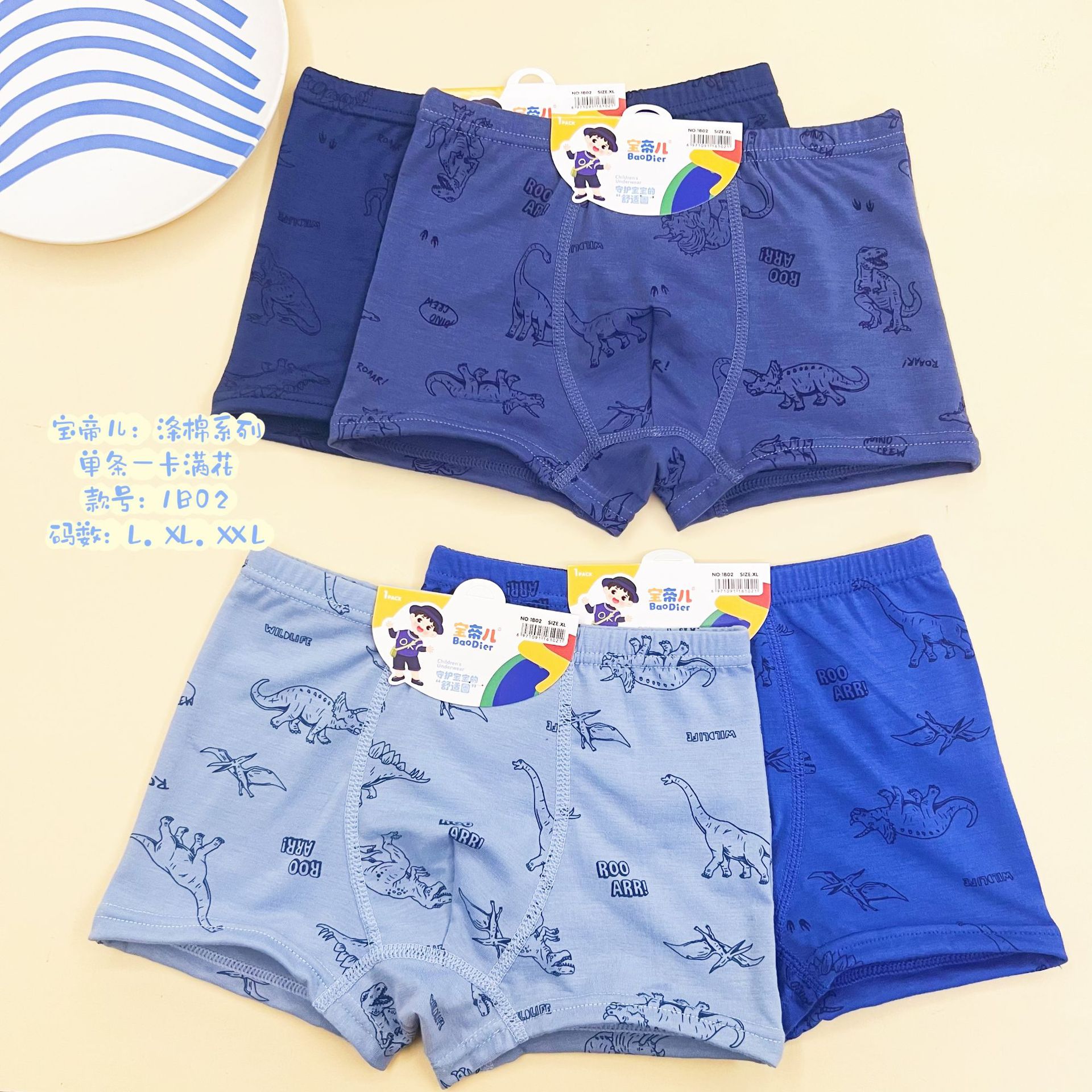 소년 속옷 농구 공룡 곰 만화 복서 통기성 블루 스타일 복서 바지 중소 어린이 대외 무역