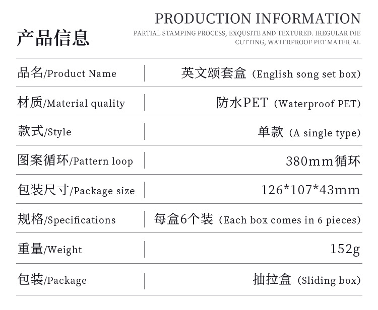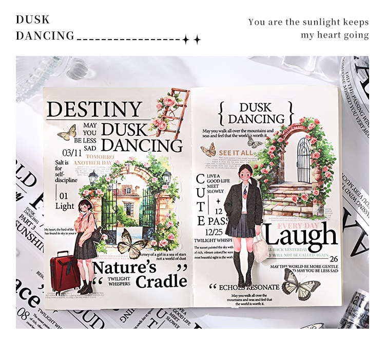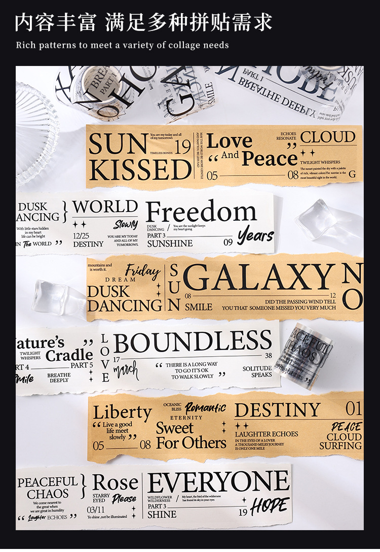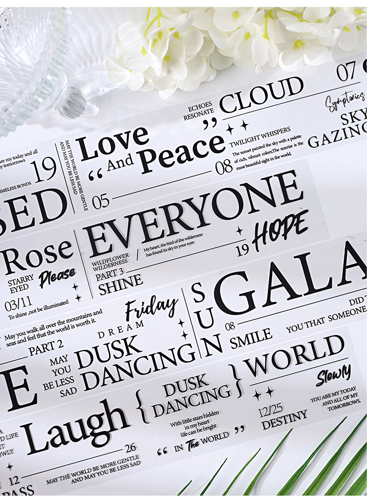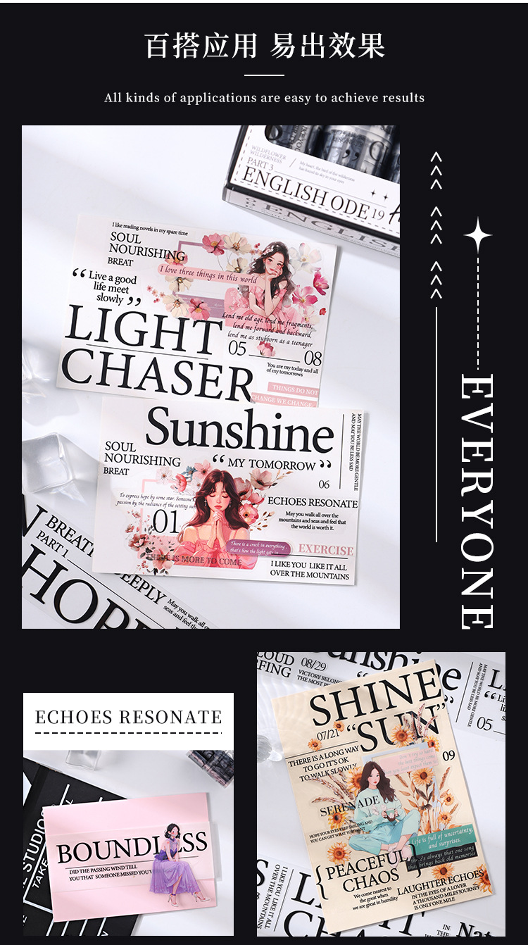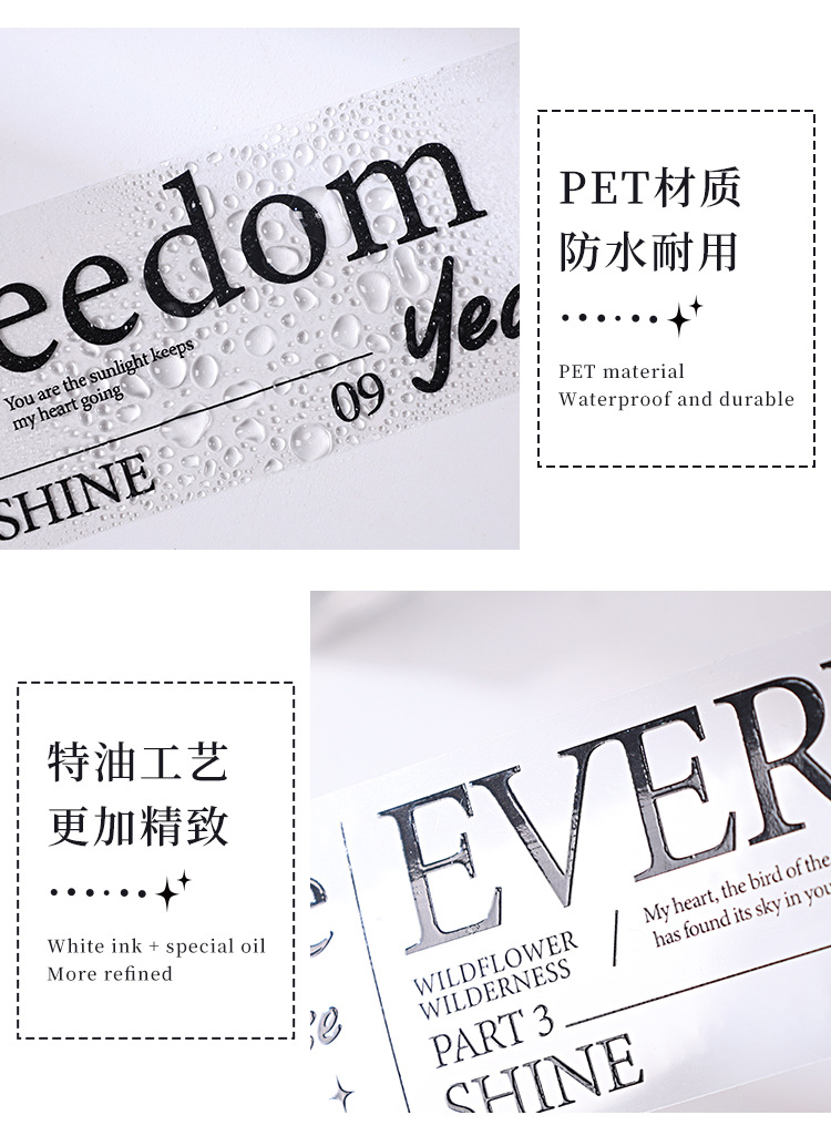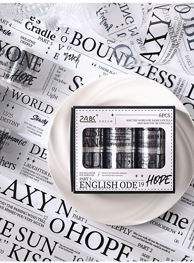 Yuezhen 영어 찬양 선물 상자 세트 국경 손 계정 테이프 방수 애완 동물 테이프 손 계정 텍스트 풍경 스티커 볼륨