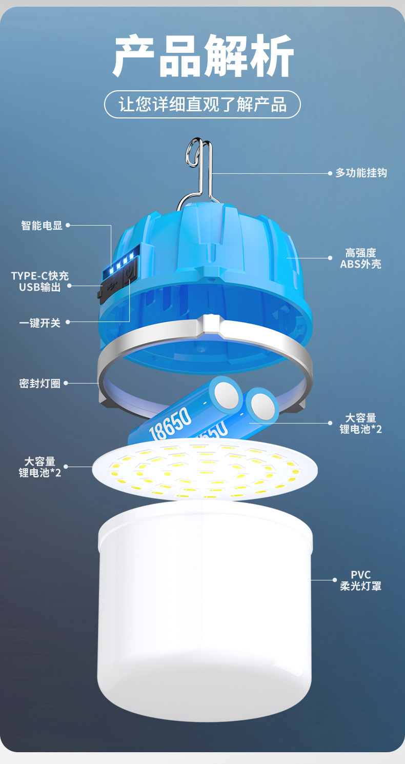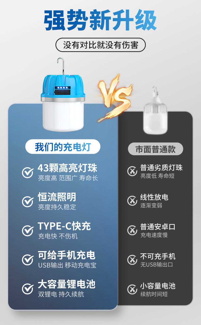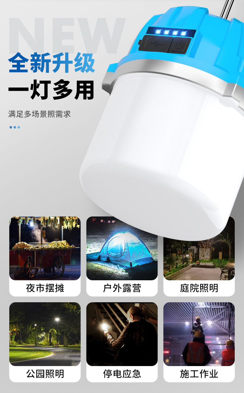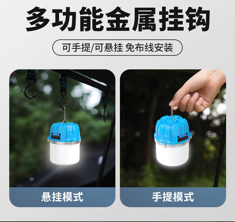 충전식 전구 슈퍼 밝은 가정 비상 조명 야외 텐트 캠핑 슈퍼 긴 내구성 야시장 스톨 교수형 조명