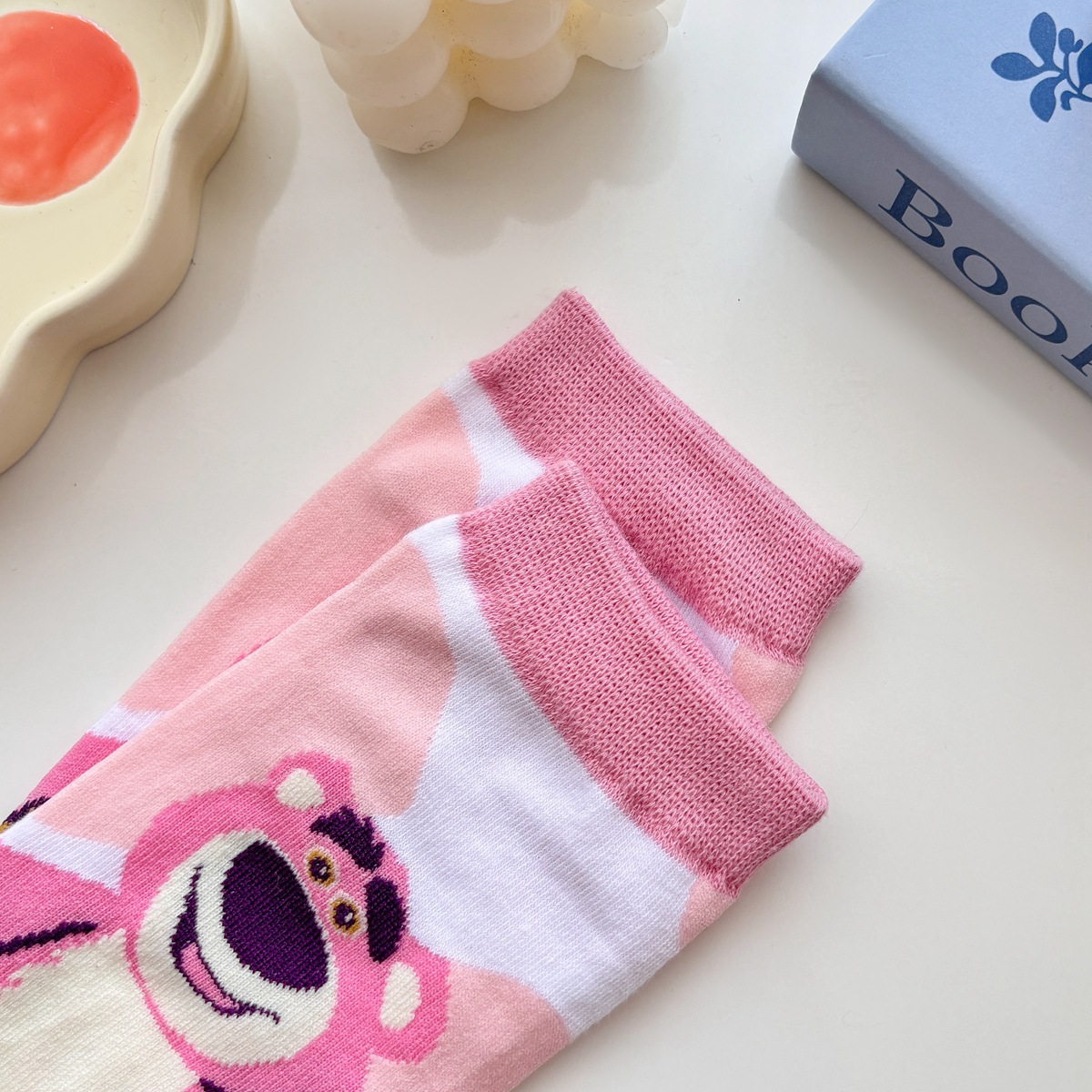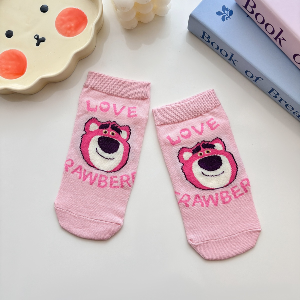 일본의 새로운 만화 양말 여성용 콤비드 코튼 파우더 귀여운 곰 여성 보트 양말 애니메이션 만화 양말스토어 가기