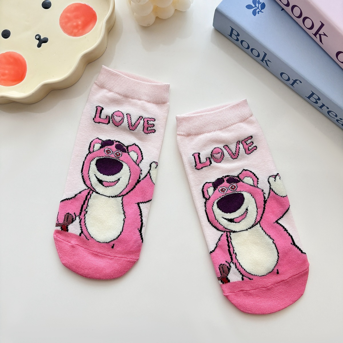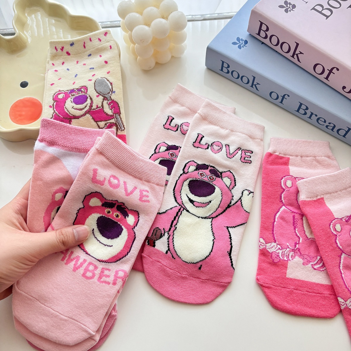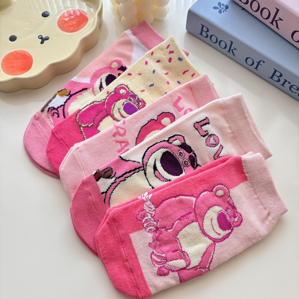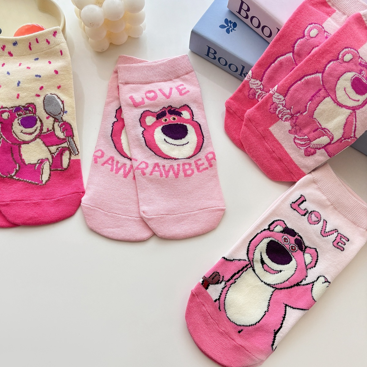 일본의 새로운 만화 양말 여성용 콤비드 코튼 파우더 귀여운 곰 여성 보트 양말 애니메이션 만화 양말