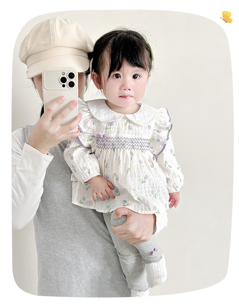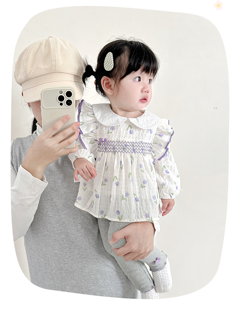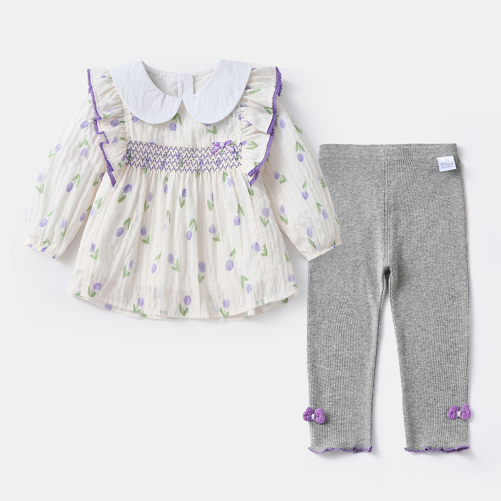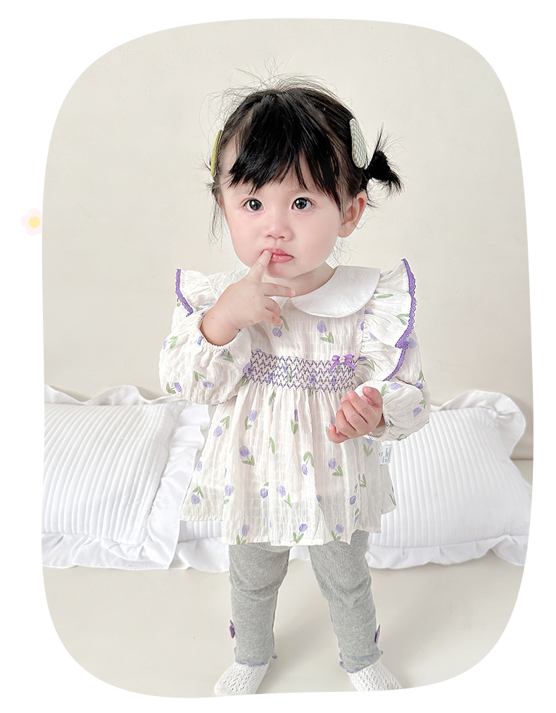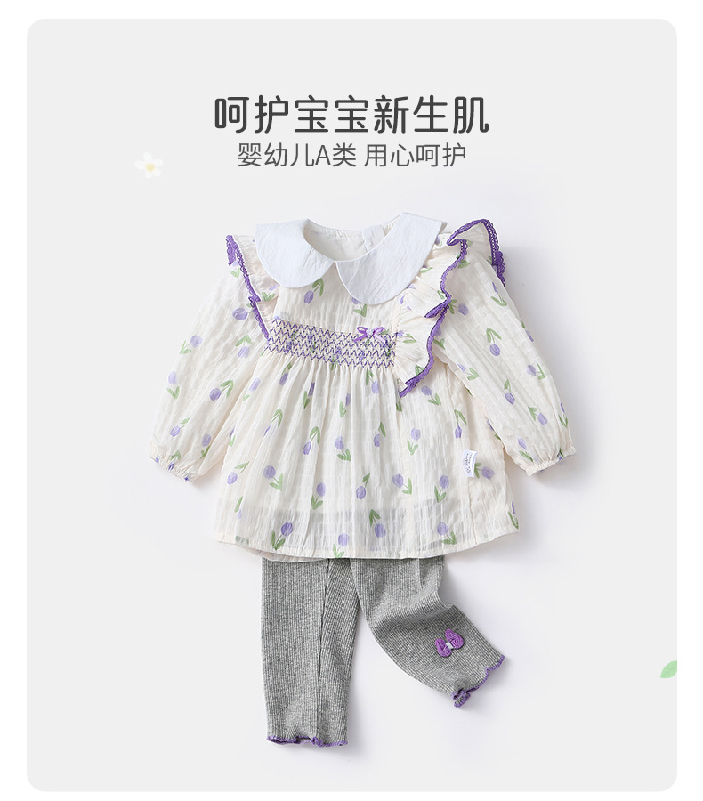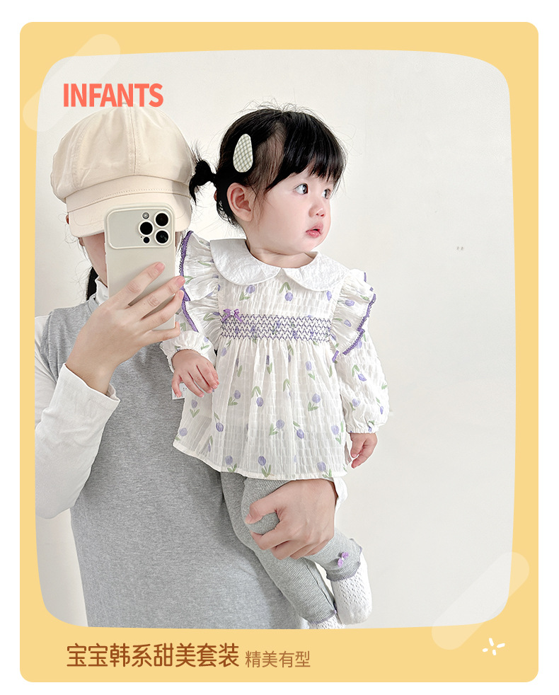 2024 년 가을 한국식 꽃 세트 소녀의 긴 소매 바지 2 피스 세트 아기 봄과 가을 꽃 세트 3836스토어 가기