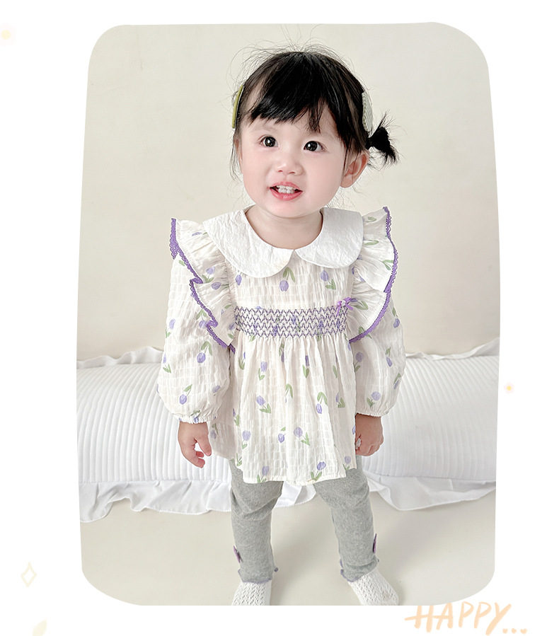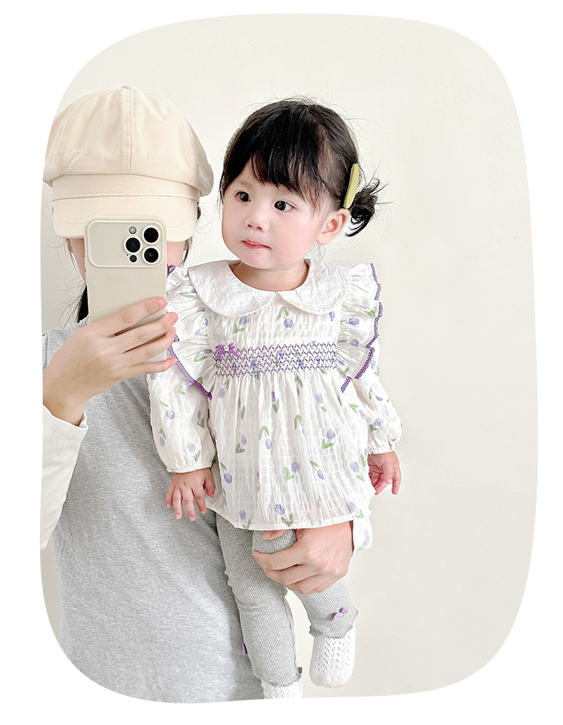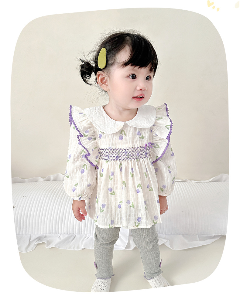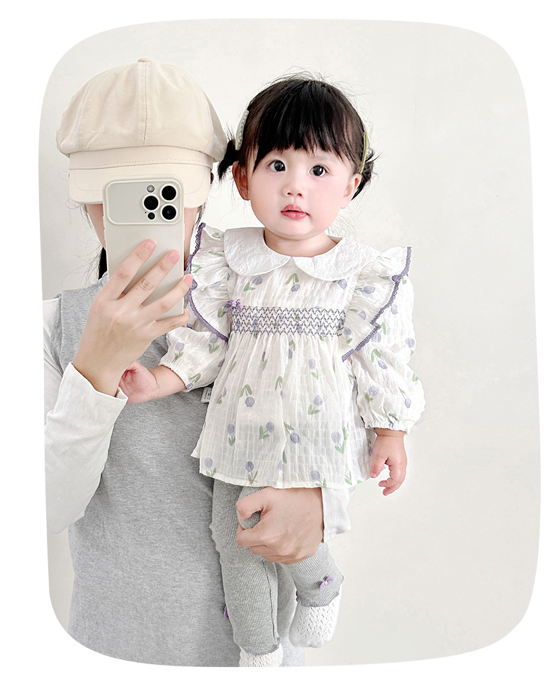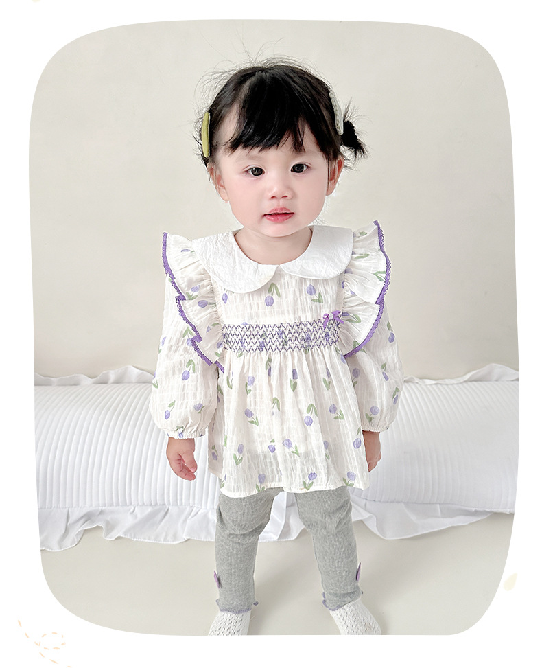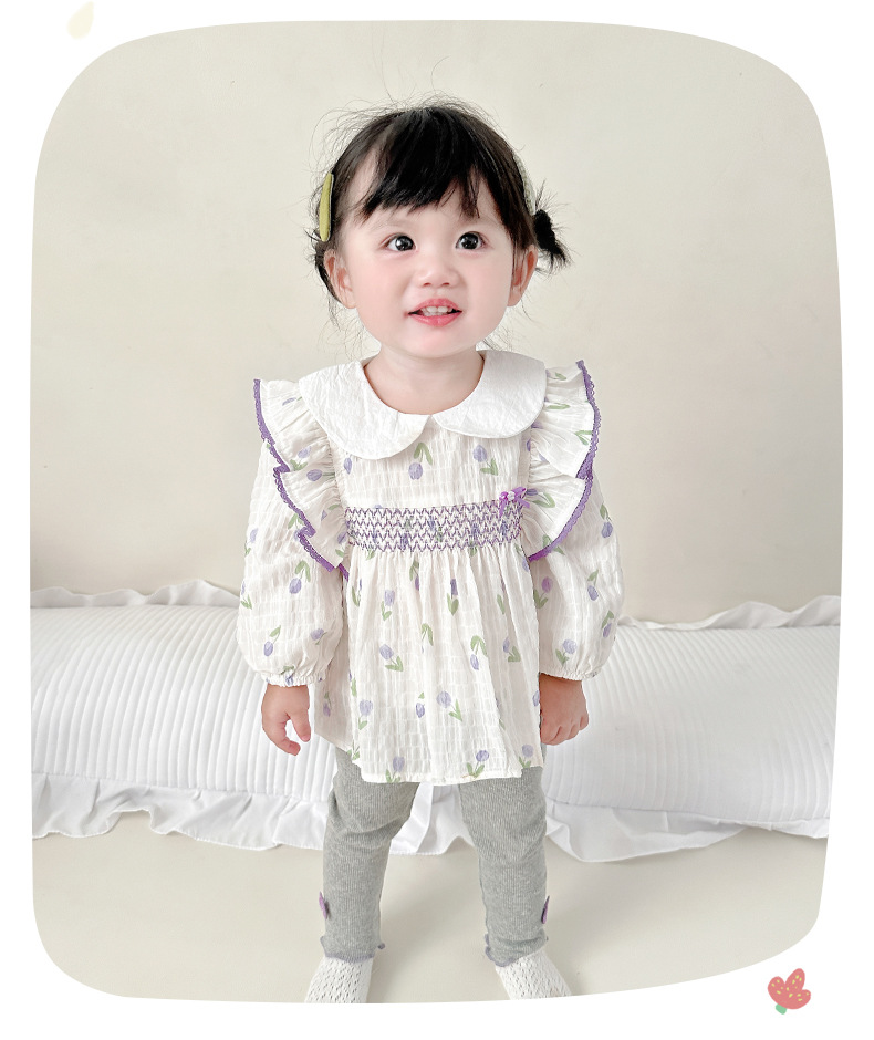 2024 년 가을 한국식 꽃 세트 소녀의 긴 소매 바지 2 피스 세트 아기 봄과 가을 꽃 세트 3836스토어 가기