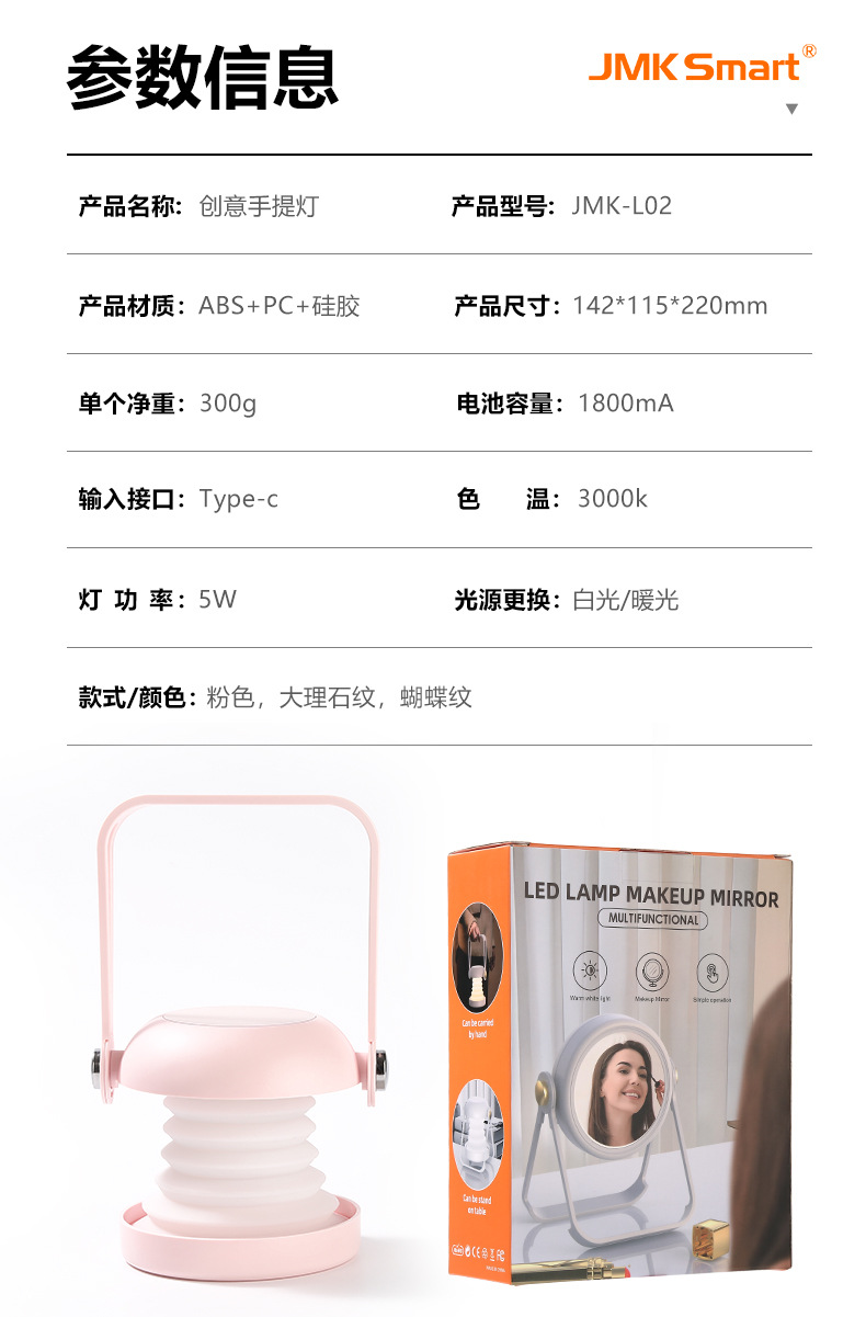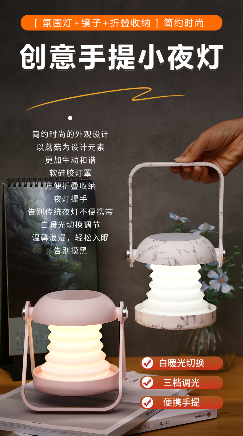 다기능 크리에이티브 인터넷 유명인 접이식 야간 조명 거울 포함 LED 냉온 분위기 조명 USB 크리에이티브 인터넷 유명인 분위기 조명스토어 가기