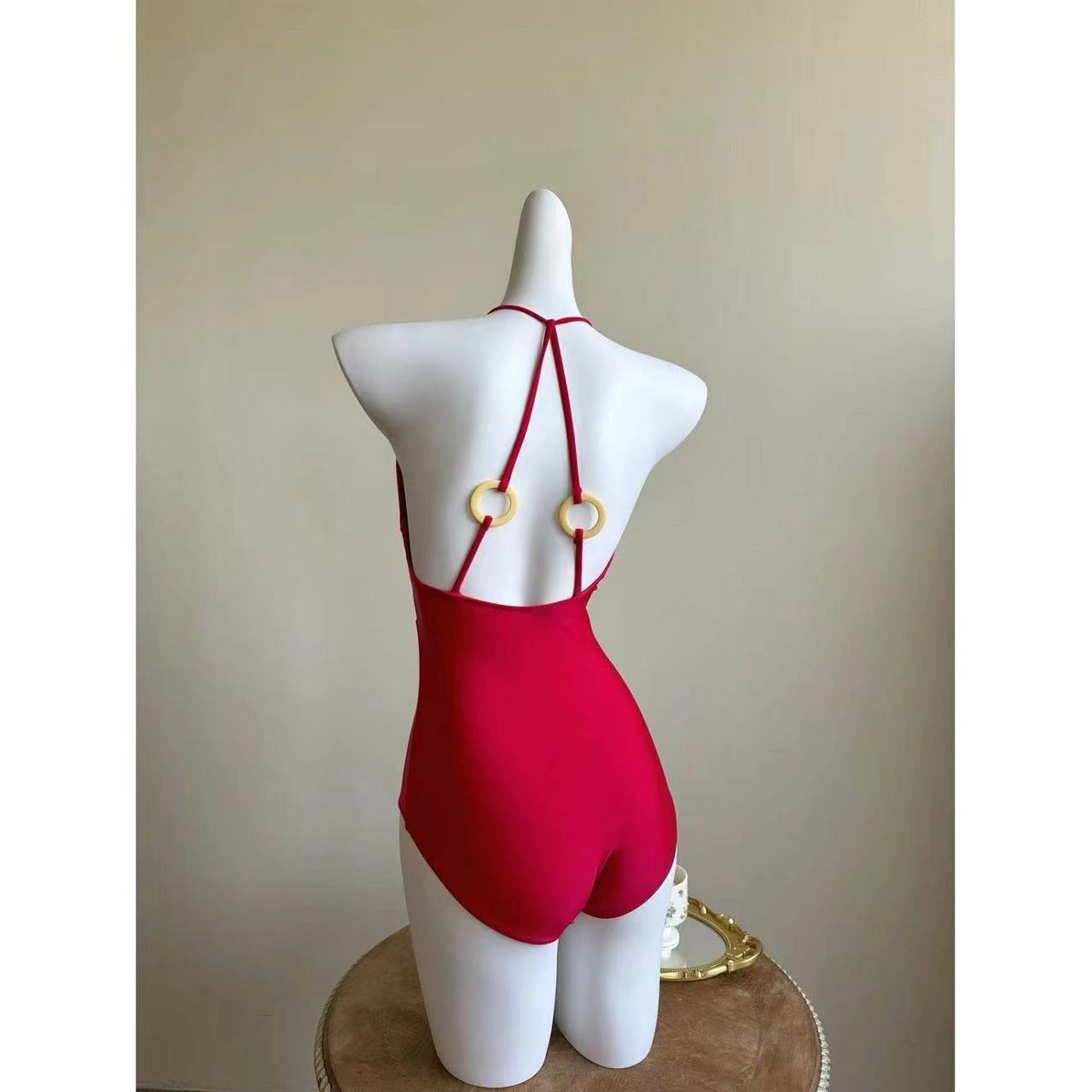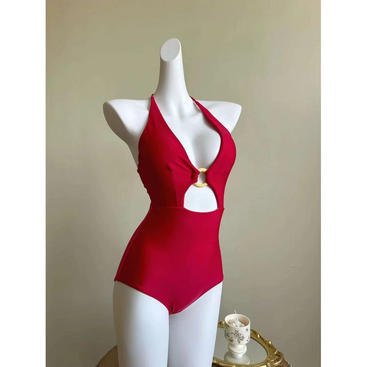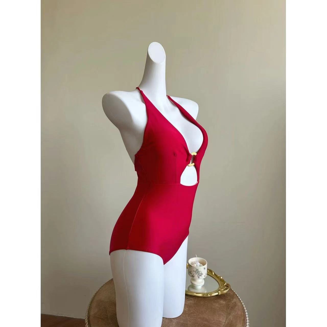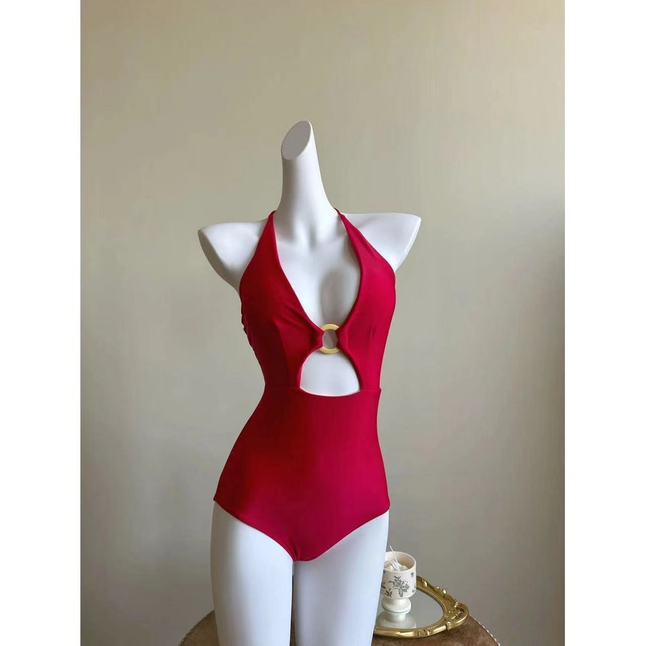 2024 여름 새로운 패션 수영복 단색 원피스 삼각형 섹시한 유럽과 미국의 바람 해변 휴가