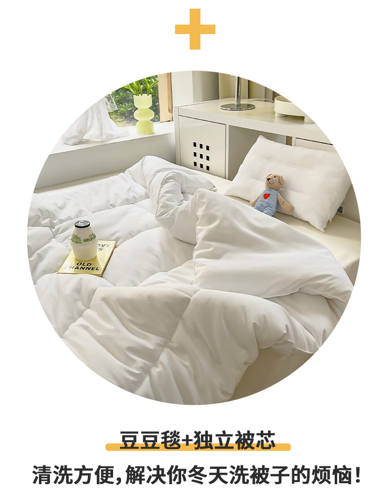 豆豆被是可拆洗的,是有拉链的豆豆毯+独立柔软的整张羽丝绒被芯,清洗起来非常方便,解决你冬天洗被子的烦恼!