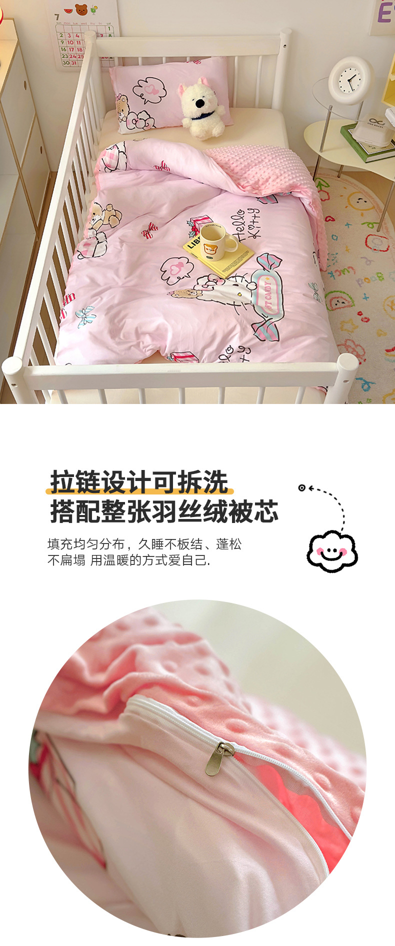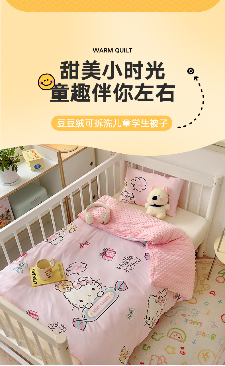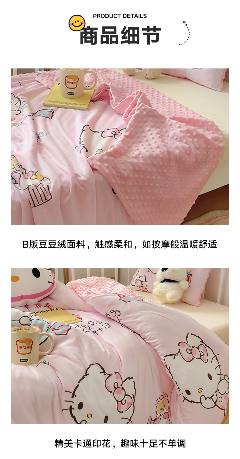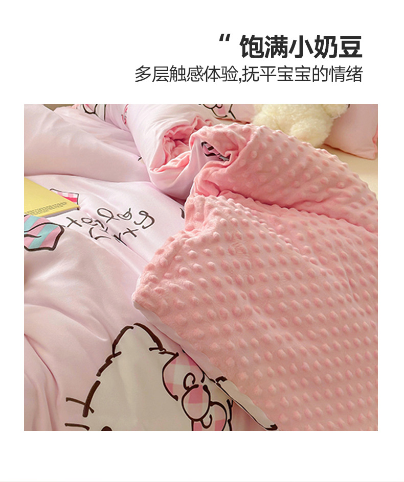 注:豆豆毯四角都有被角带哦,被芯装进去非常贴合,不会跑哦!
