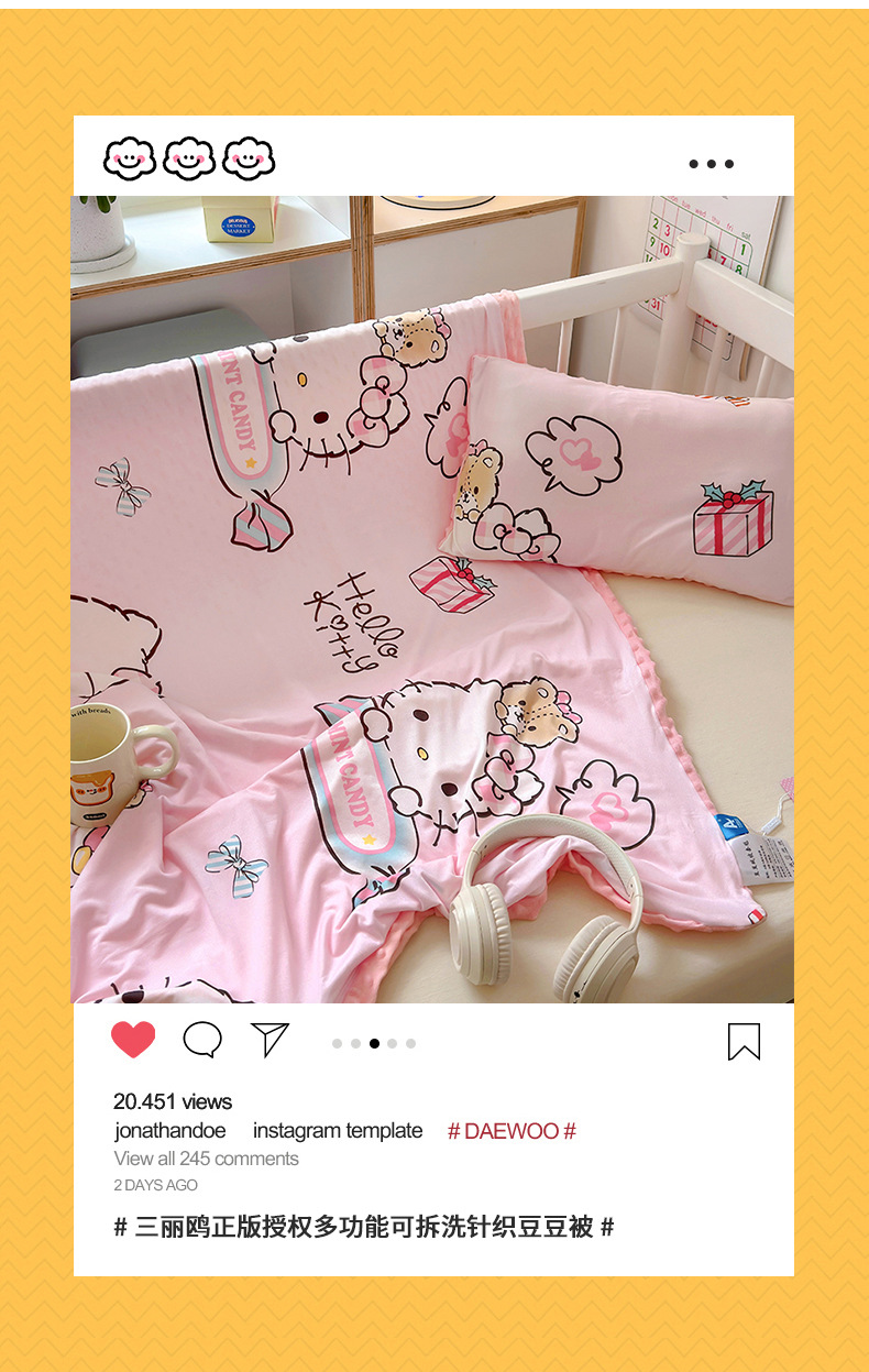 三丽鸥正版授权多功能A类针织豆豆毯豆豆被有拉链可拆洗被子儿童学生被子