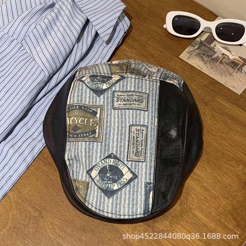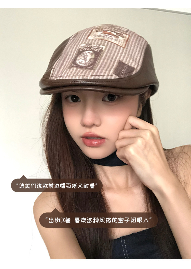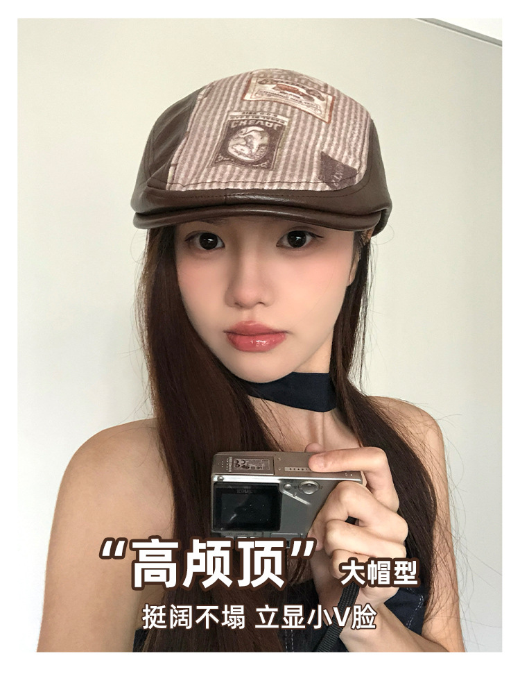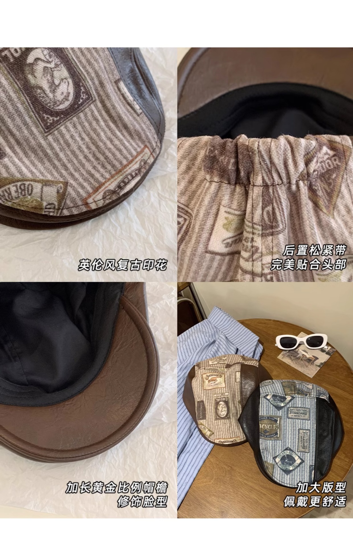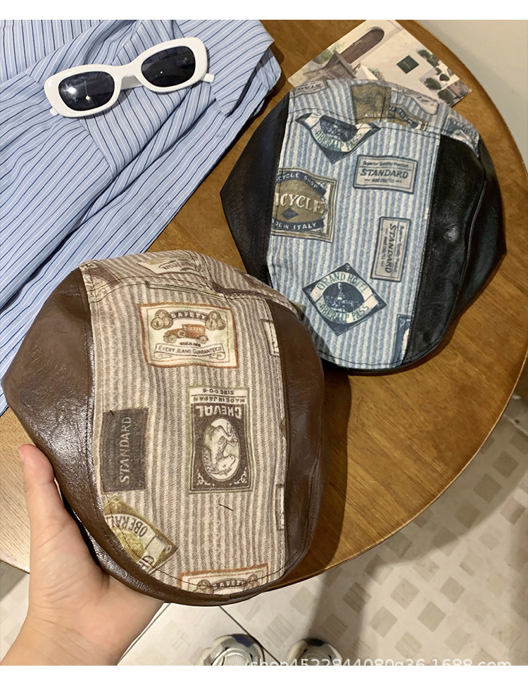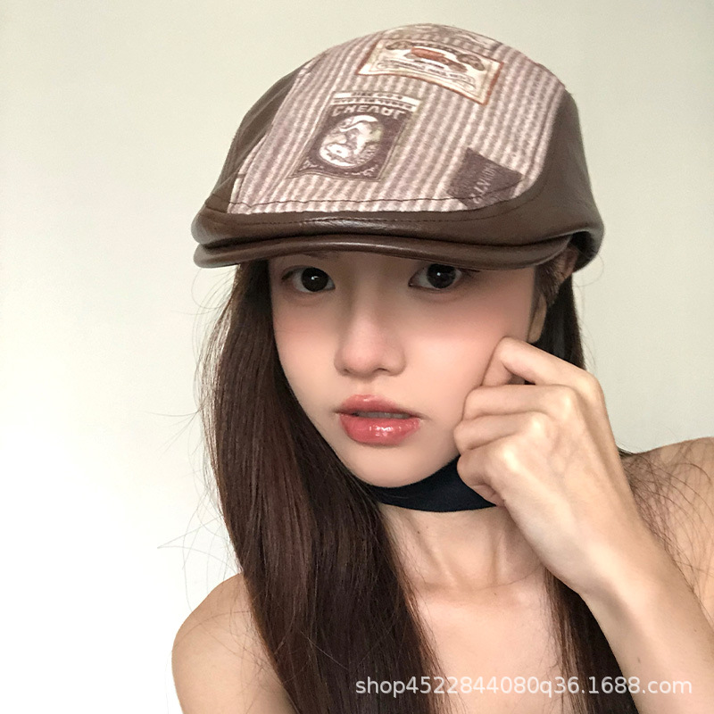 미국 스타일 레트로 핫 걸 인쇄 PU 가죽 앞으로 모자 여성 올매치 틈새 예술적 영국 안티 웨어 베일리 모자 트렌디