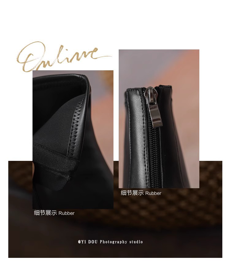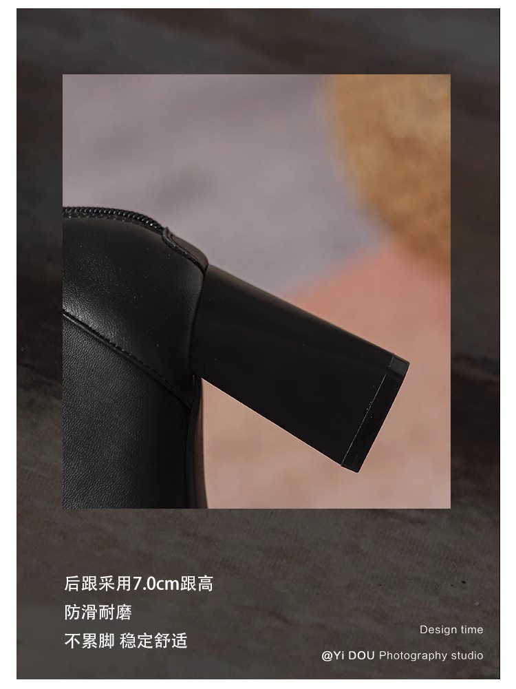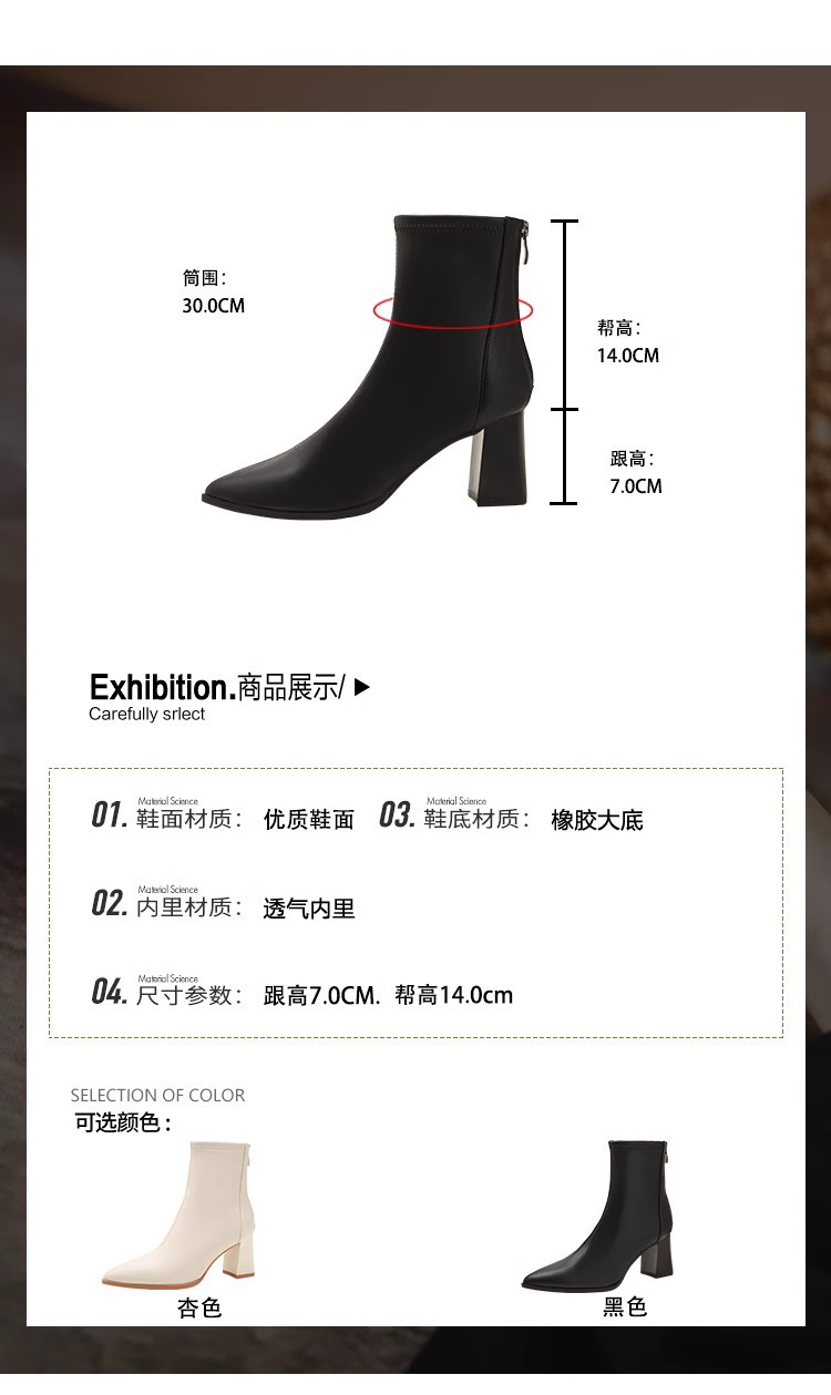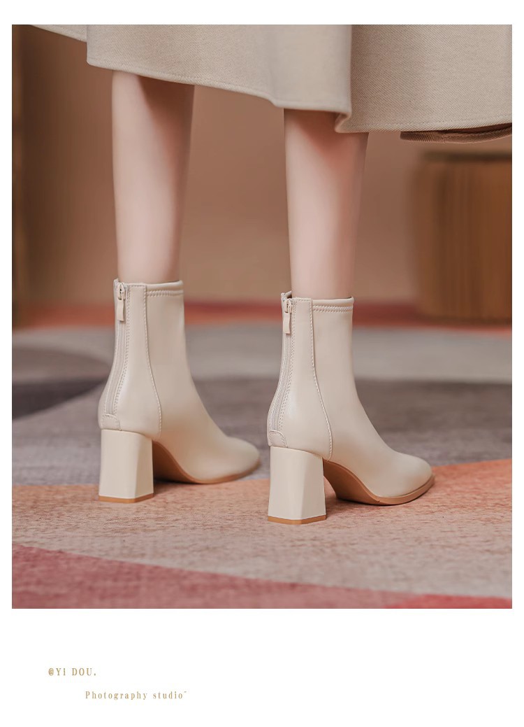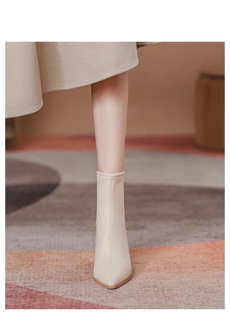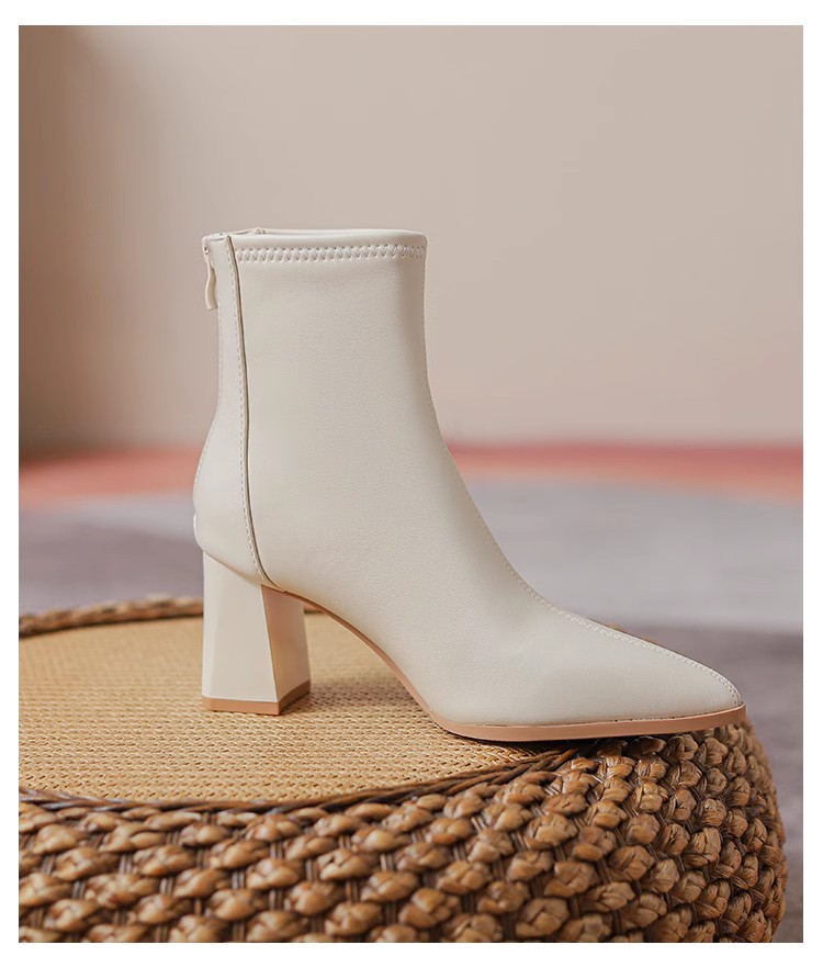 프랑스 뾰족한 하이힐 발목 부츠 여자 두꺼운 힐 미드 힐 2024 새로운 가을 및 겨울 여성 신발 올매치 얇은 알몸 부츠 마틴 부츠스토어 가기