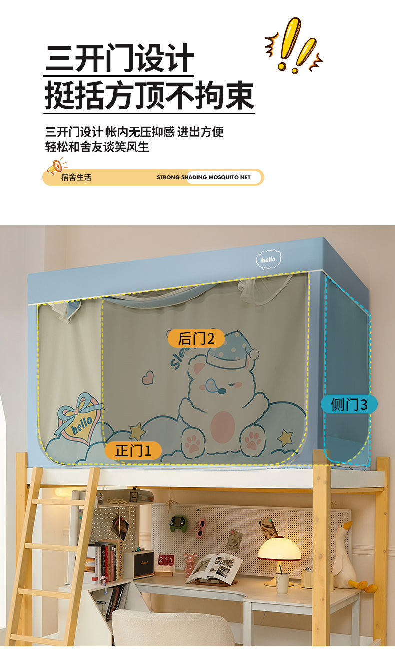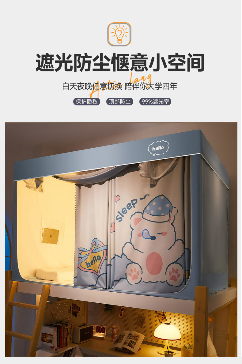 A급 만화 일체형 학생 기숙사 강력 차광 침대 커튼 모기장 침실 이층 침대 싱글 스탠드형 침대 커튼스토어 가기